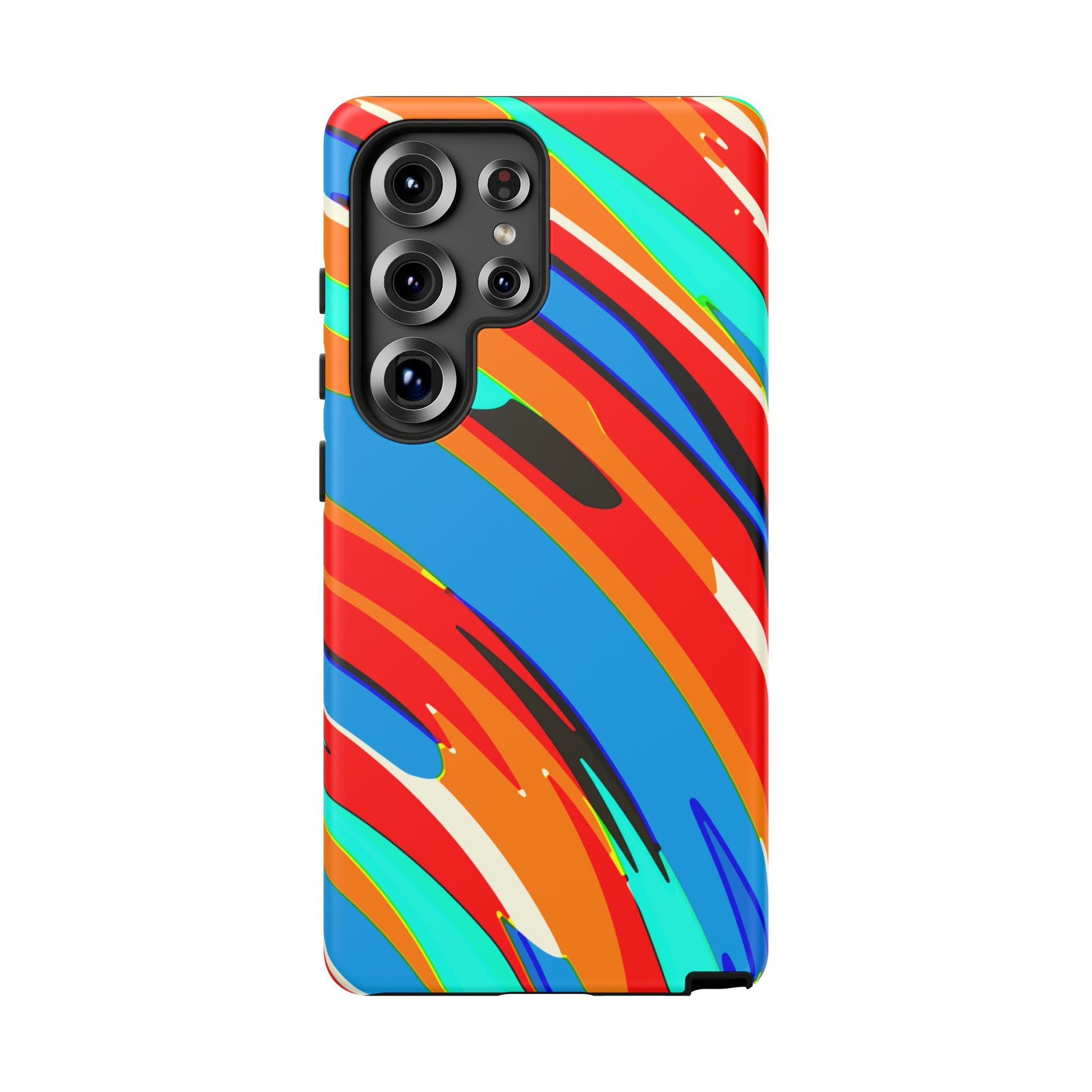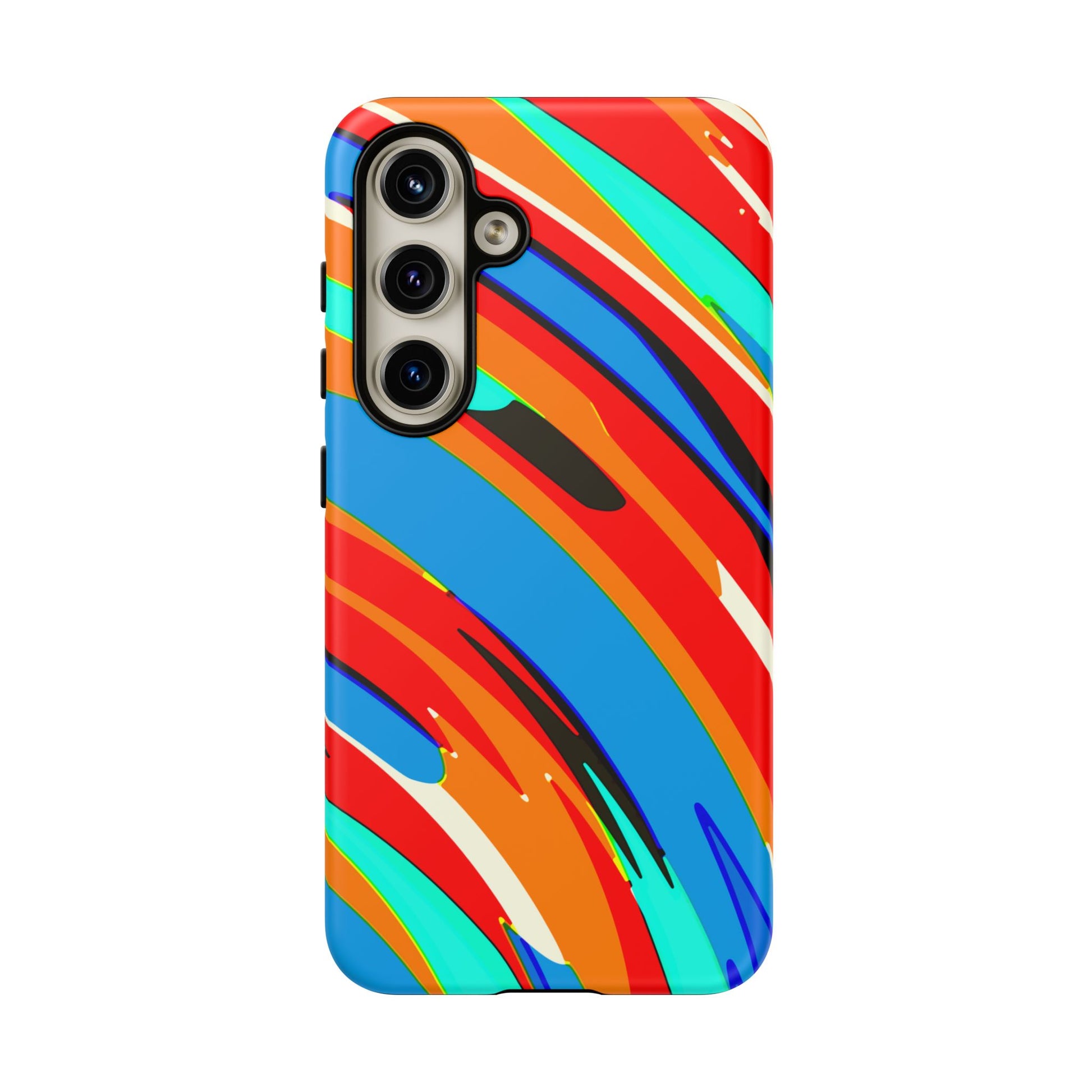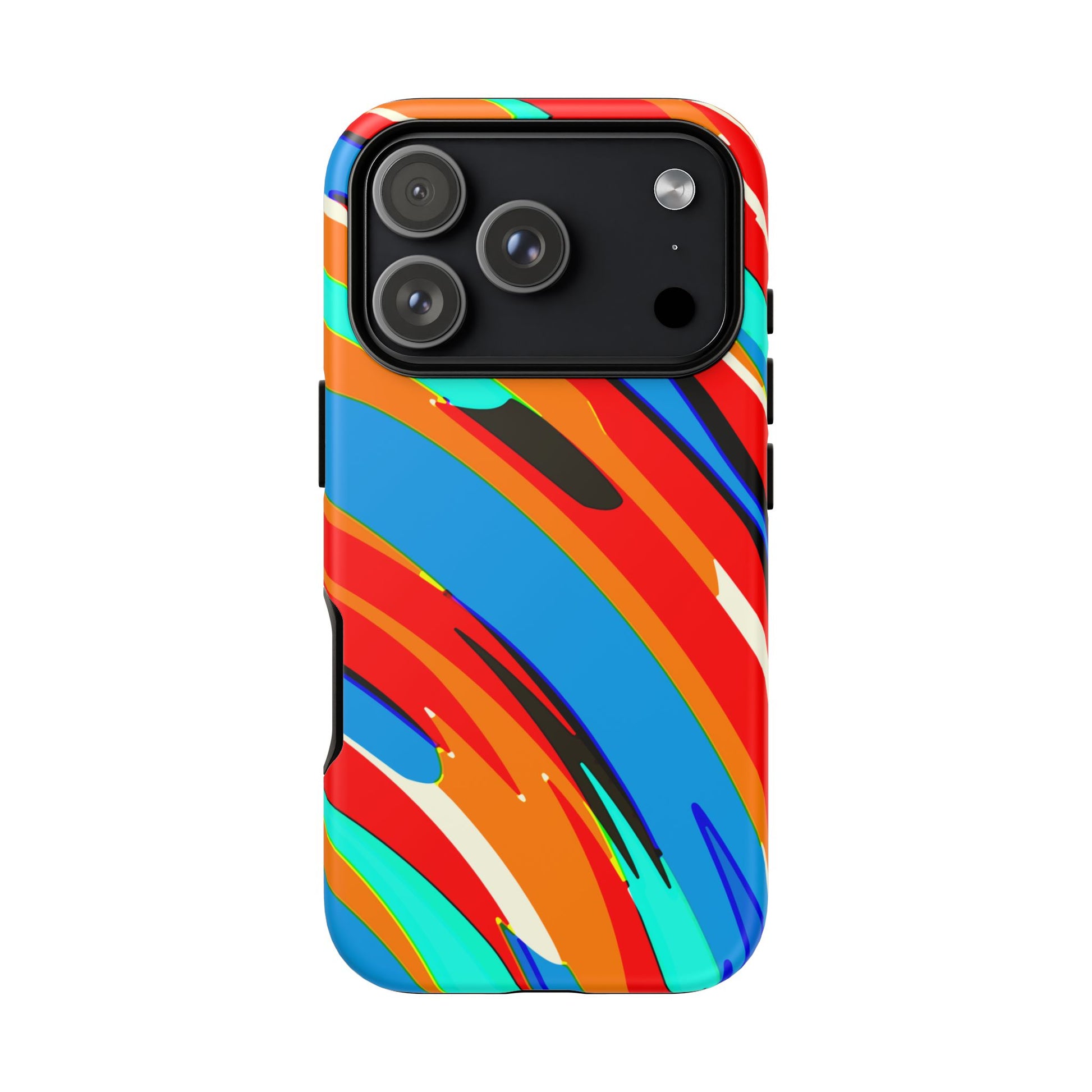 This vibrant protective phone case brings bold, energetic color to everyday carry. Gloss or matte finishes showcase a high-density 3D wrap print of sweeping, painterly strokes in saturated reds, blues, teals and oranges. The dual-layer construction—rigid polycarbonate shell plus a soft TPU silicone liner—absorbs shocks and resists drops while keeping ports accessible and wireless charging functional. UV protection preserves the rich pigments outdoors, and certified material compliance gives added peace of mind. It’s a lively, durable shield that turns your phone into a statement piece without sacrificing practical protection.