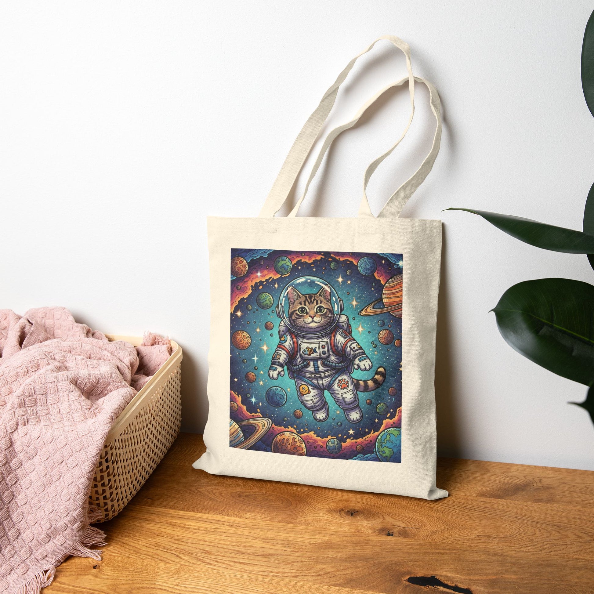 This heavyweight cotton canvas tote carries a little wonder: a hand-drawn tabby in a vintage-style astronaut suit, floating like a tiny explorer against a natural canvas backdrop. The sturdy 12 oz fabric and reinforced self-fabric handles make it a reliable companion for market runs, sketchbook hauls, or daily commutes. The flat-corner construction keeps the bag slim and art-forward, so the illustration reads clearly whether folded or filled. Choose natural for a warm, organic look or black for higher contrast and urban edge. It feels lived-in from day one and ages with character—a practical canvas with a playful, adventurous spirit.