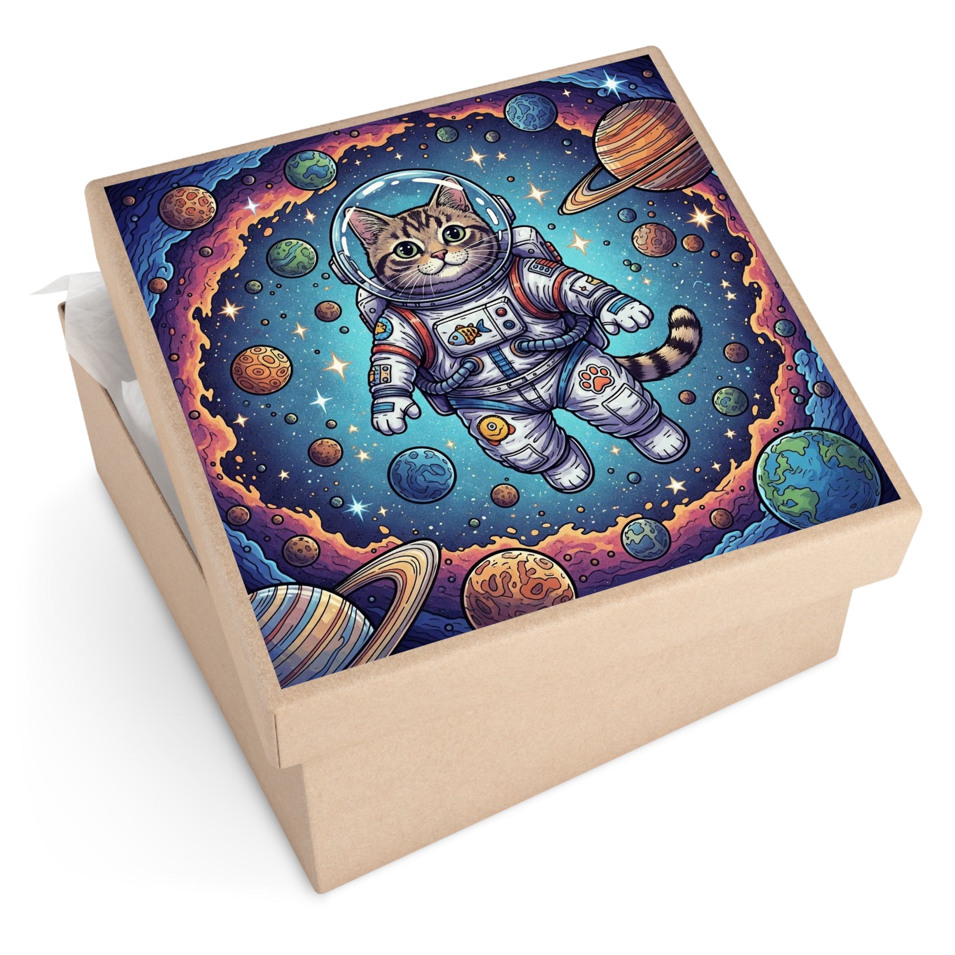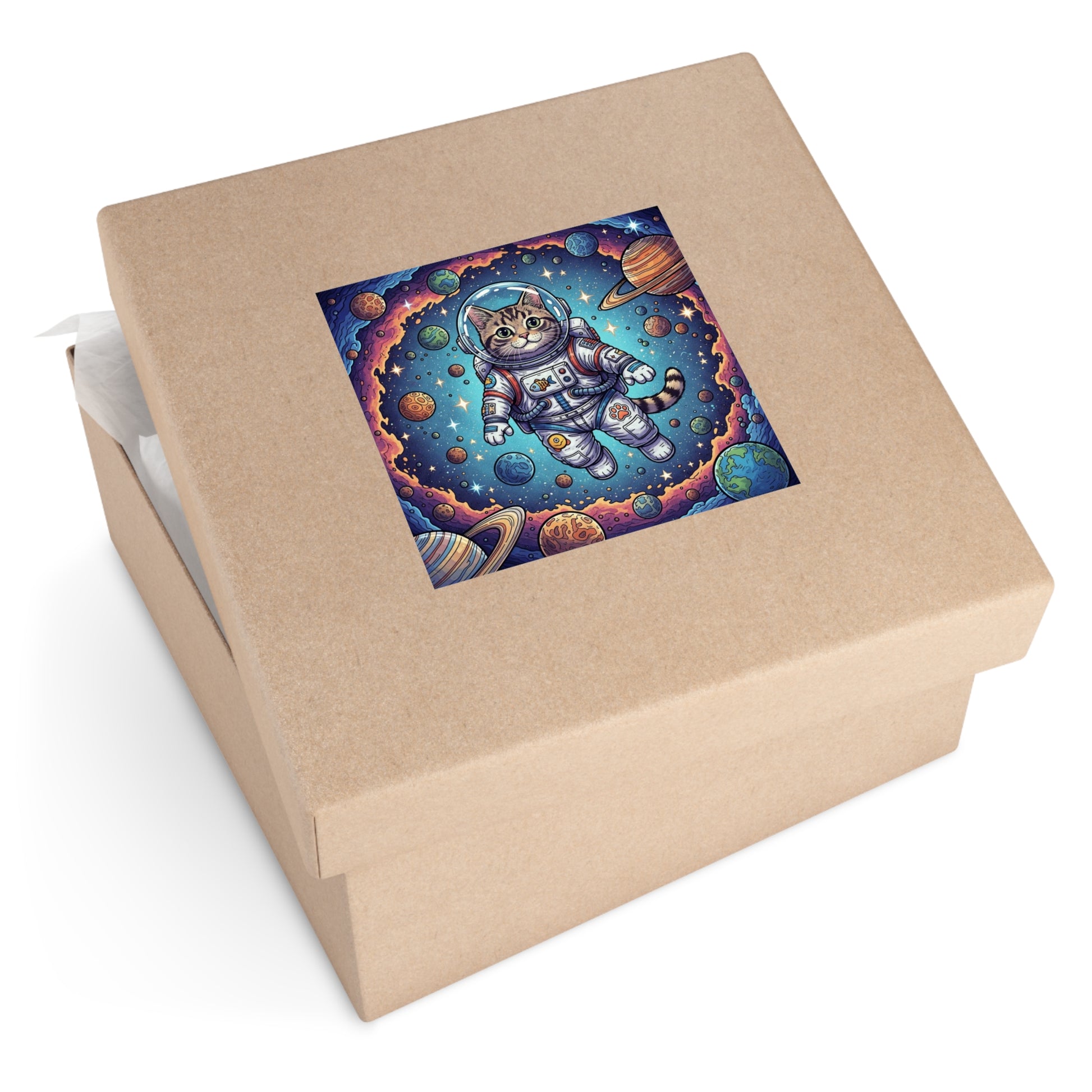 Float into a pocket of wonder with this vibrant vinyl sticker. A wide-eyed astronaut cat drifts through a jeweled ring of planets and stars, rendered in rich, saturated inks that hold up outdoors and indoors. Stick it on a laptop lid, water bottle, sketchbook, or gift box to add a playful, cosmic touch that sparks smiles and storytelling. The glossy surface makes colors pop and gives the art a lively, polished look, while the durable vinyl and permanent acrylic adhesive keep it stuck through daily adventures.