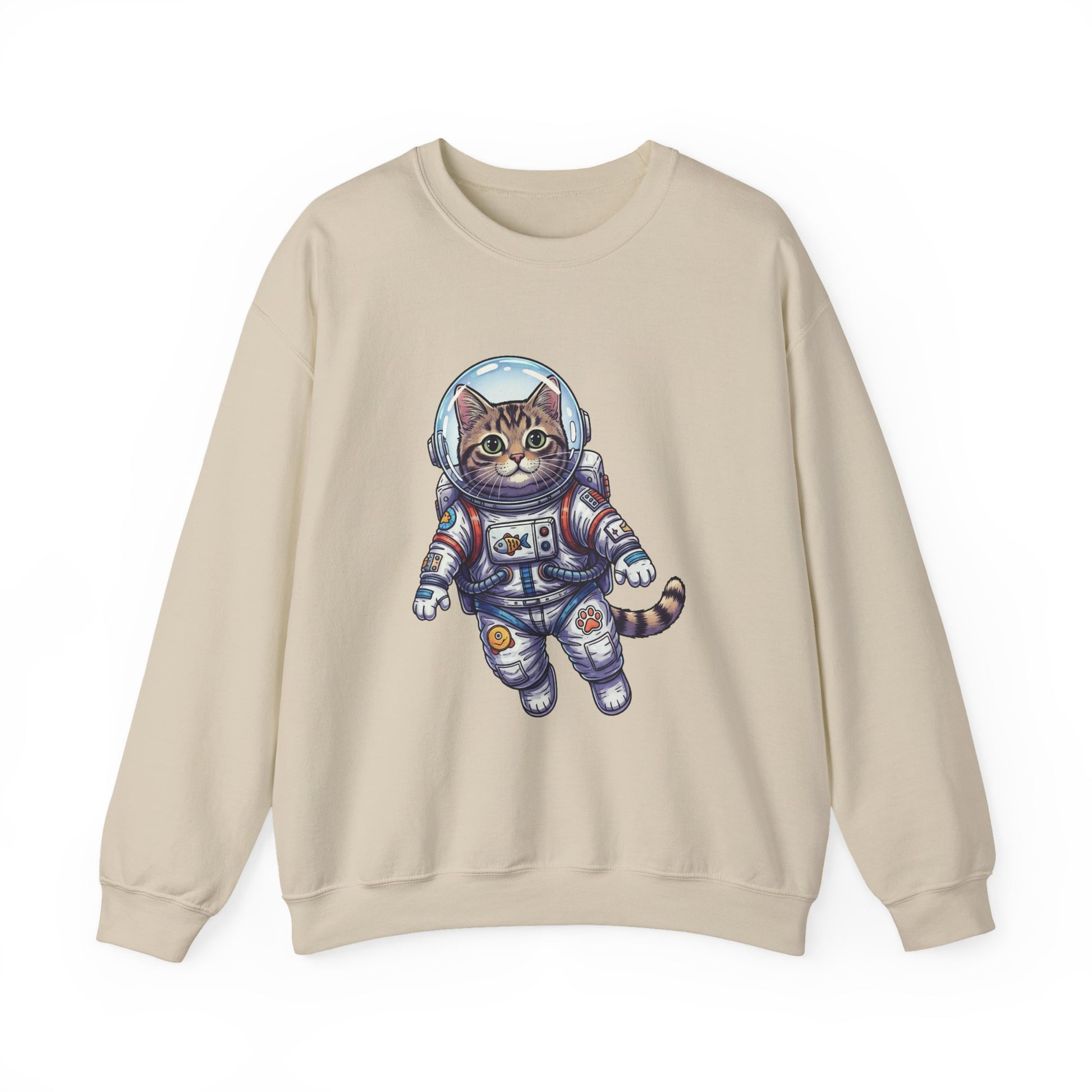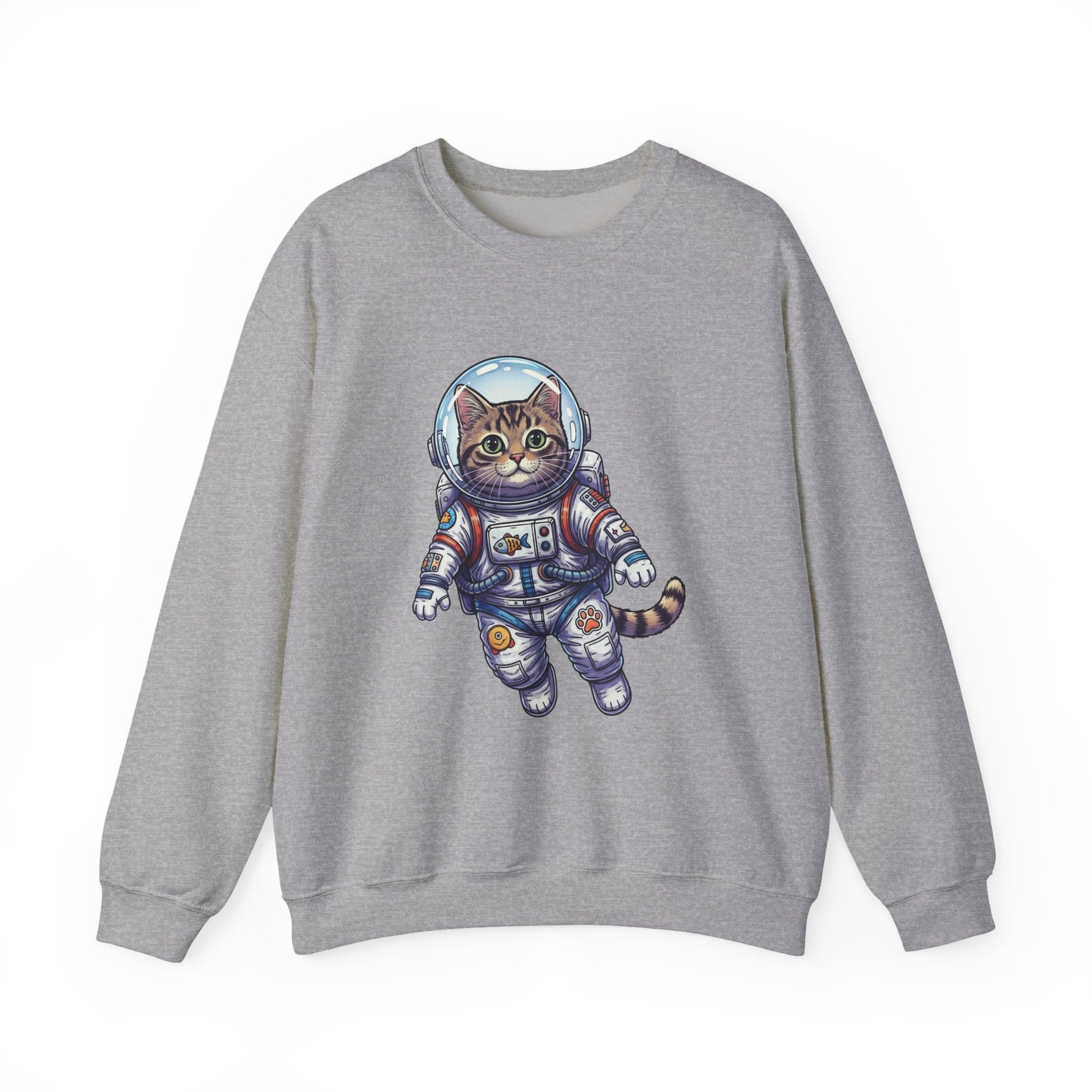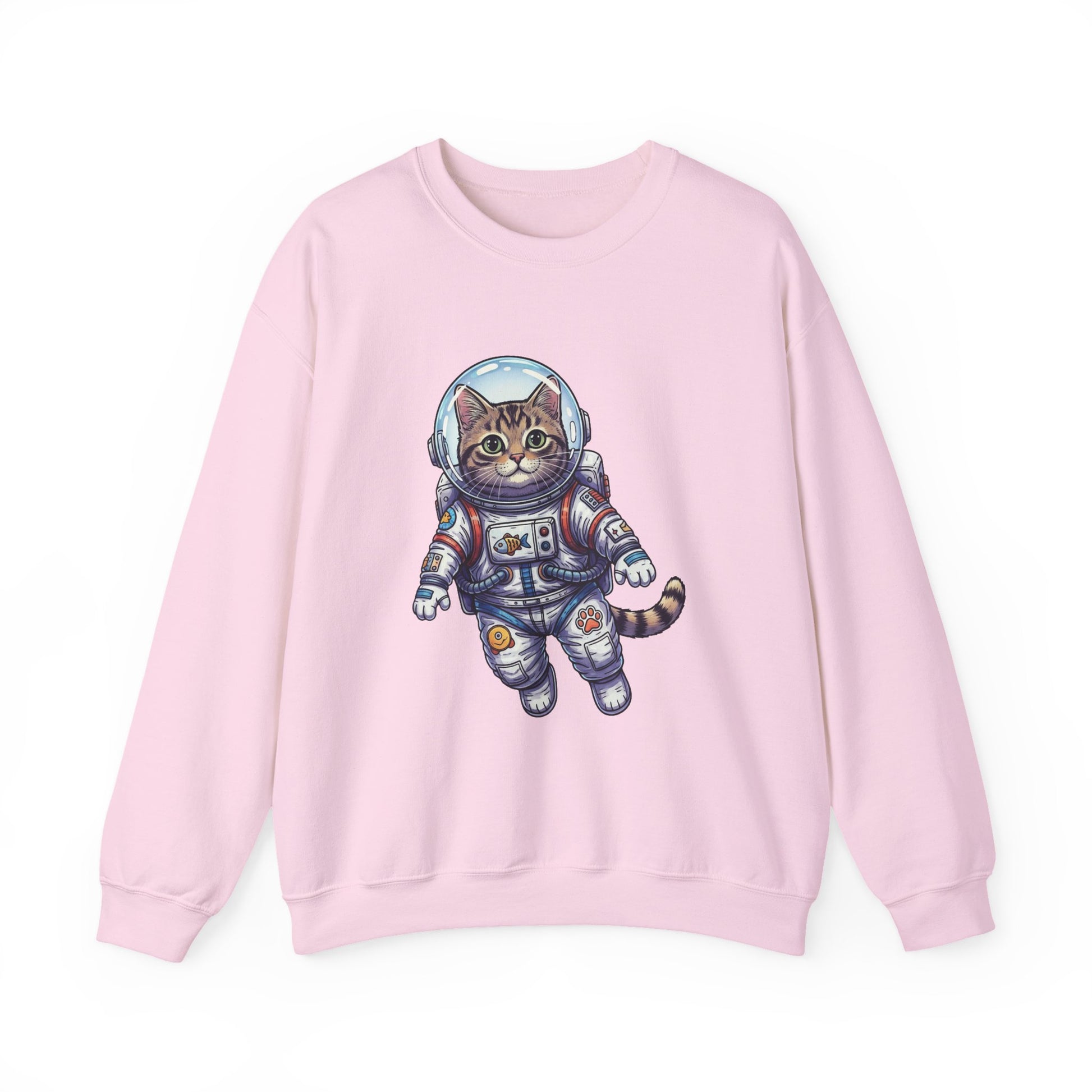 Float into cozy afternoons with this soft crewneck featuring an embroidered-style astronaut cat drifting across the chest. The medium-weight cotton-poly blend holds its shape and warmth without feeling bulky. Wear it for slow mornings with a mug, late-night stargazing, or casual meetups where you want a low-key, whimsical statement—the playful space kitty adds a gentle, curious energy without shouting for attention. The clean crew neckline and classic fit make it easy to layer under a jacket or pair with relaxed jeans. Little details—like tear-away label comfort and reinforced stitching—mean this sweatshirt becomes one you reach for again and again.
