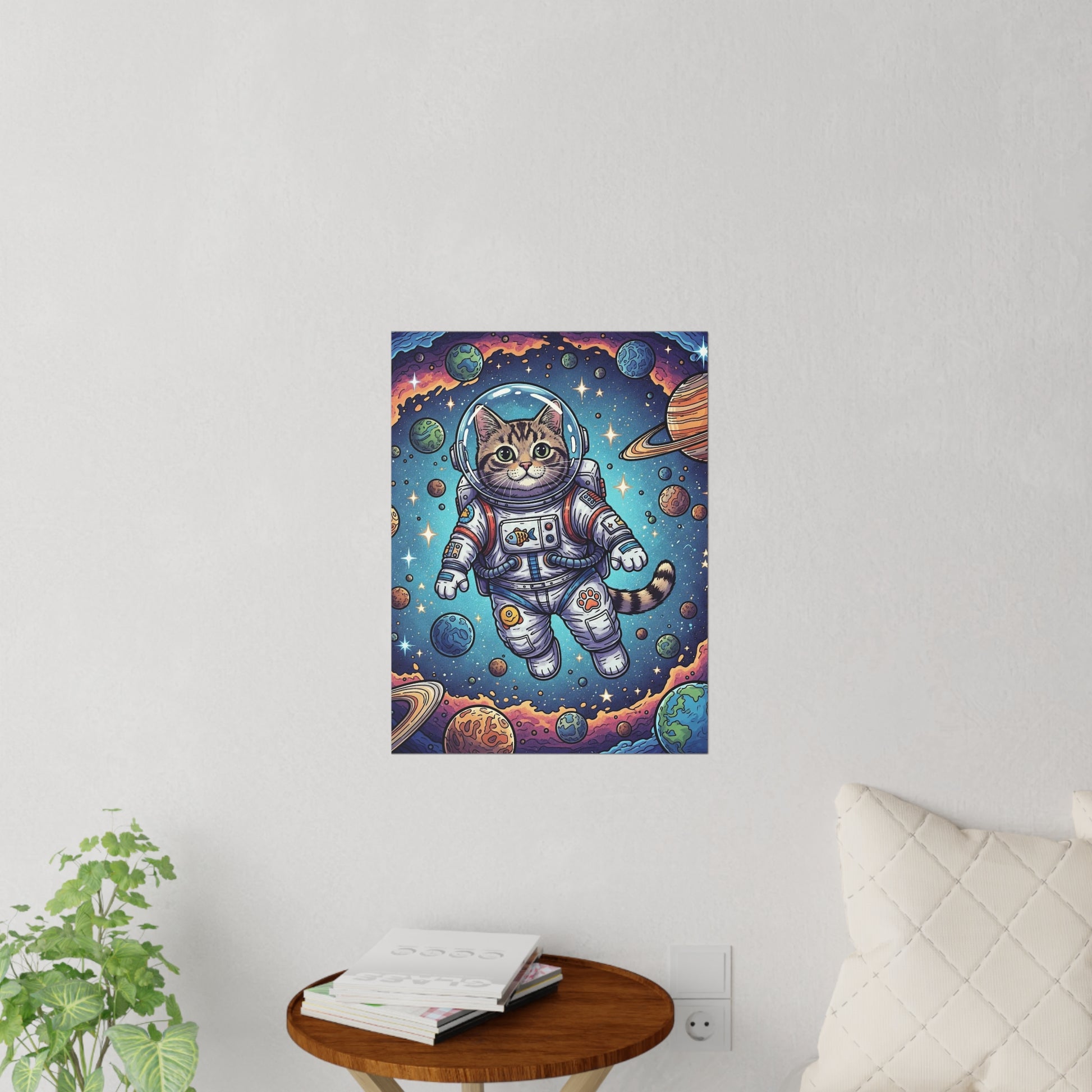 Float into a playful cosmos with this matte-finish wall decal. A wide-eyed tabby in a detailed astronaut suit drifts among colorful planets and twinkling stars. The illustration’s bright, crisp colors and woven texture give the scene depth and warmth—like a tiny mural that invites curiosity every time you pass by. Peel, place, and reposition without stressing about residue; the ultra-removable adhesive lets you change the vibe of a room as easily as changing a poster. It brings a whimsical, adventurous touch to nurseries, creative studios, or any wall that could use a spark of interstellar charm.