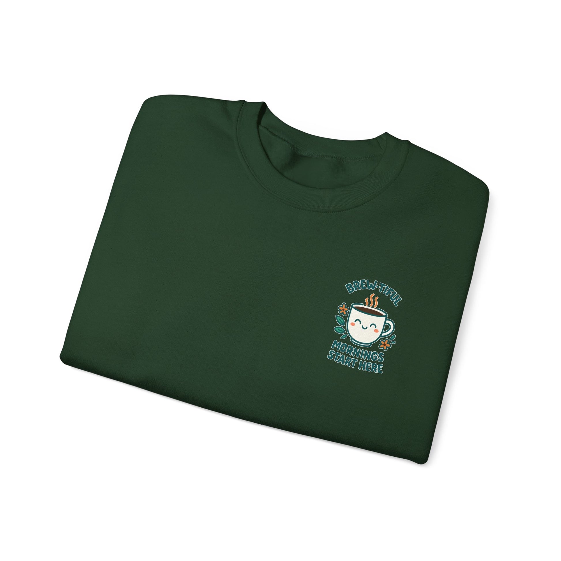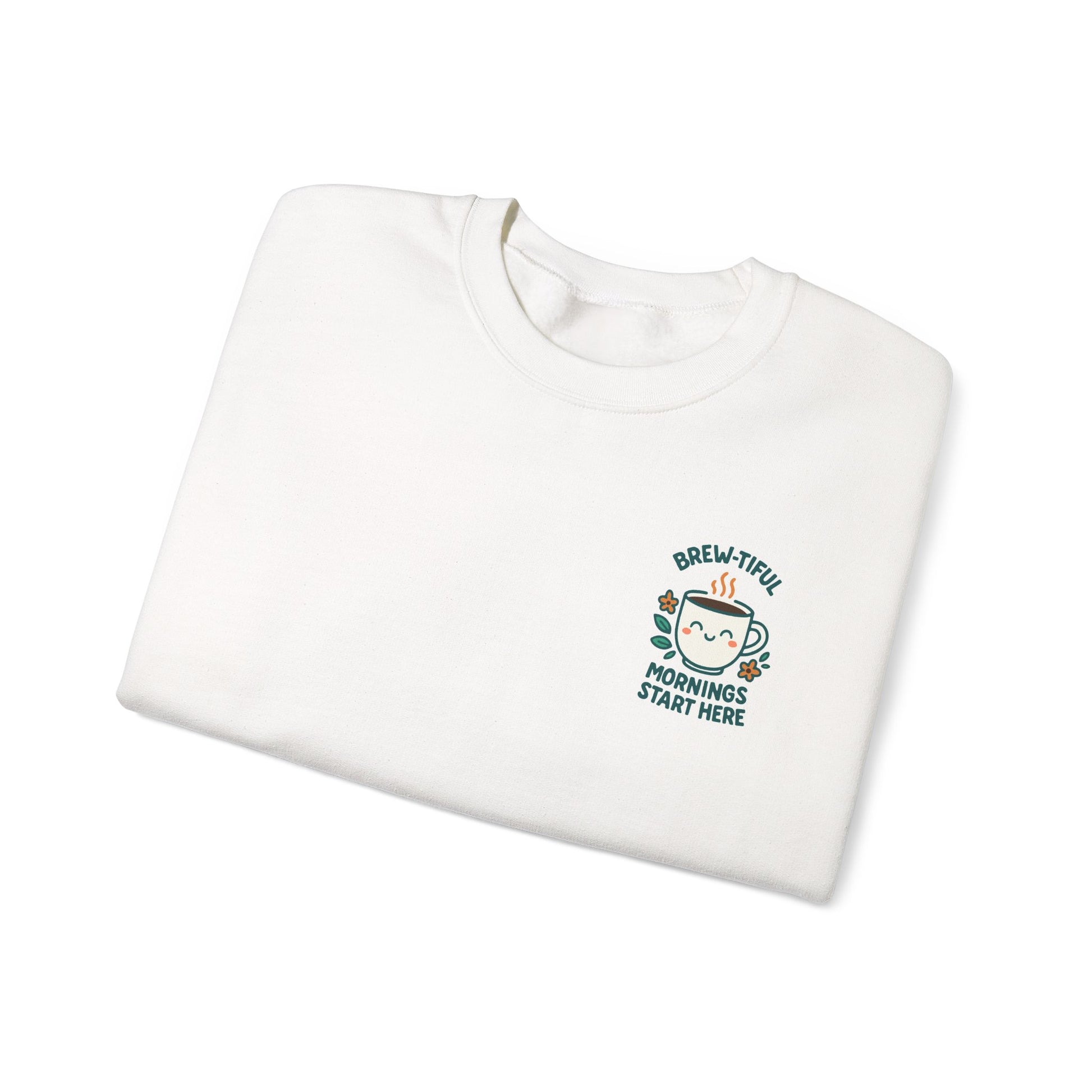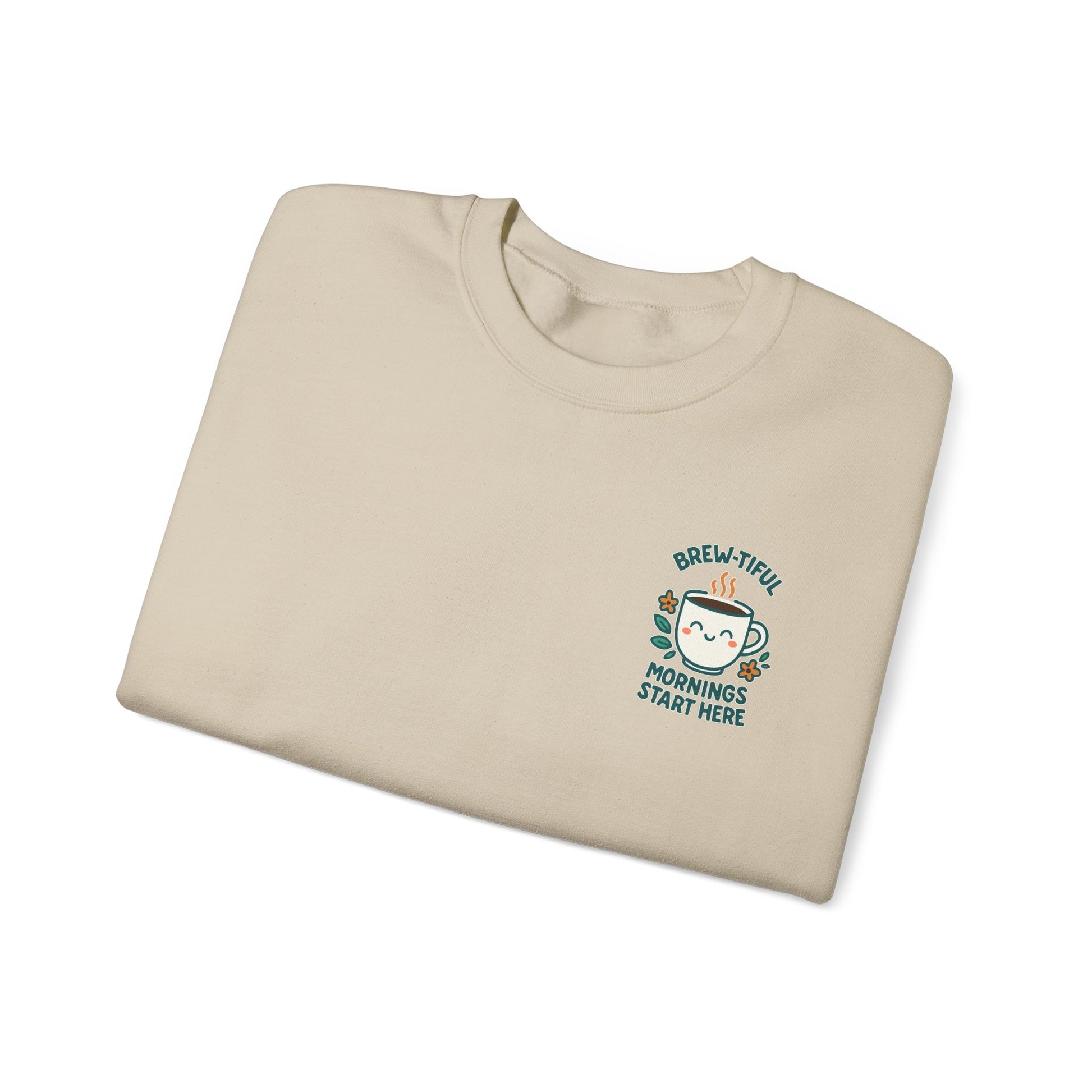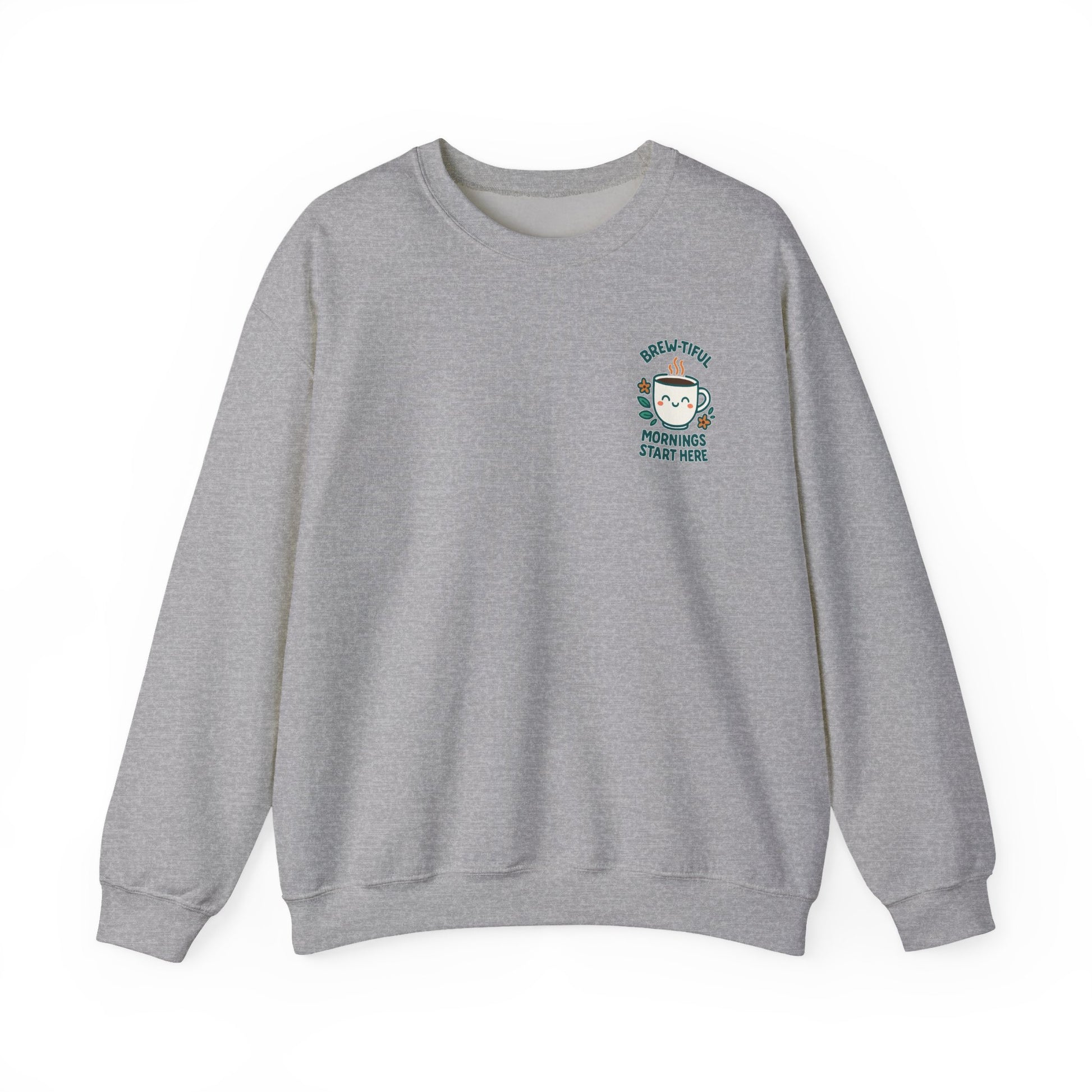 Brew-tiful & Comfy Motivational Sweatshirt, Casual Crewneck, Gift for Friends, Cozy Outfit, Everyday Wear, Inspirational Humor