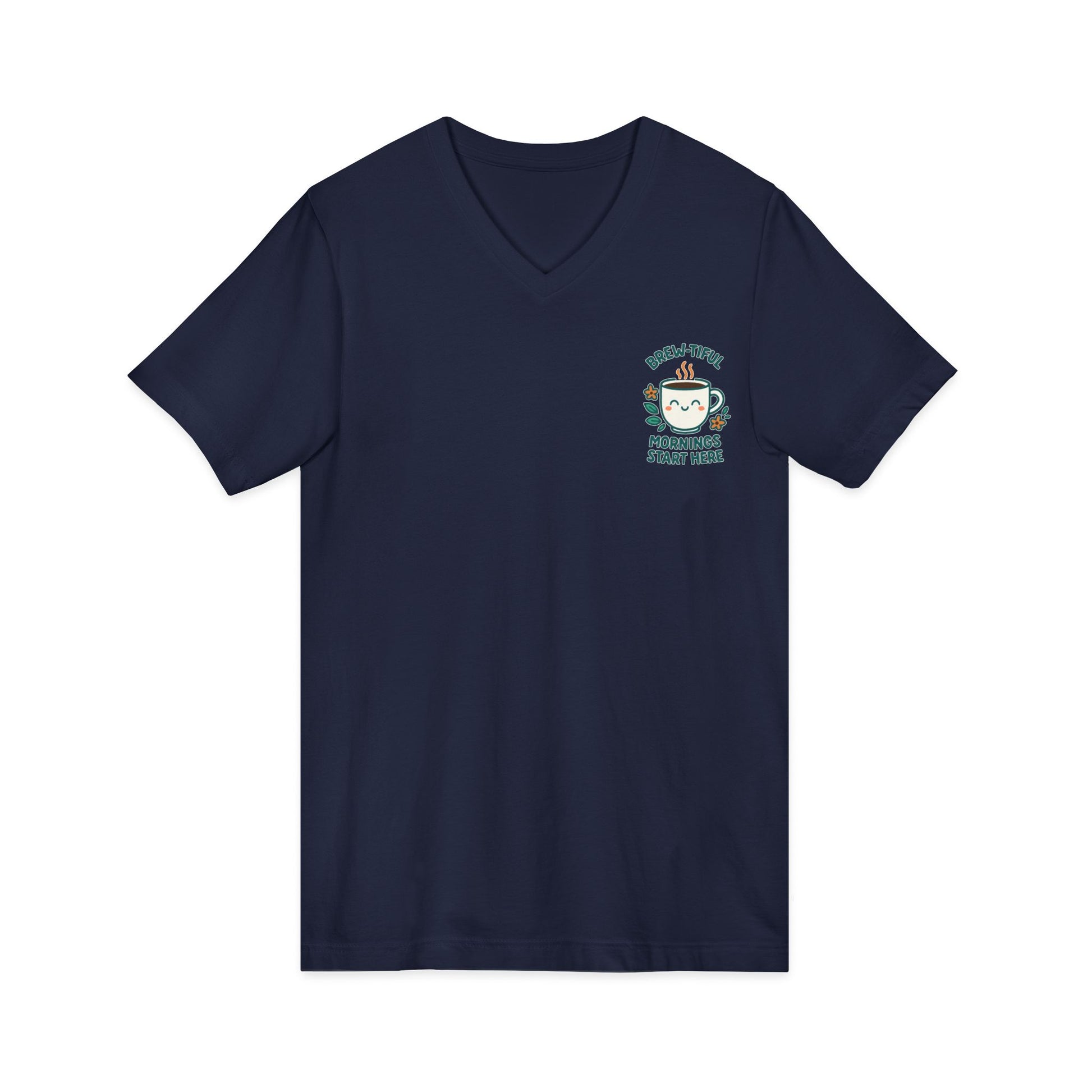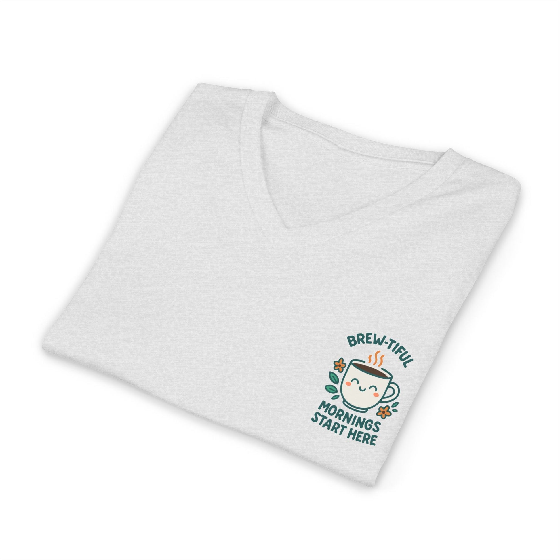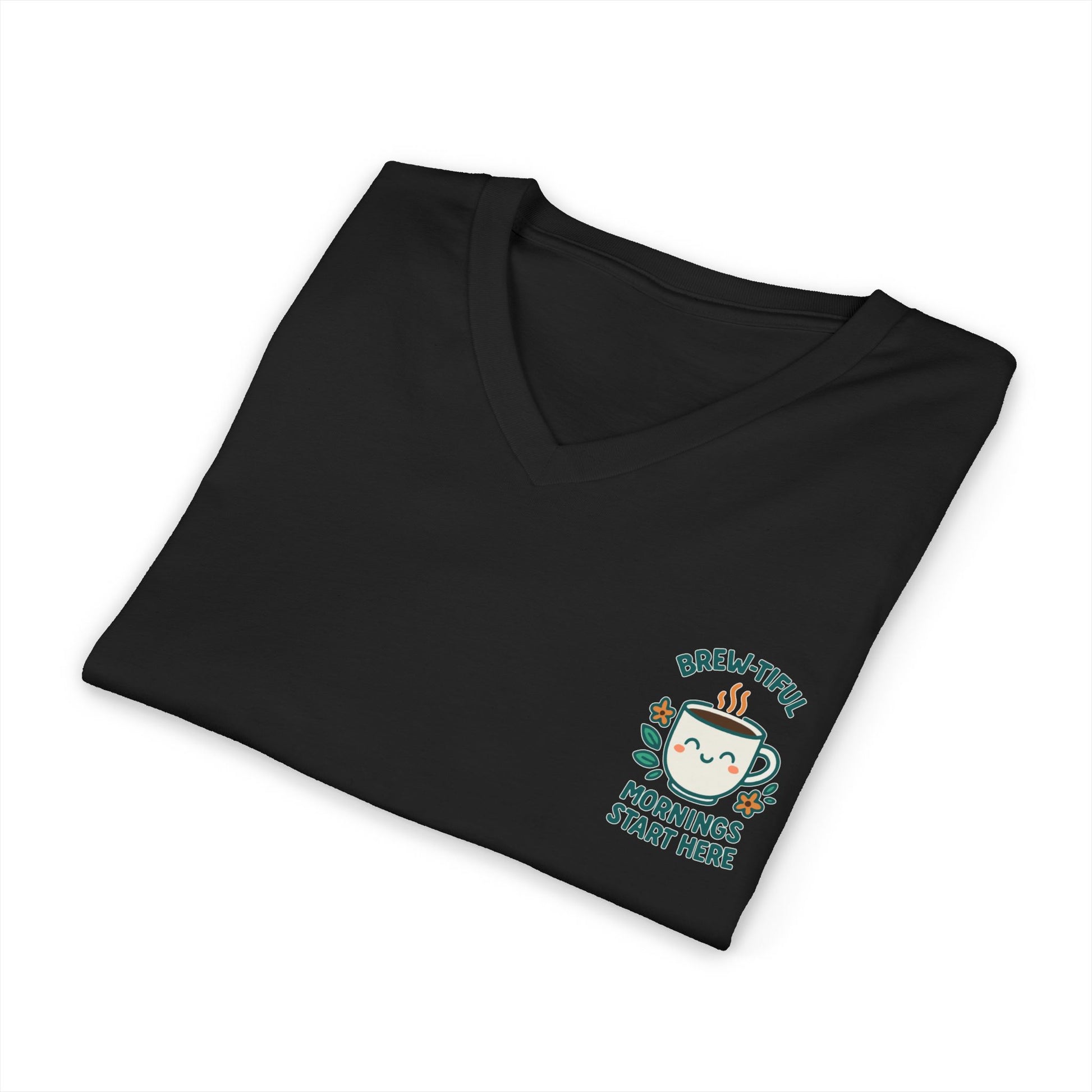 Brew-tiful Mornings Start Here - V-Neck Tee