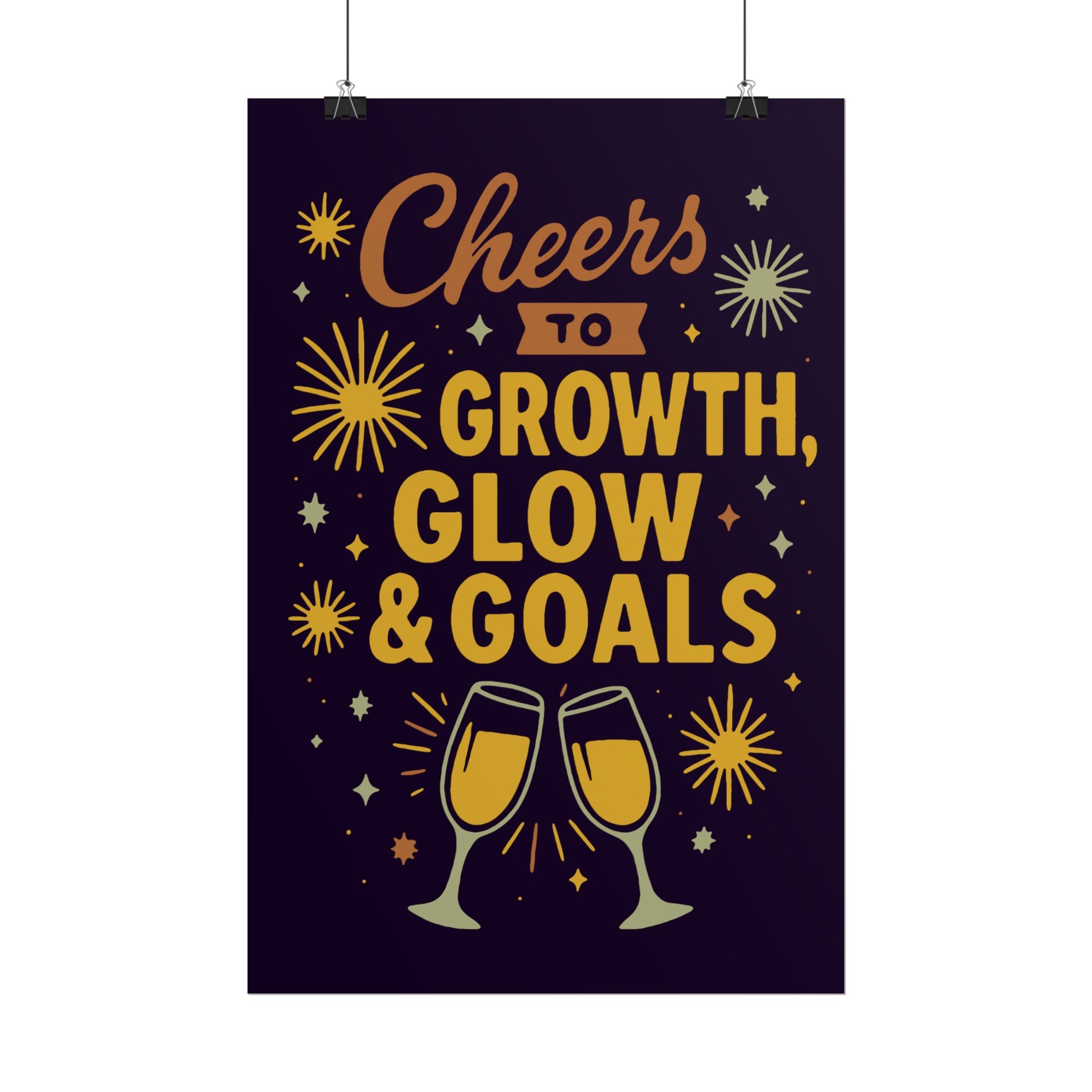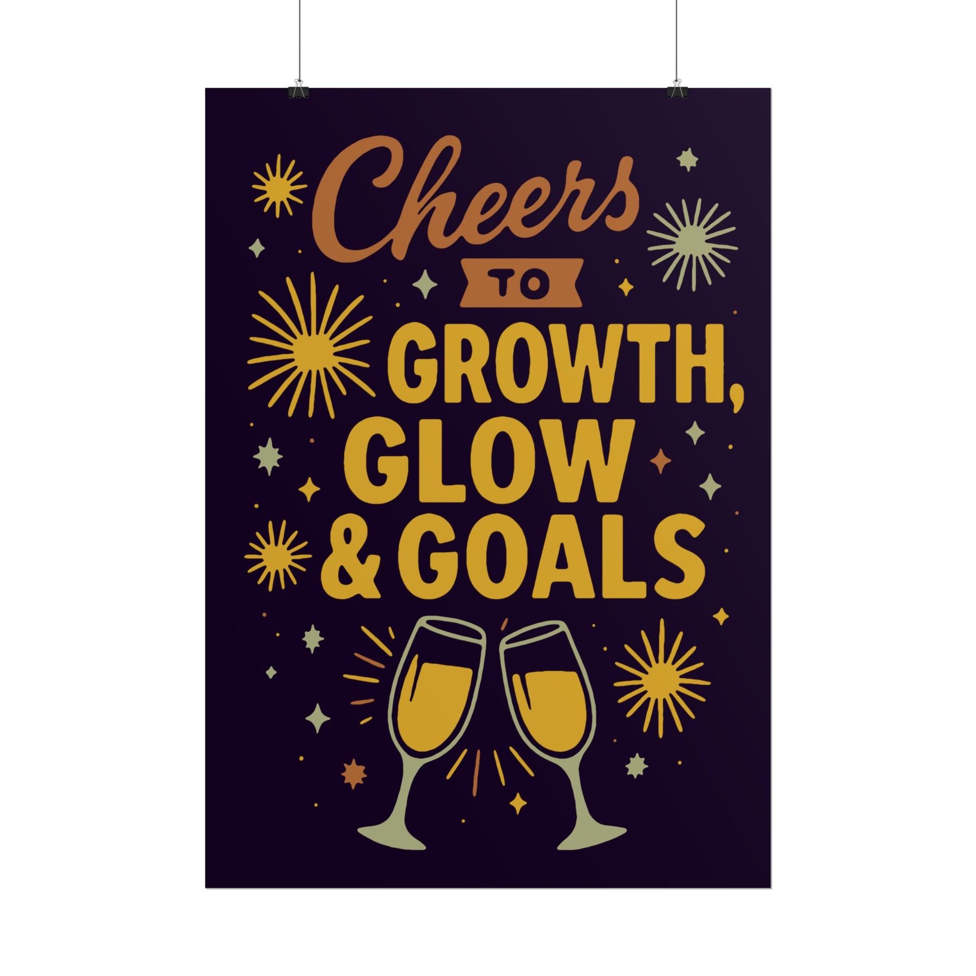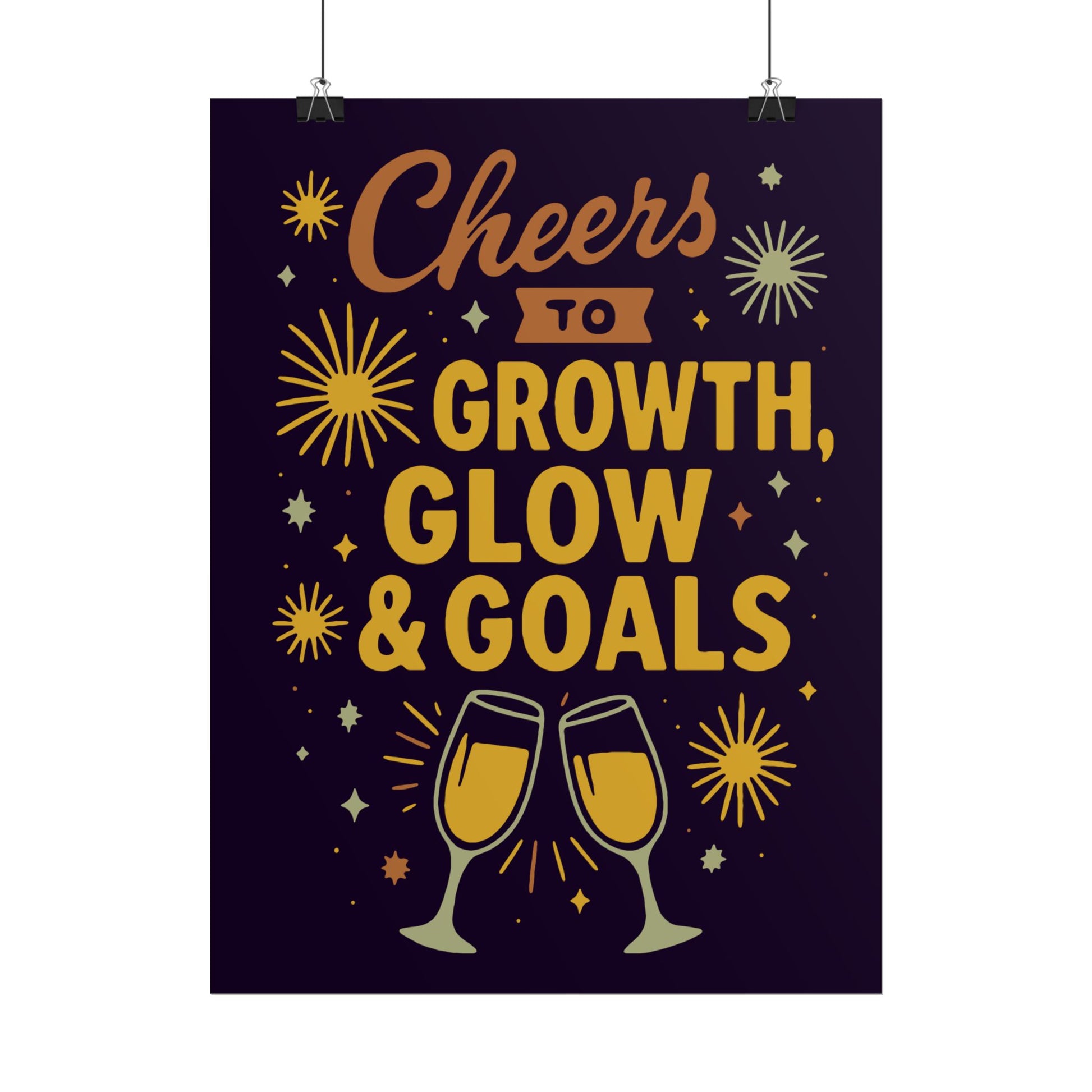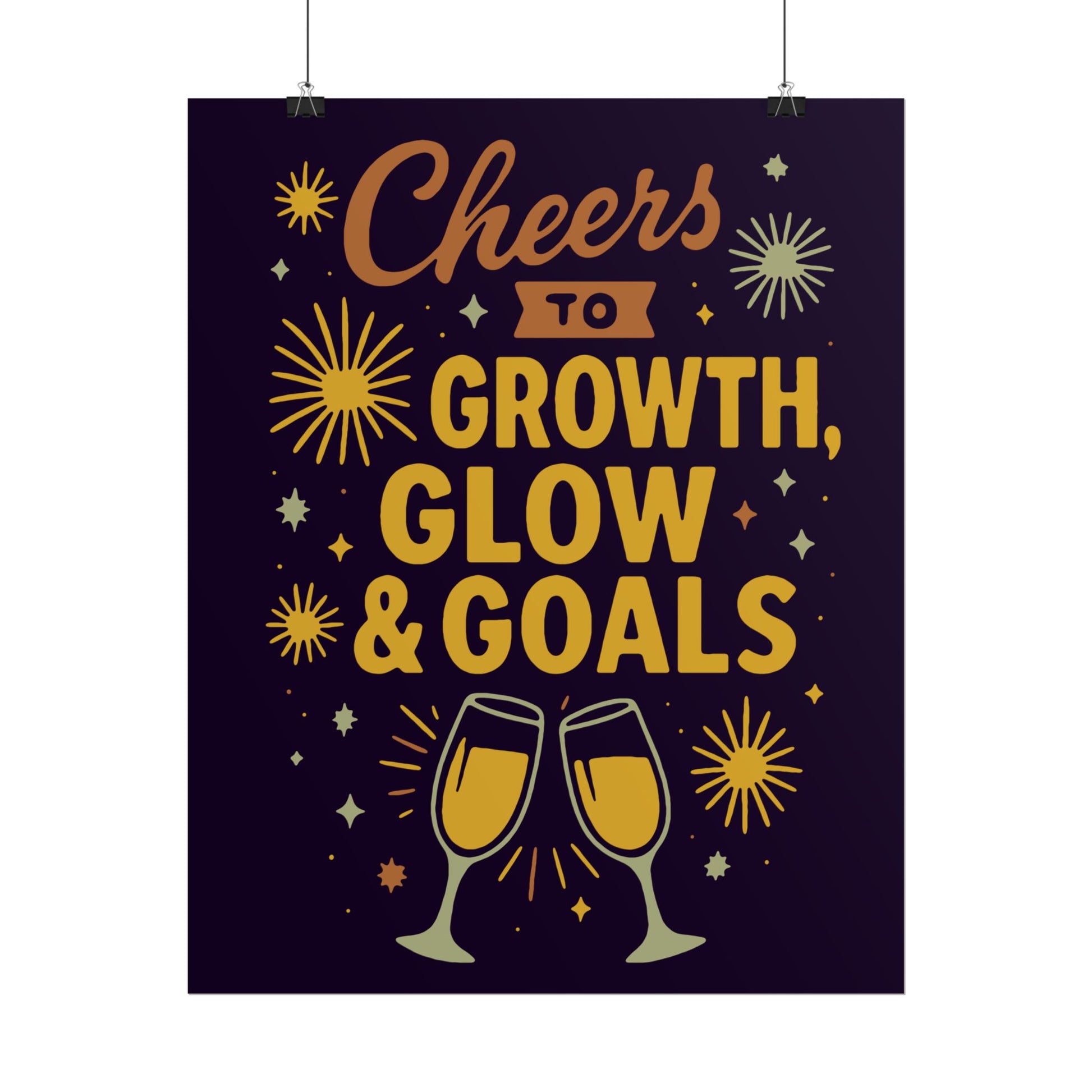 Celebratory Motivational Poster, Cheers to Growth Glow & Goals Print, Inspirational Wall Art, Goal Setting Motivation Decor, New Year Vibes