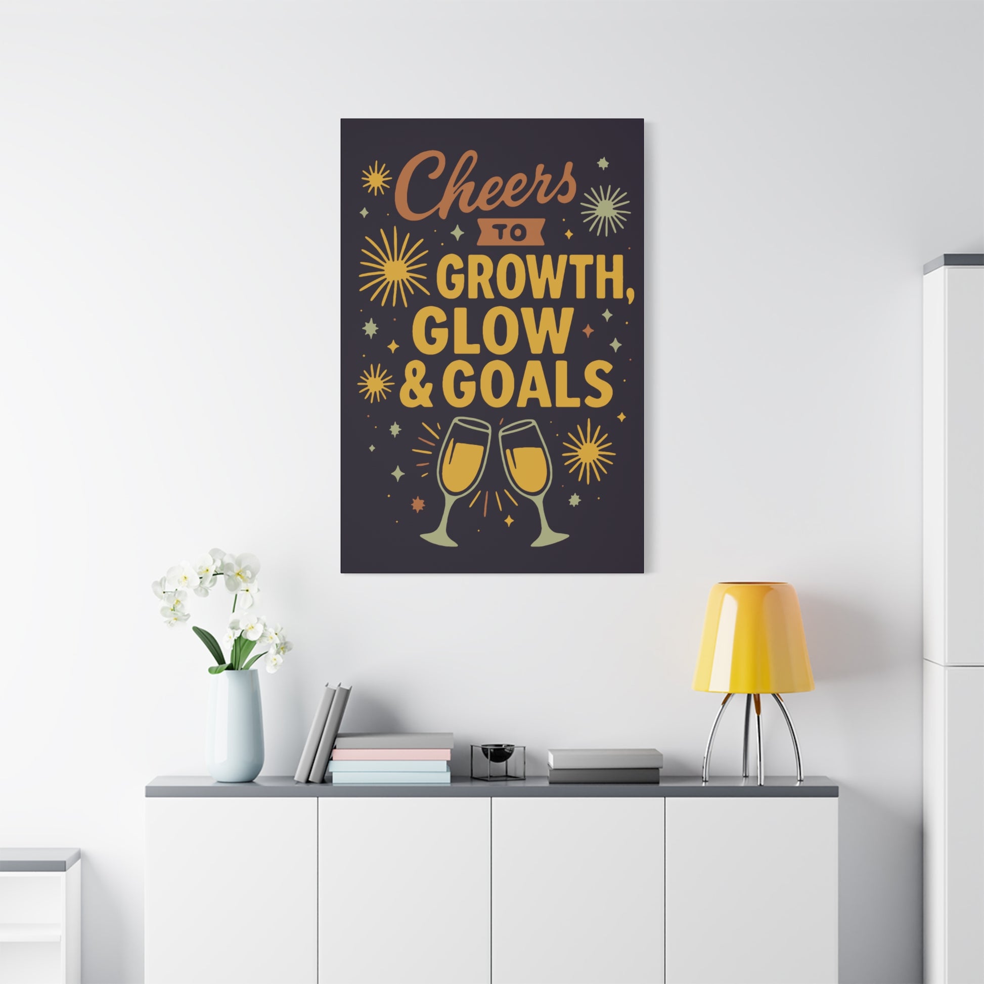 Cheers to Growth Canvas Wall Art, Motivational Decor, Inspirational Print for Home, Office, Gift for Graduates, New Year Vibes