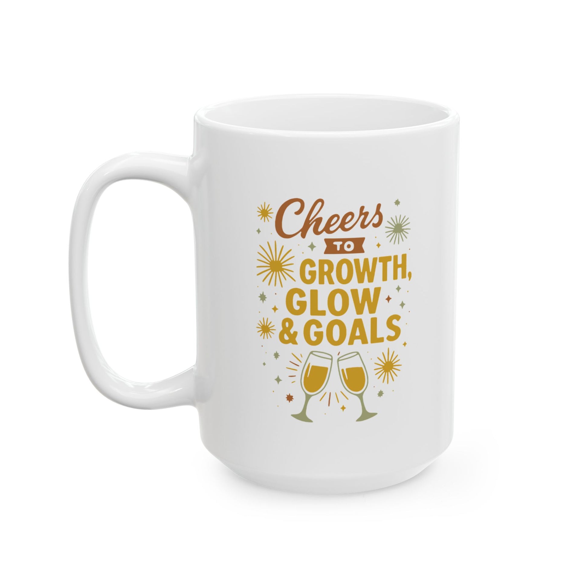 Cheers to Growth Ceramic Mug, Motivational Cup, Self-Improvement Gift, Office Mug, Inspirational Drinkware, Goal-Setting