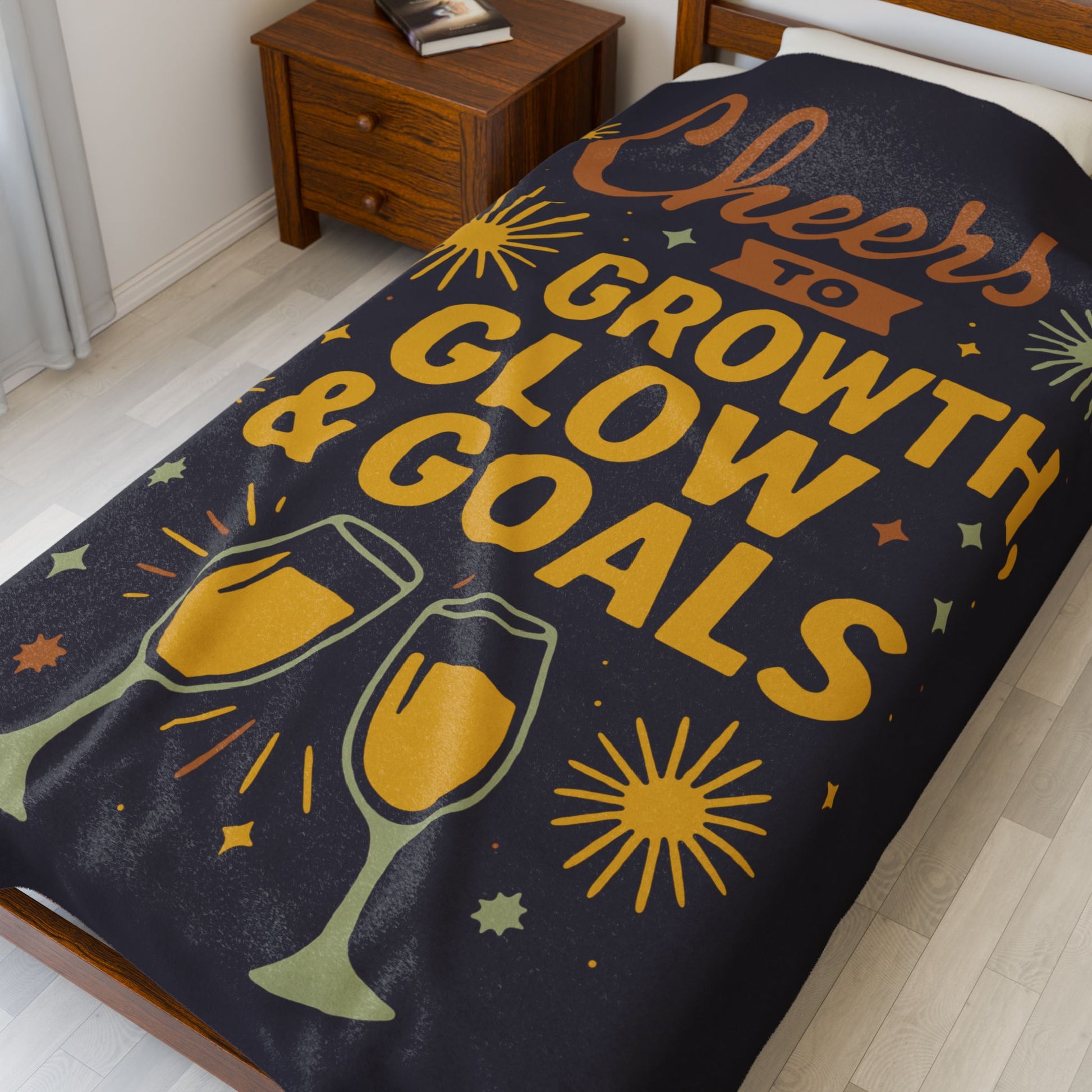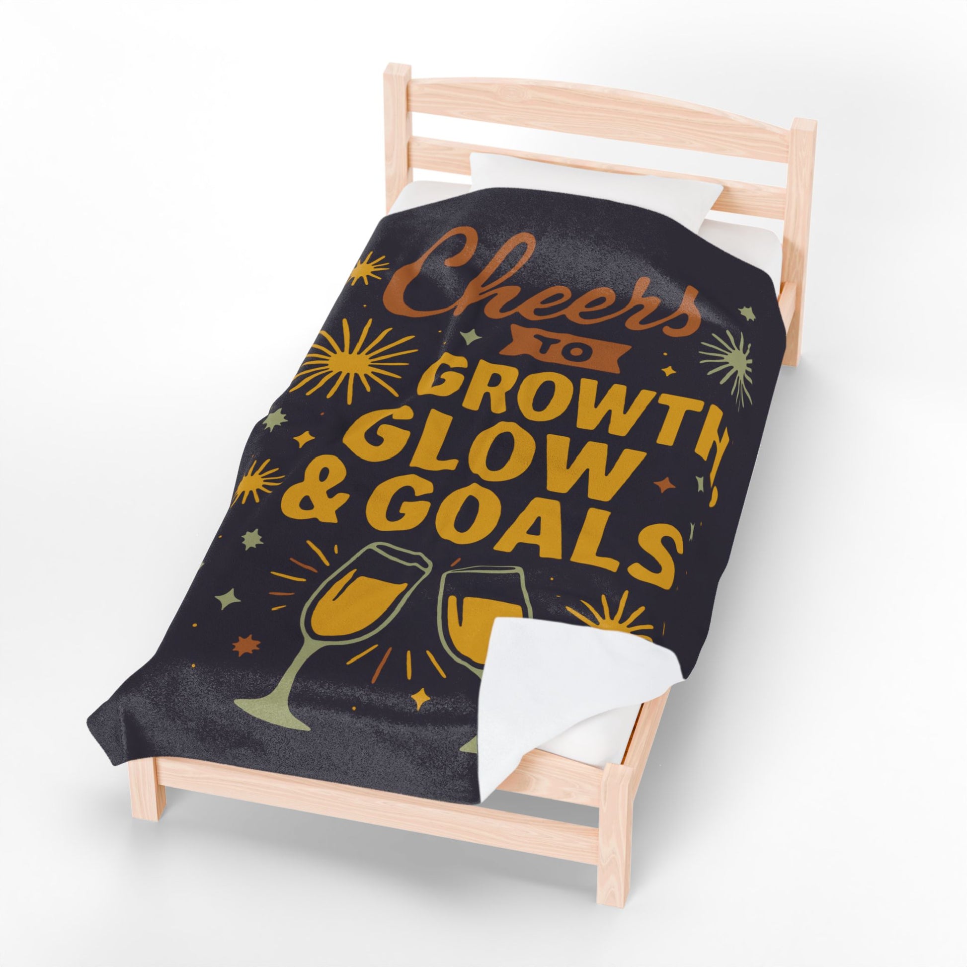 Cheers to Growth, Glow & Goals Velveteen Plush Blanket, Cozy Throw for Celebrations, Motivational Gifts, Home Decor, Self-Care