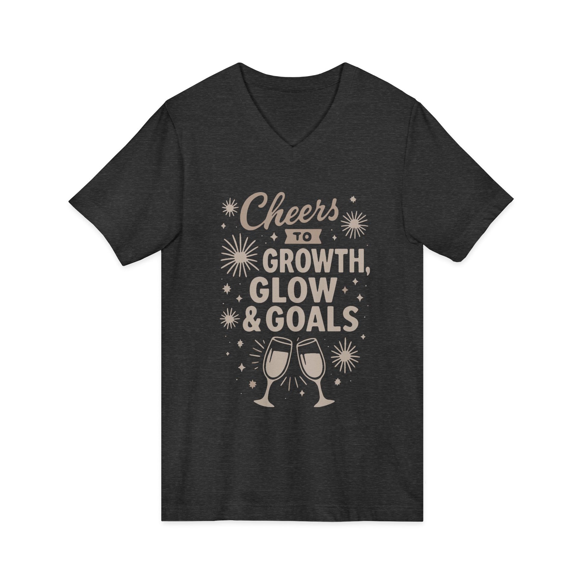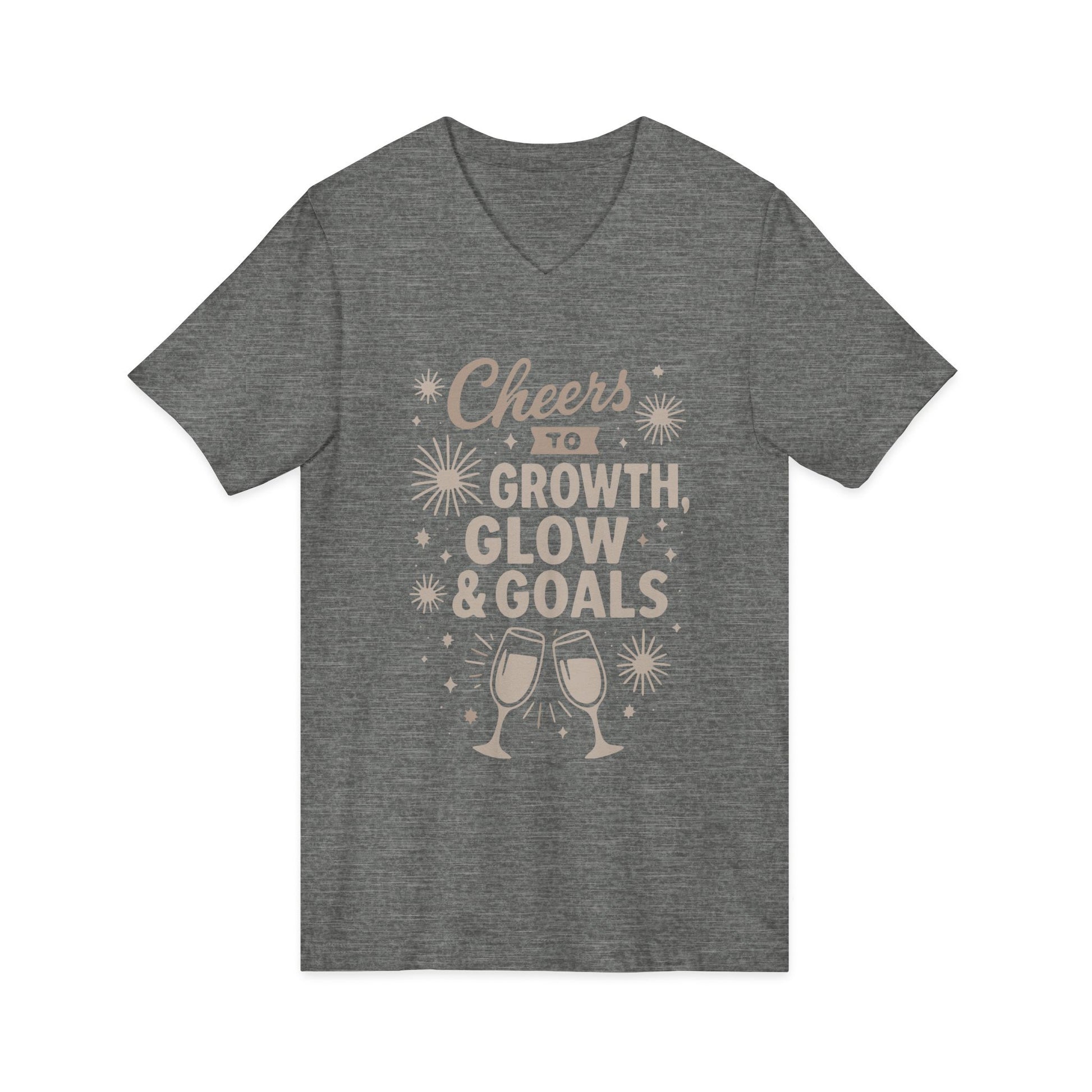 Cheers to Growth, Glow & Goals - V-Neck Tee
