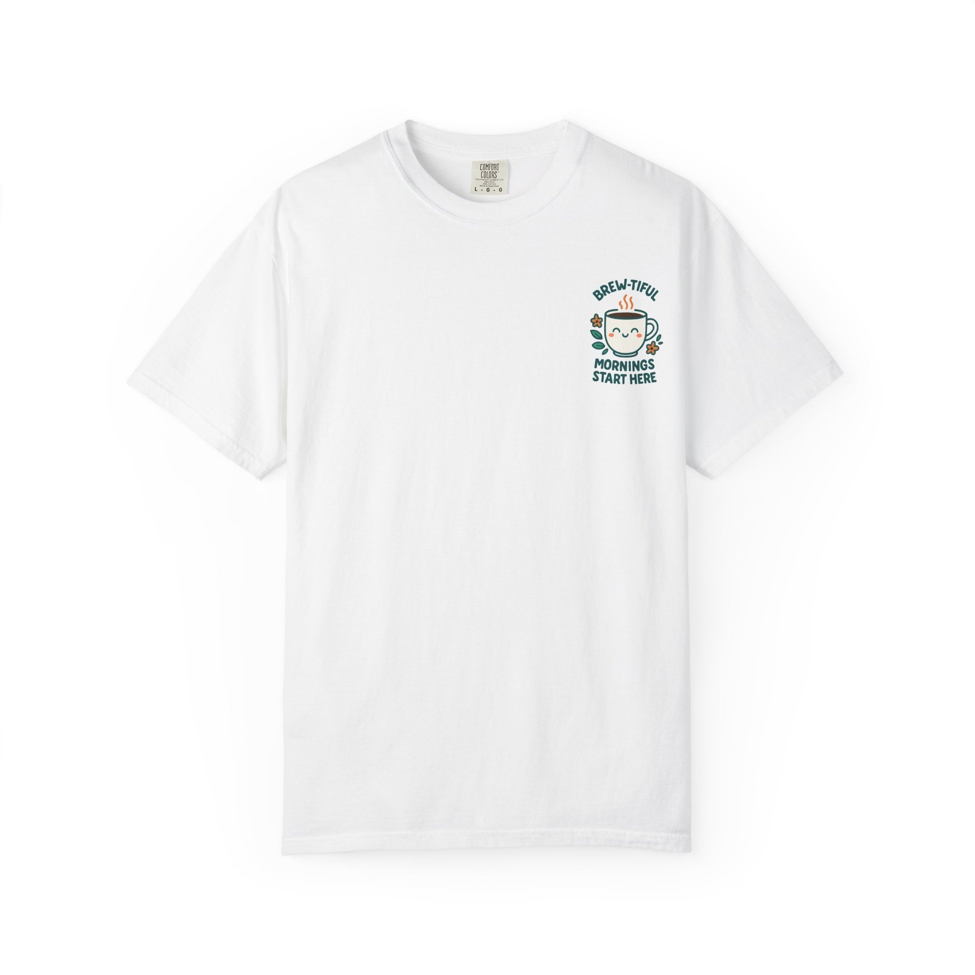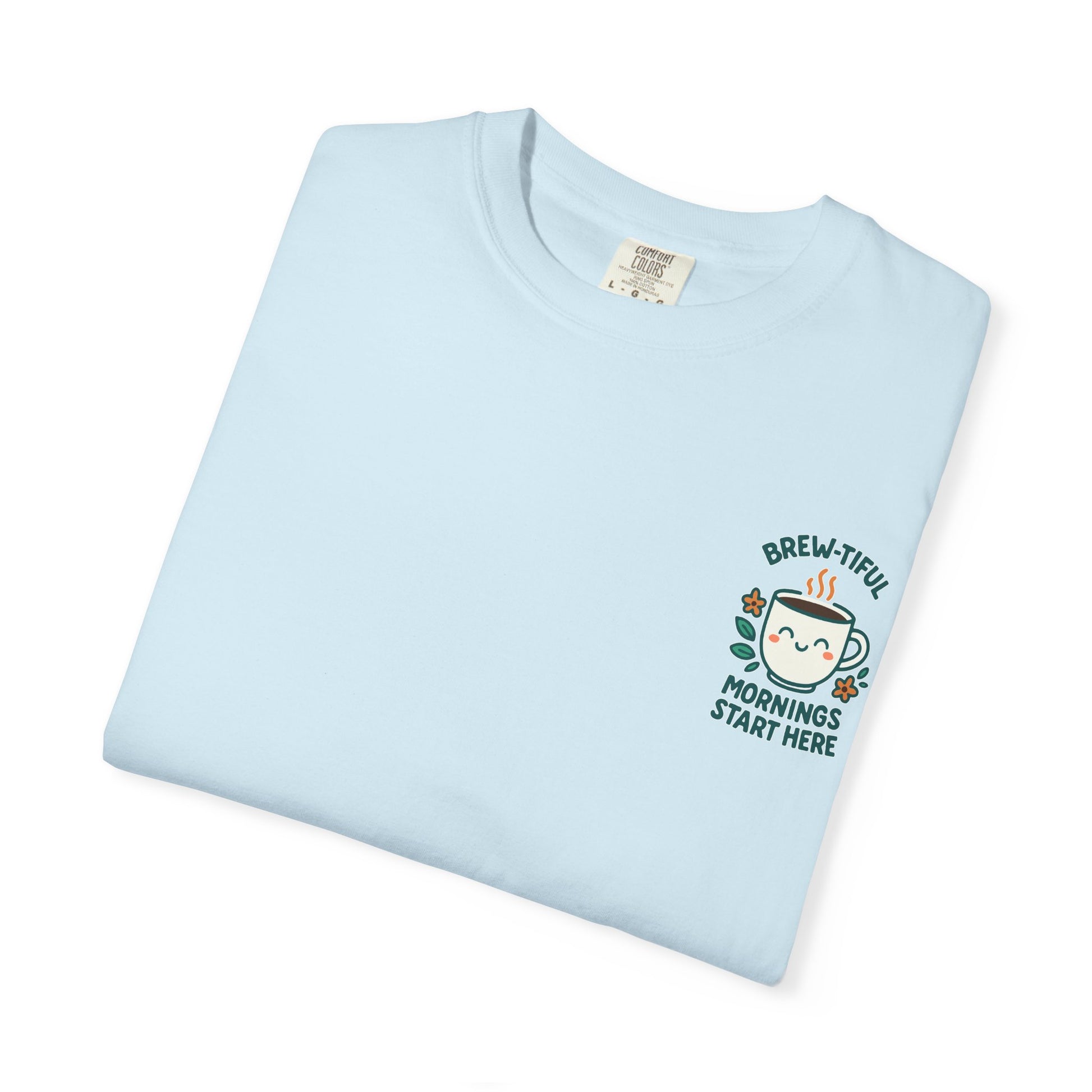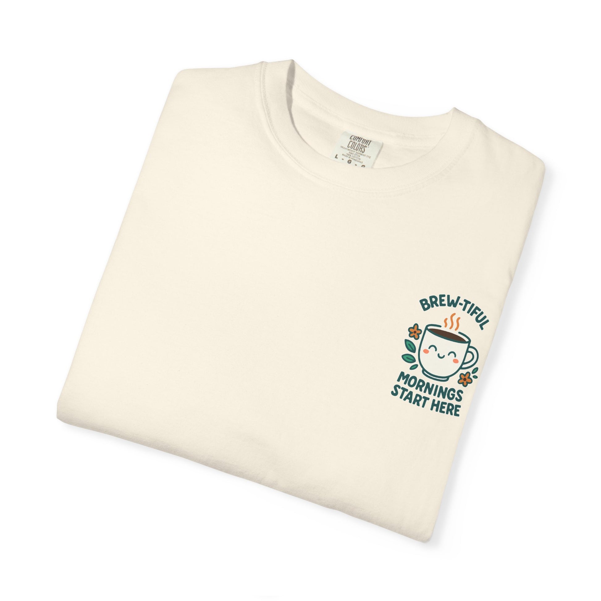 Garment-Dyed Inspirational "Brew-tiful Mornings" T-shirt, Casual Tee, Unisex Shirt, Motivational Top, Soft Cotton T-Shirt, Everyday Wear