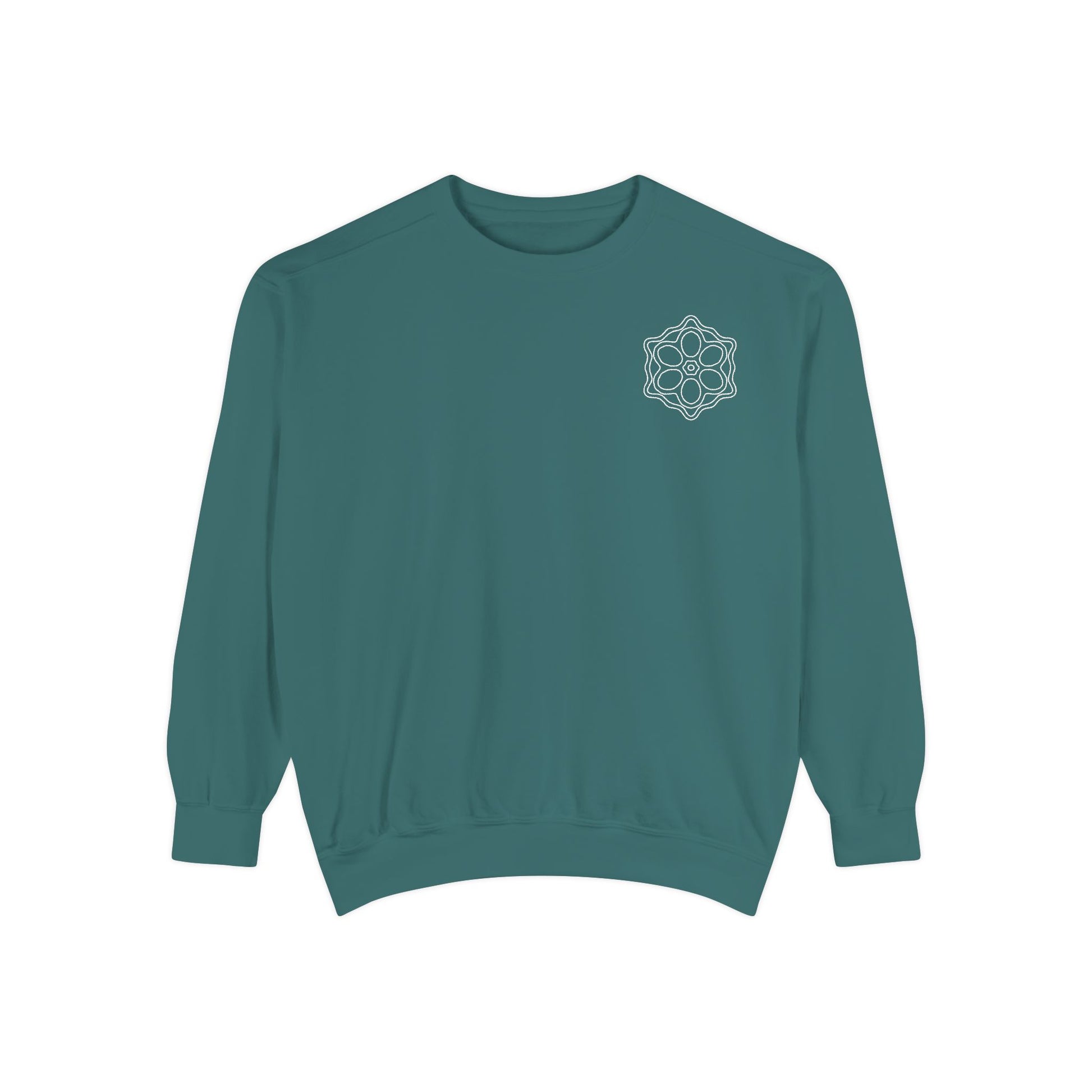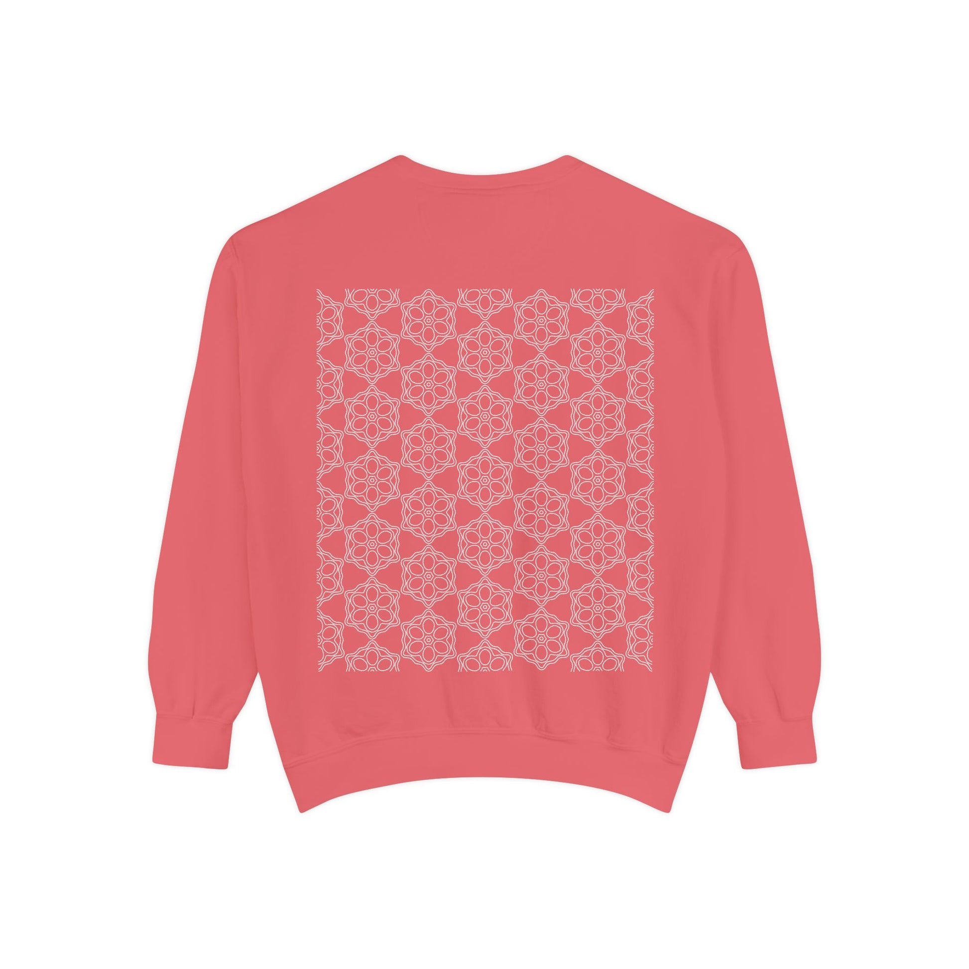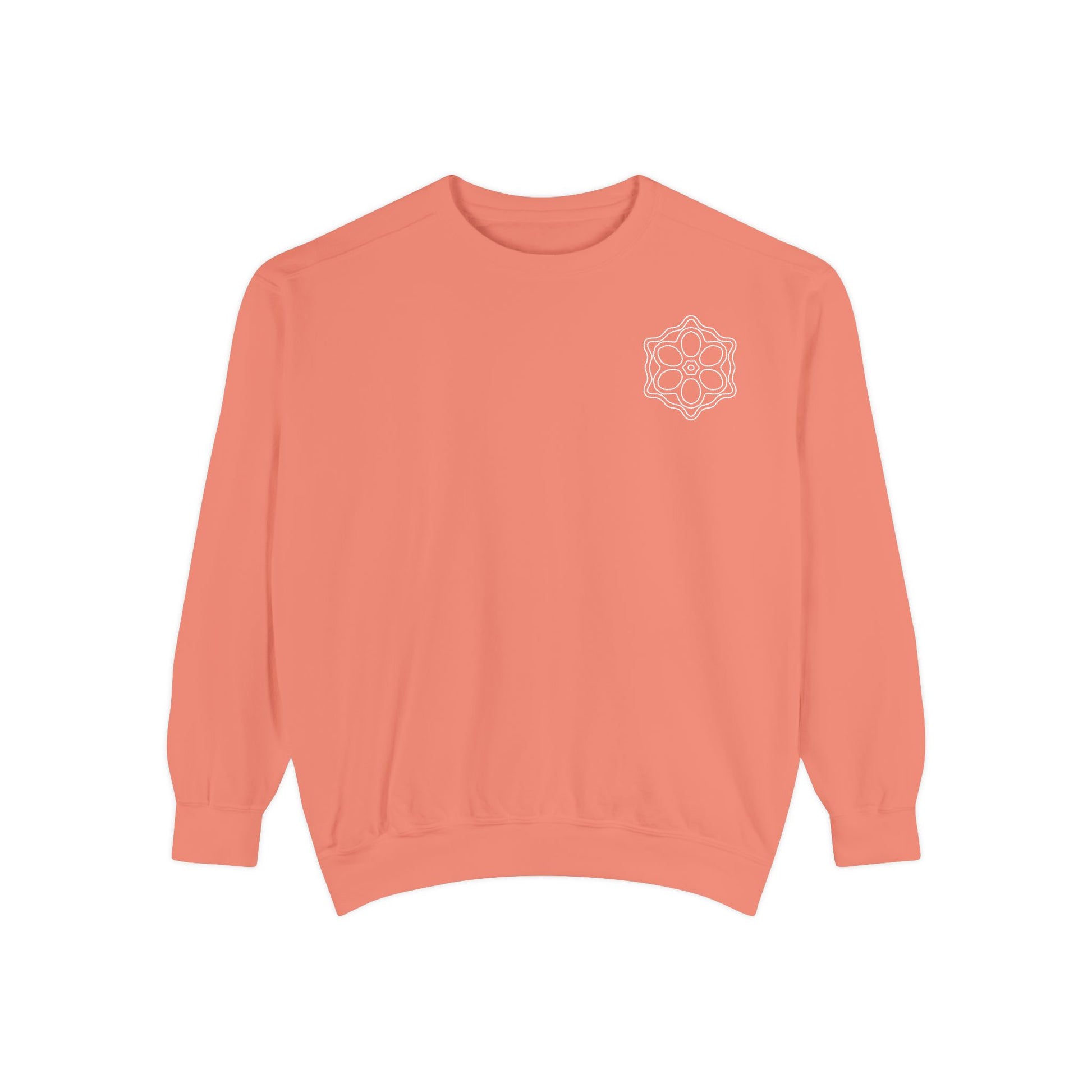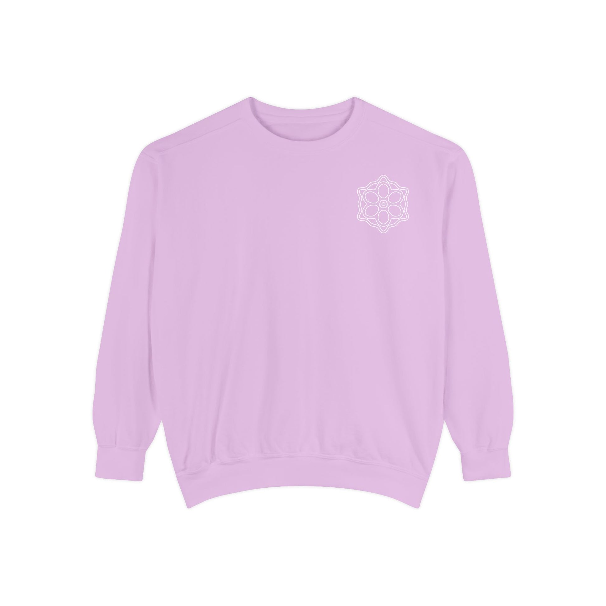 Garment-Dyed Sweatshirt with Elegant Floral Design, Cozy Unisex Sweater, Fashionable Casual Wear, Gift for Her, Perfect for Spring Style
