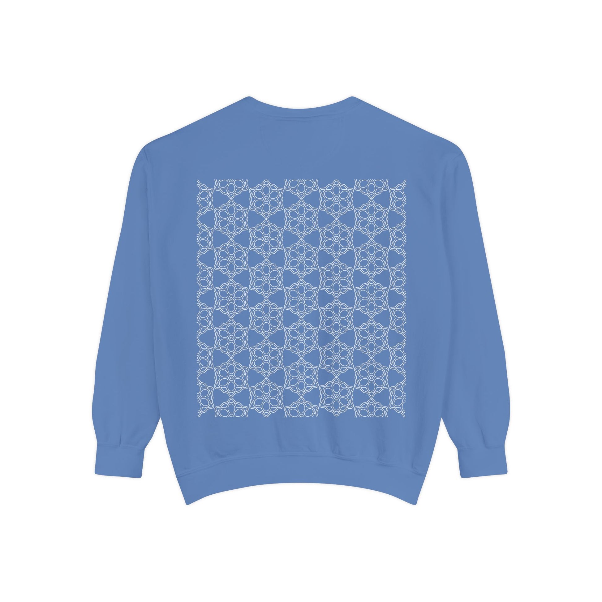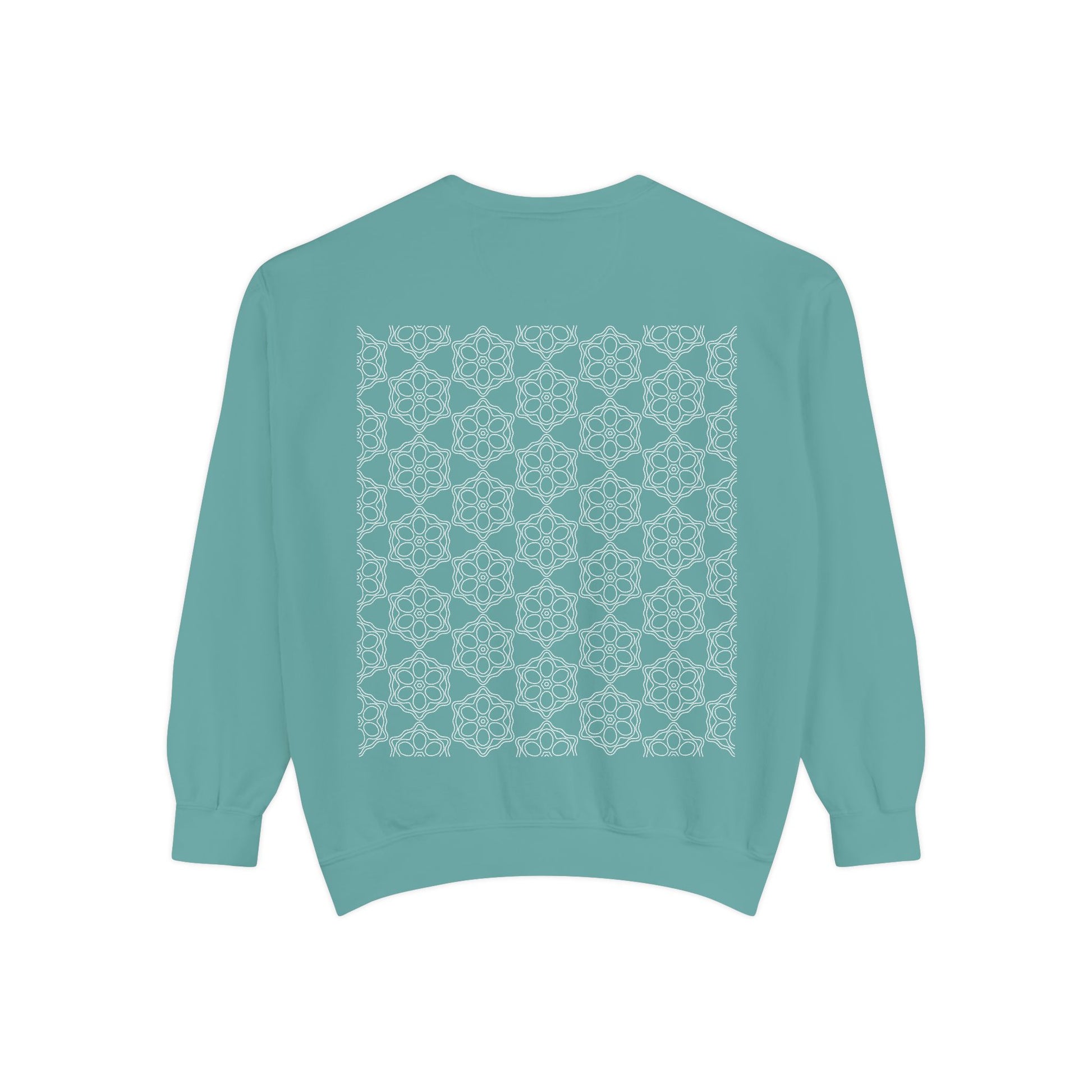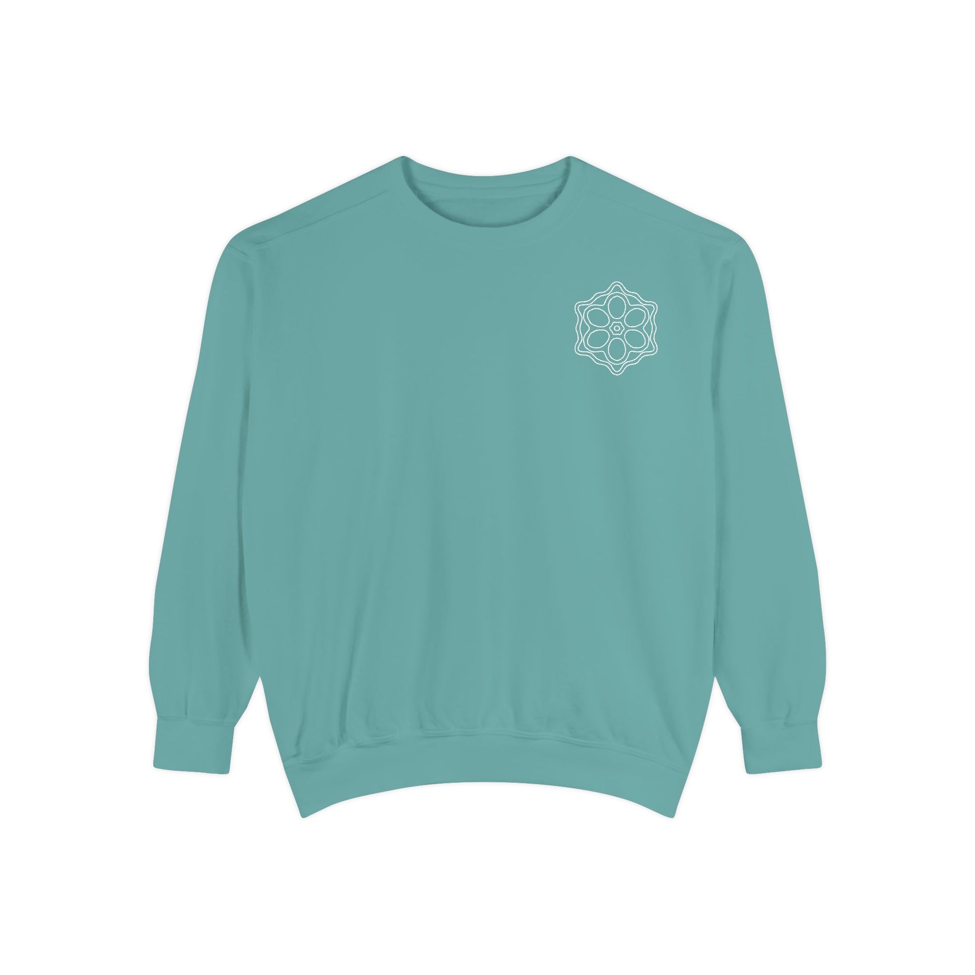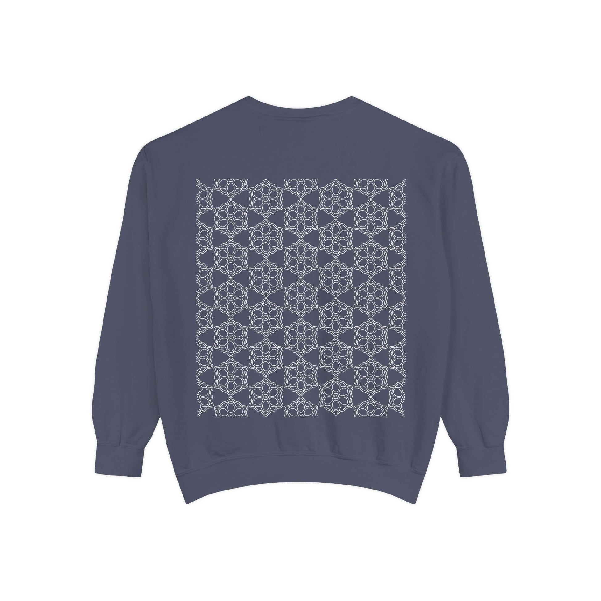 Garment-Dyed Sweatshirt with Elegant Floral Design, Cozy Unisex Sweater, Fashionable Casual Wear, Gift for Her, Perfect for Spring Style