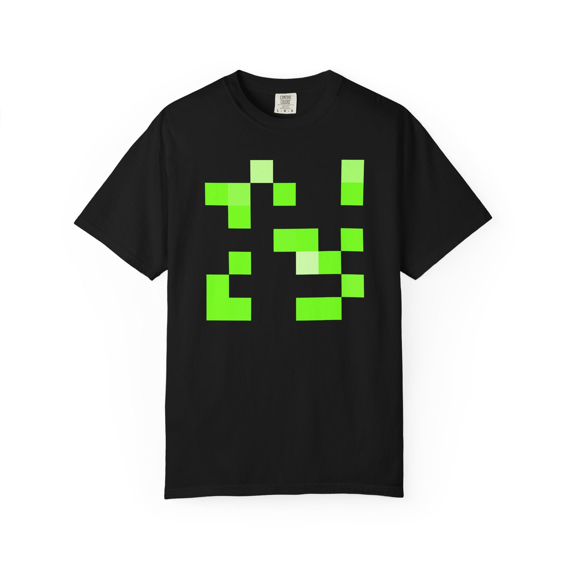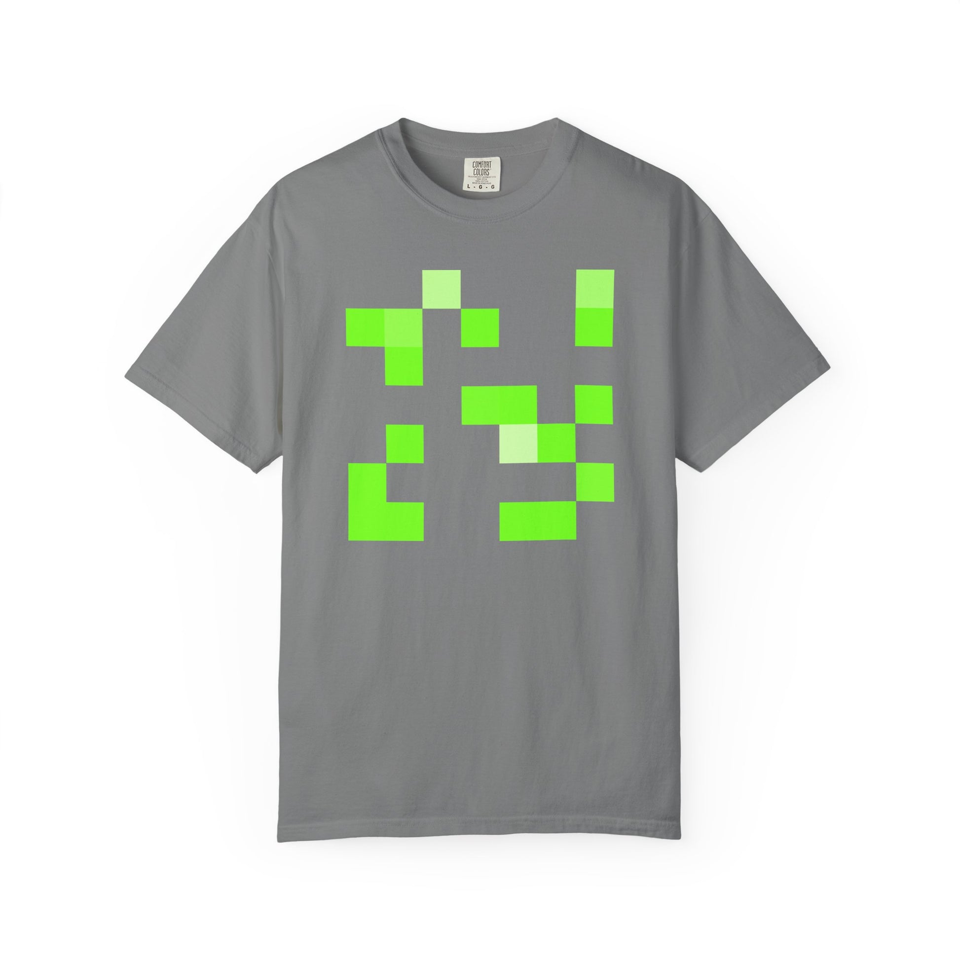 This garment-dyed tee carries a calm, lived-in feel — soft to the touch with colors that look naturally worn from the first wear. The relaxed cut and heavyweight cotton give it presence without stiffness; the pixel-inspired graphic adds a playful, modern edge that reads like streetwear code. Wear it to slow coffee shops, short runs through the city, or low-key gatherings where comfort and quiet style matter. The color settles into fabric over time, becoming uniquely yours with each wash.