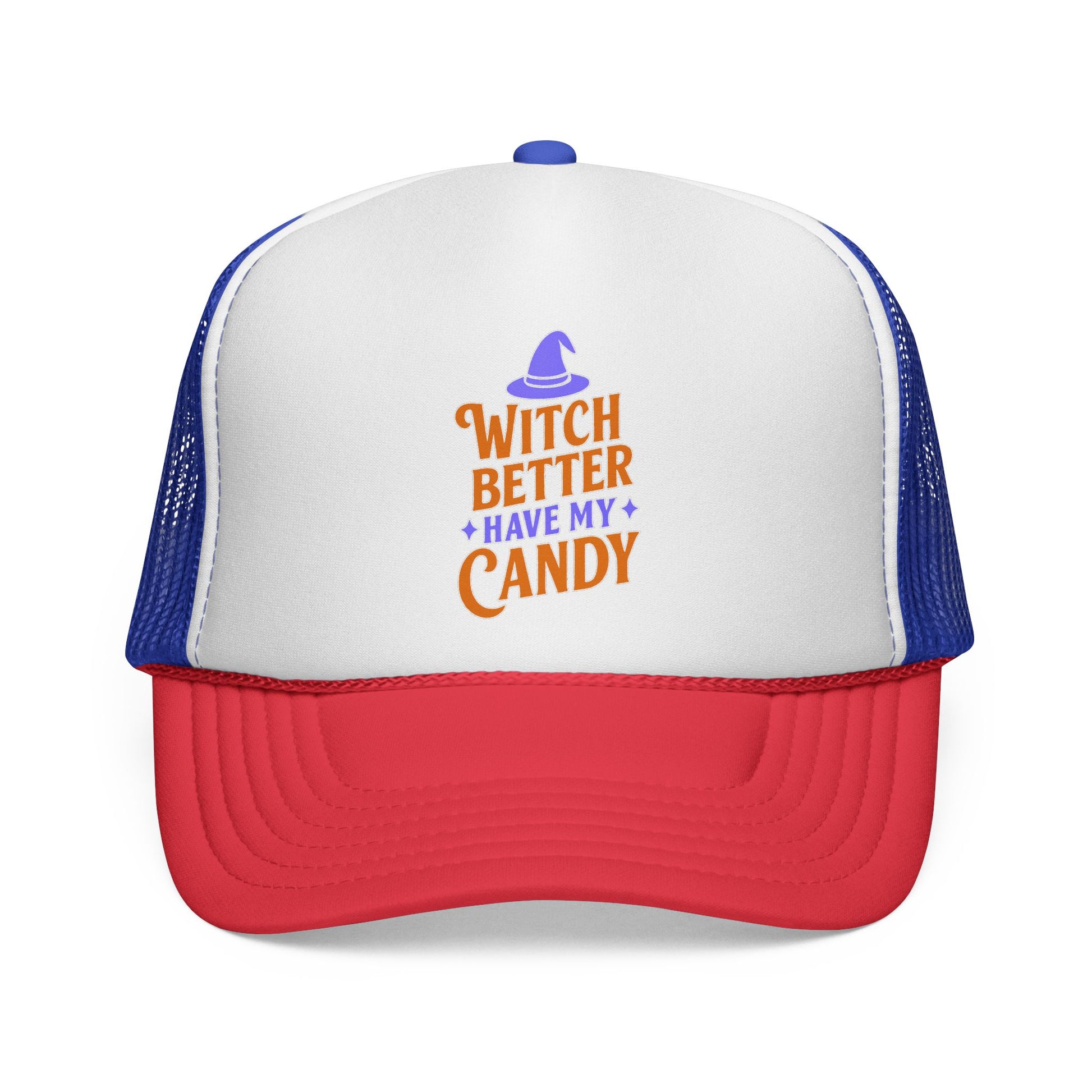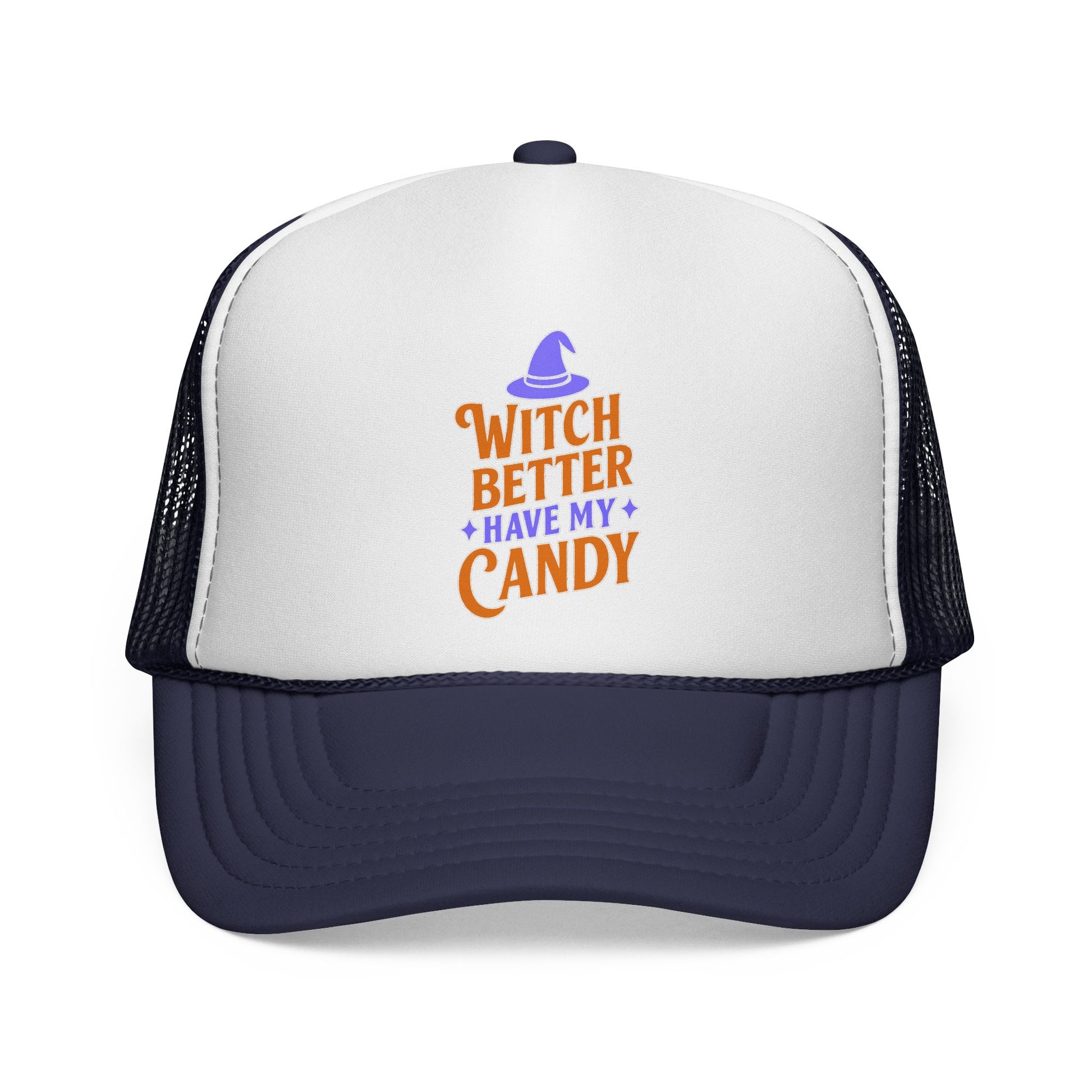 Halloween Trucker Cap, Spooky Hat, Witch Better Have My Candy, Pumpkin Costume Accessory, Trick or Treat Gear