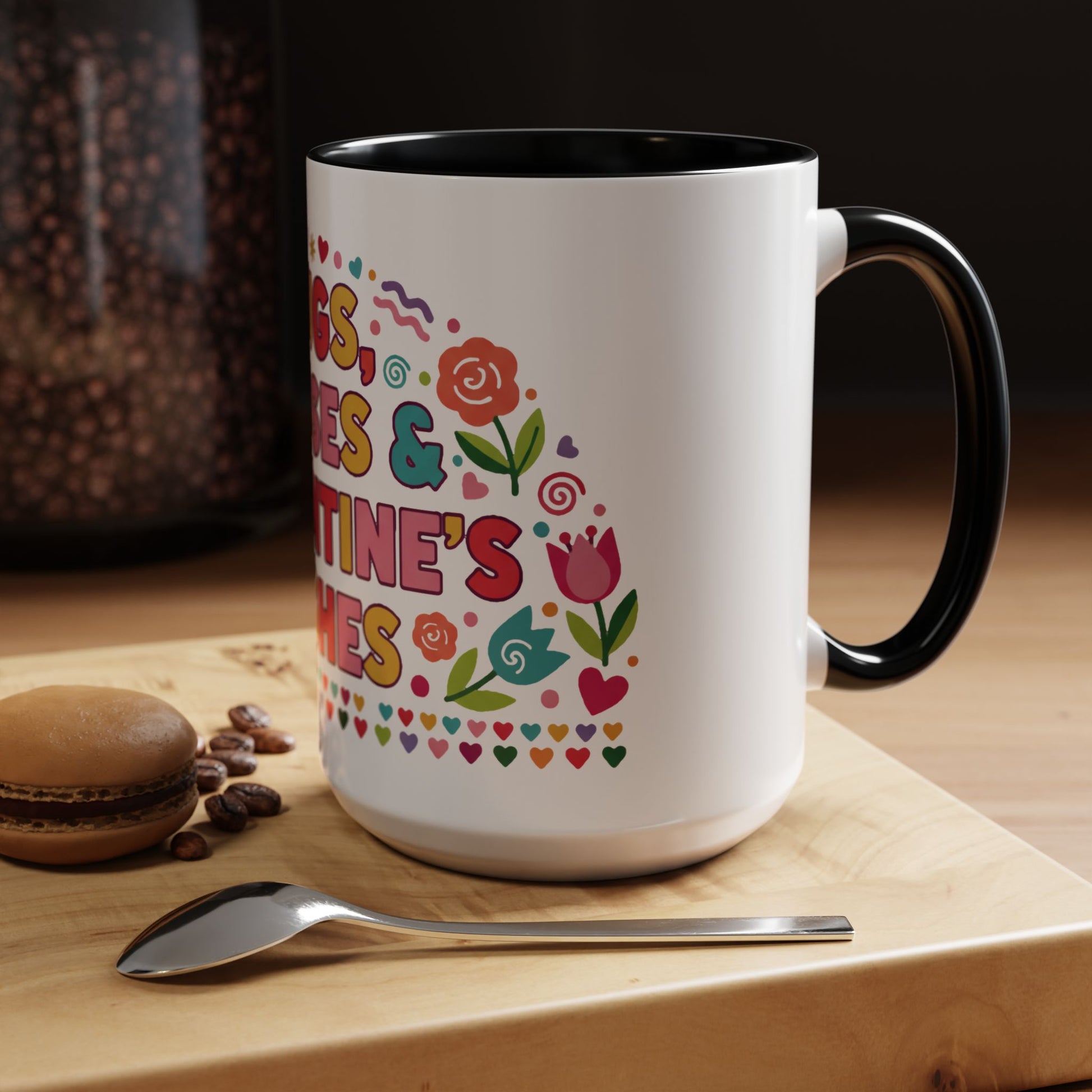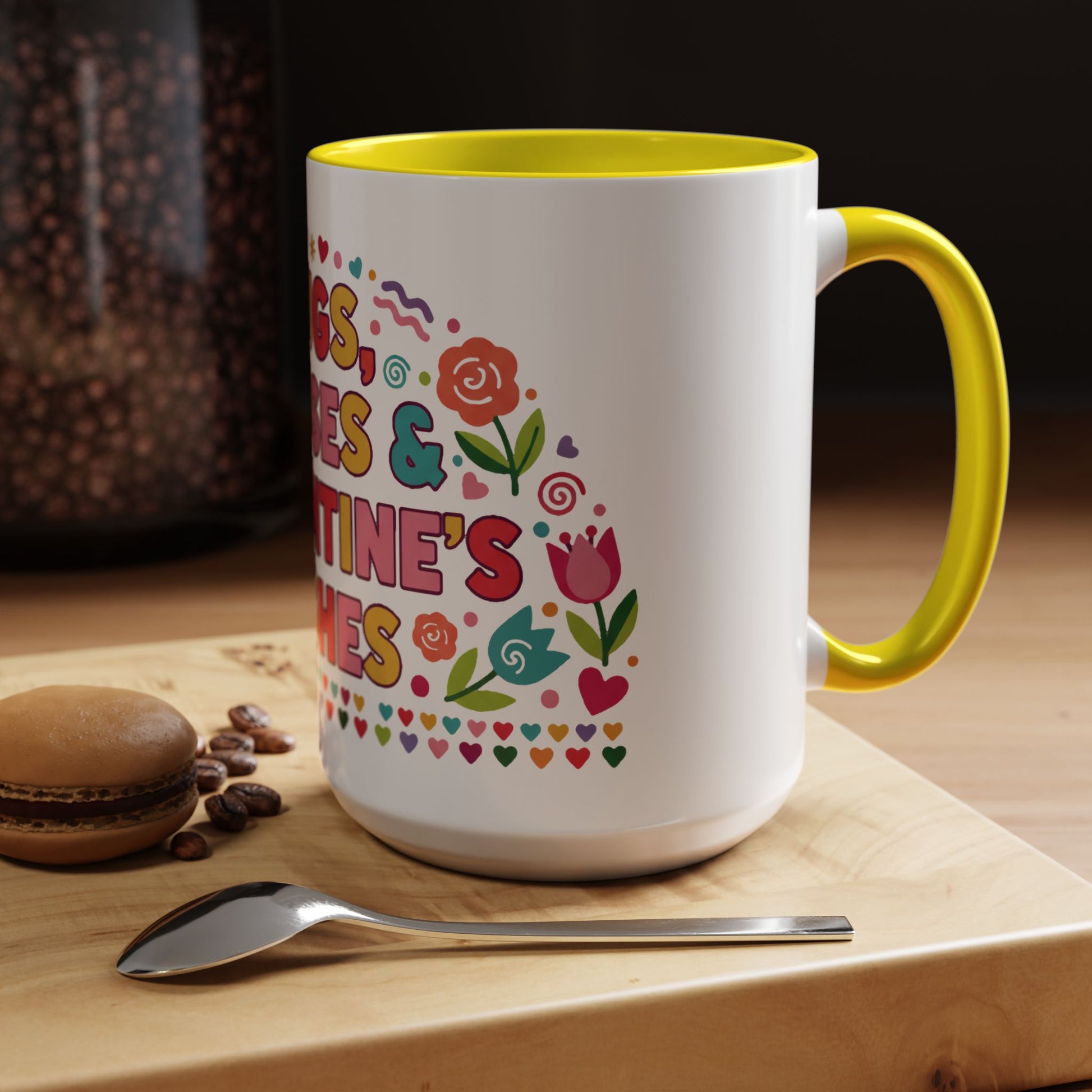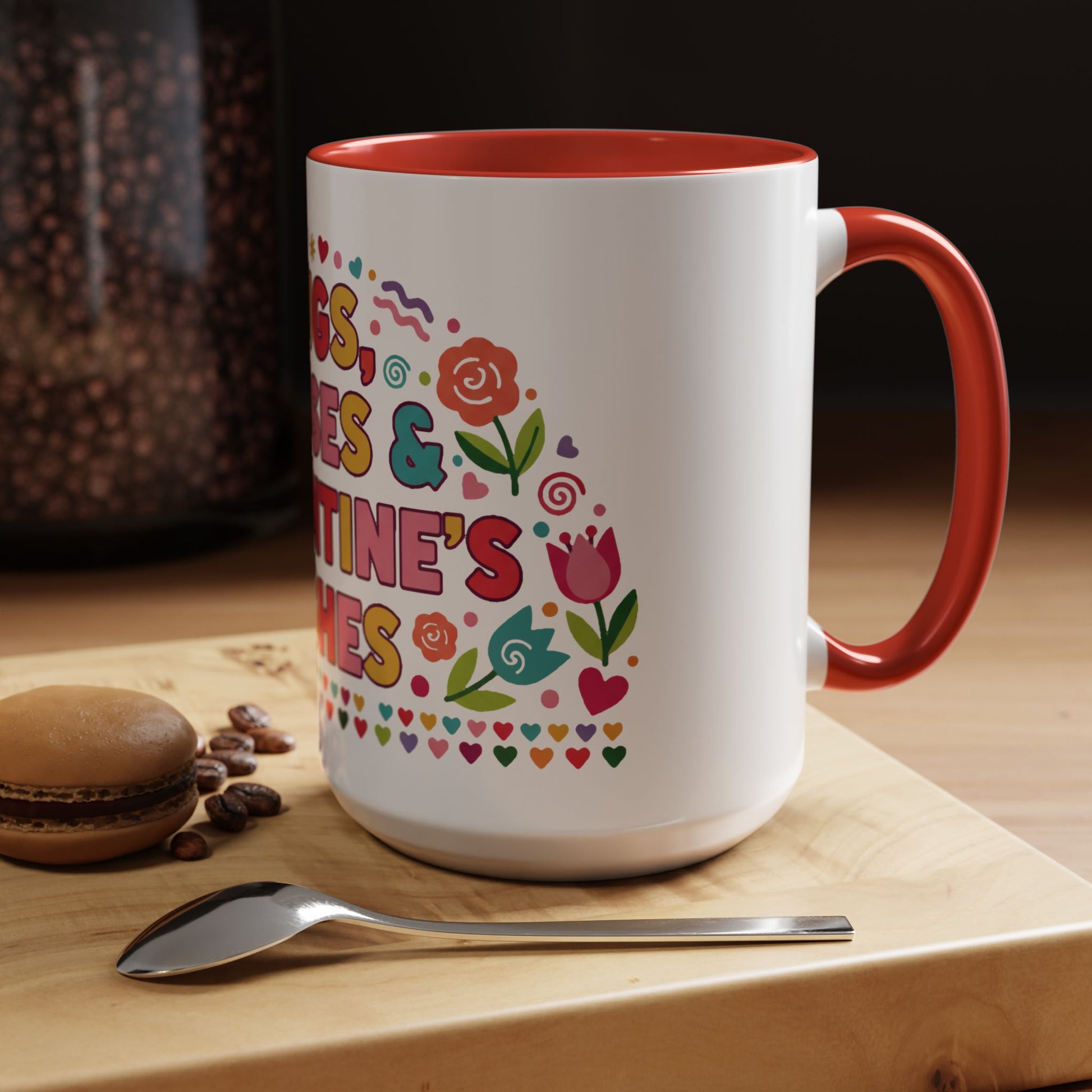 Warm, playful, and full of heart—this ceramic mug brings bright, hand-drawn Valentine energy to every morning sip. Cheerful lettering and whimsical floral accents wrap the mug in a burst of color, while the contrasting interior and C-handle add a touch of vintage diner charm. It feels like a small, everyday celebration: a quick smile with your coffee, a cozy pause during a workday, or a sweet accent on a romantic breakfast tray. Lightweight enough for daily use, yet bold enough to stand out on a shelf or in a photo, it slips effortlessly into moments shared with someone you love or is kept as a personal reminder to slow down and enjoy the little things.