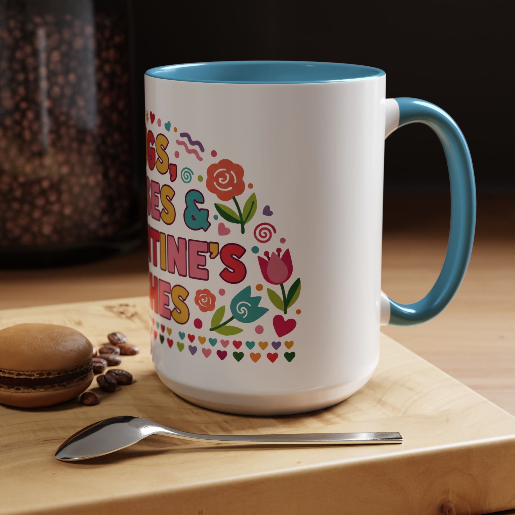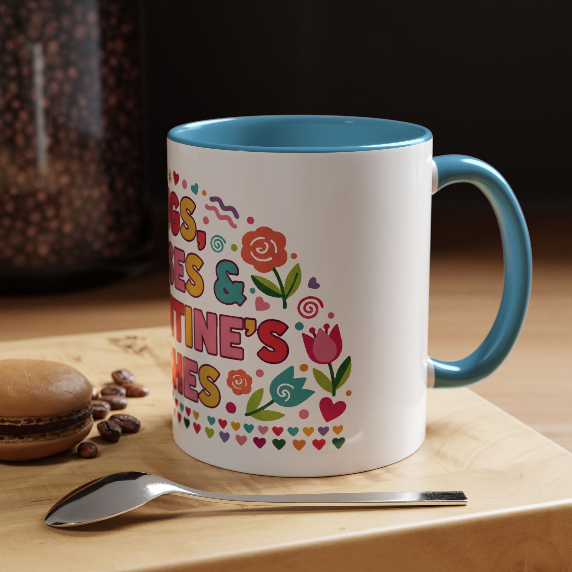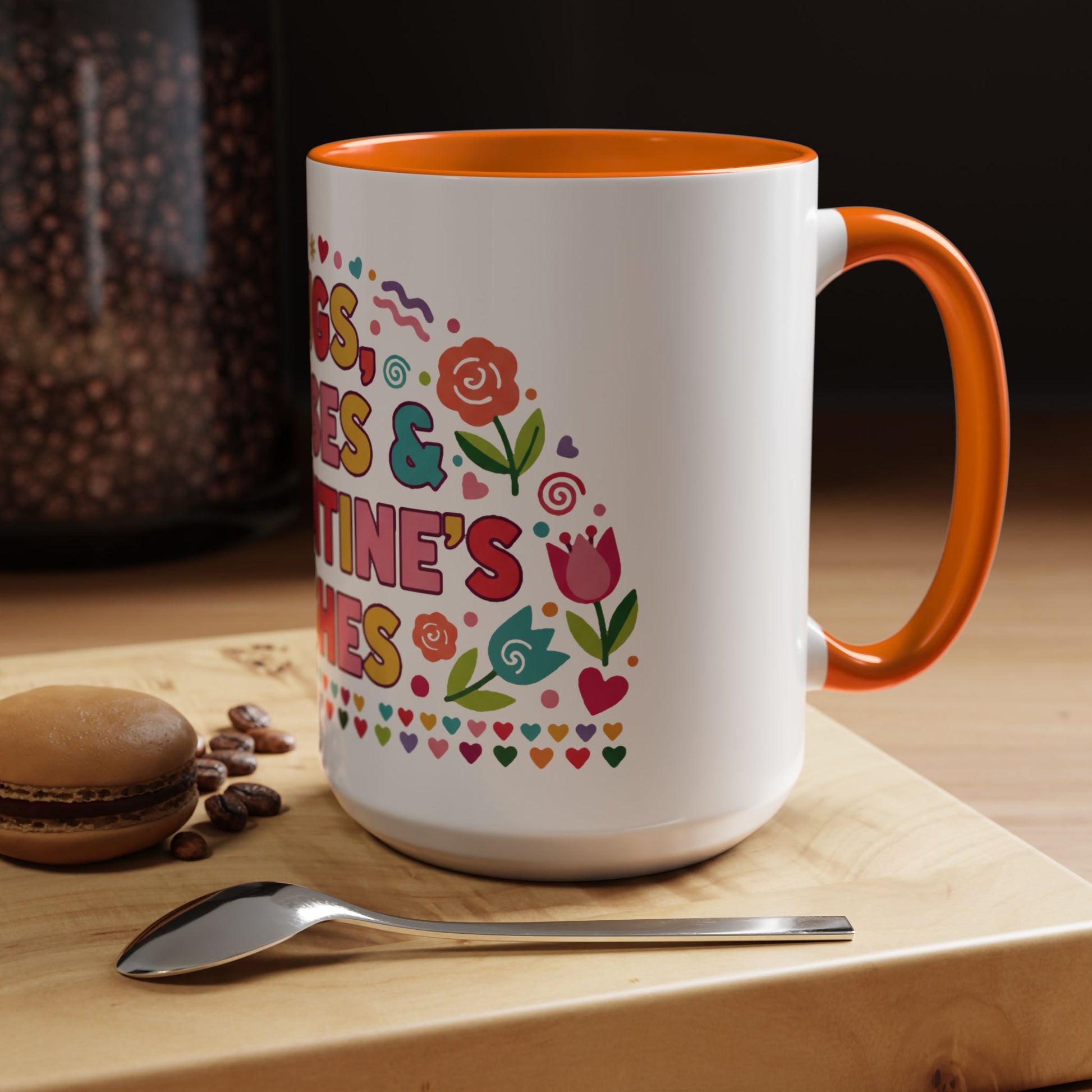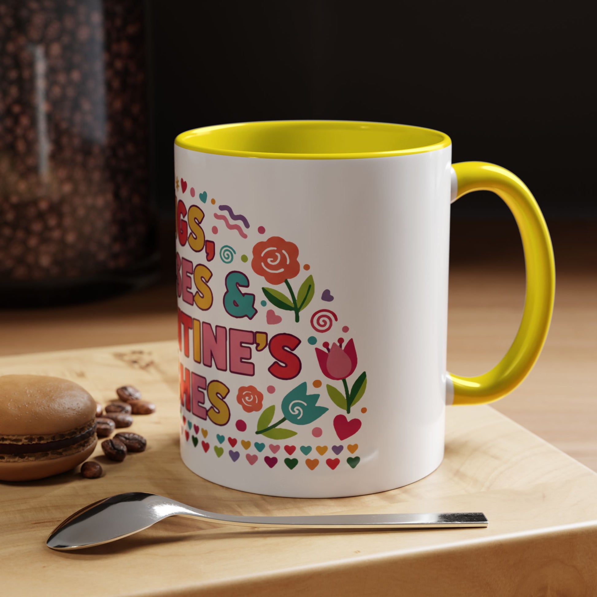 Warm, playful, and full of heart—this ceramic mug brings bright, hand-drawn Valentine energy to every morning sip. Cheerful lettering and whimsical floral accents wrap the mug in a burst of color, while the contrasting interior and C-handle add a touch of vintage diner charm. It feels like a small, everyday celebration: a quick smile with your coffee, a cozy pause during a workday, or a sweet accent on a romantic breakfast tray. Lightweight enough for daily use, yet bold enough to stand out on a shelf or in a photo, it slips effortlessly into moments shared with someone you love or is kept as a personal reminder to slow down and enjoy the little things.