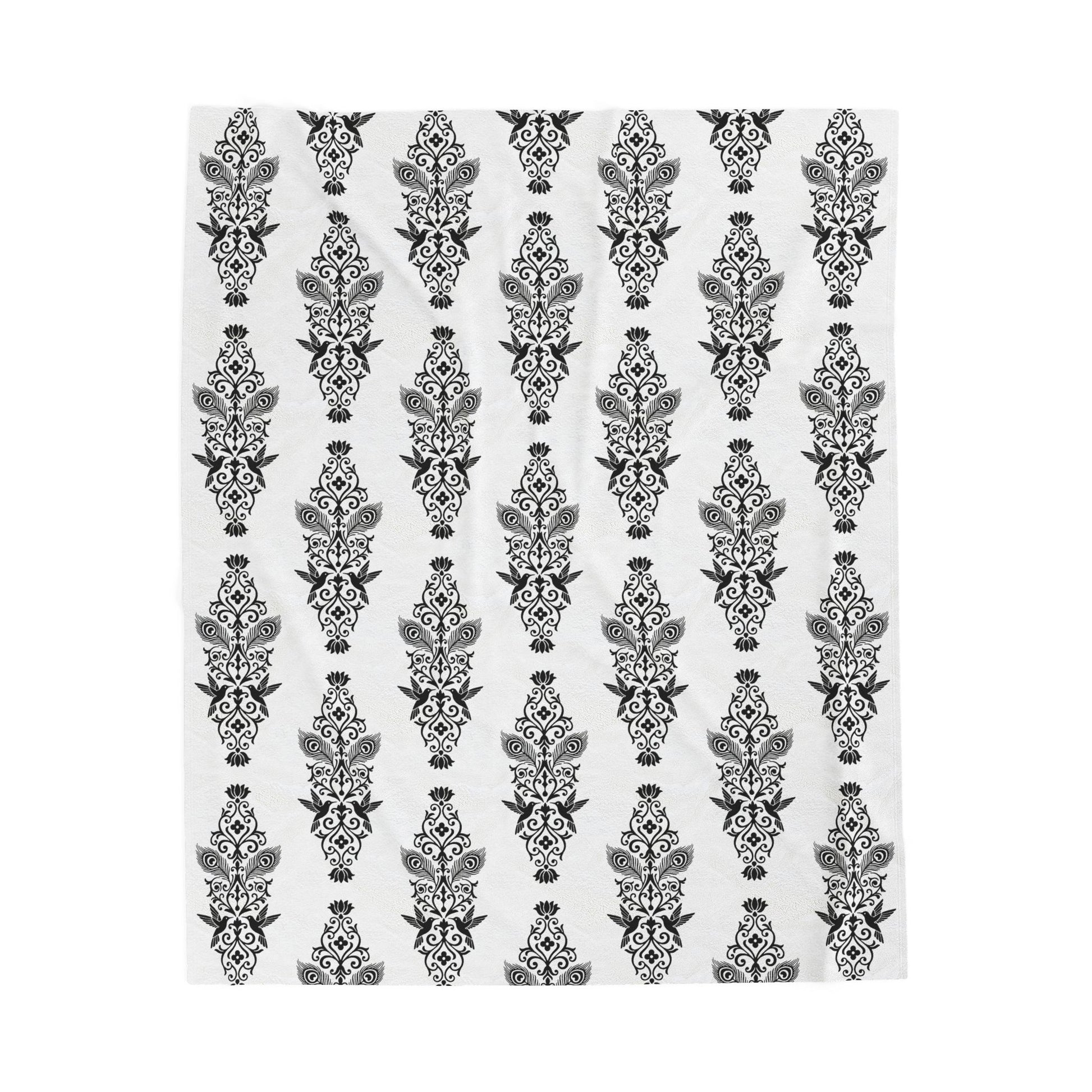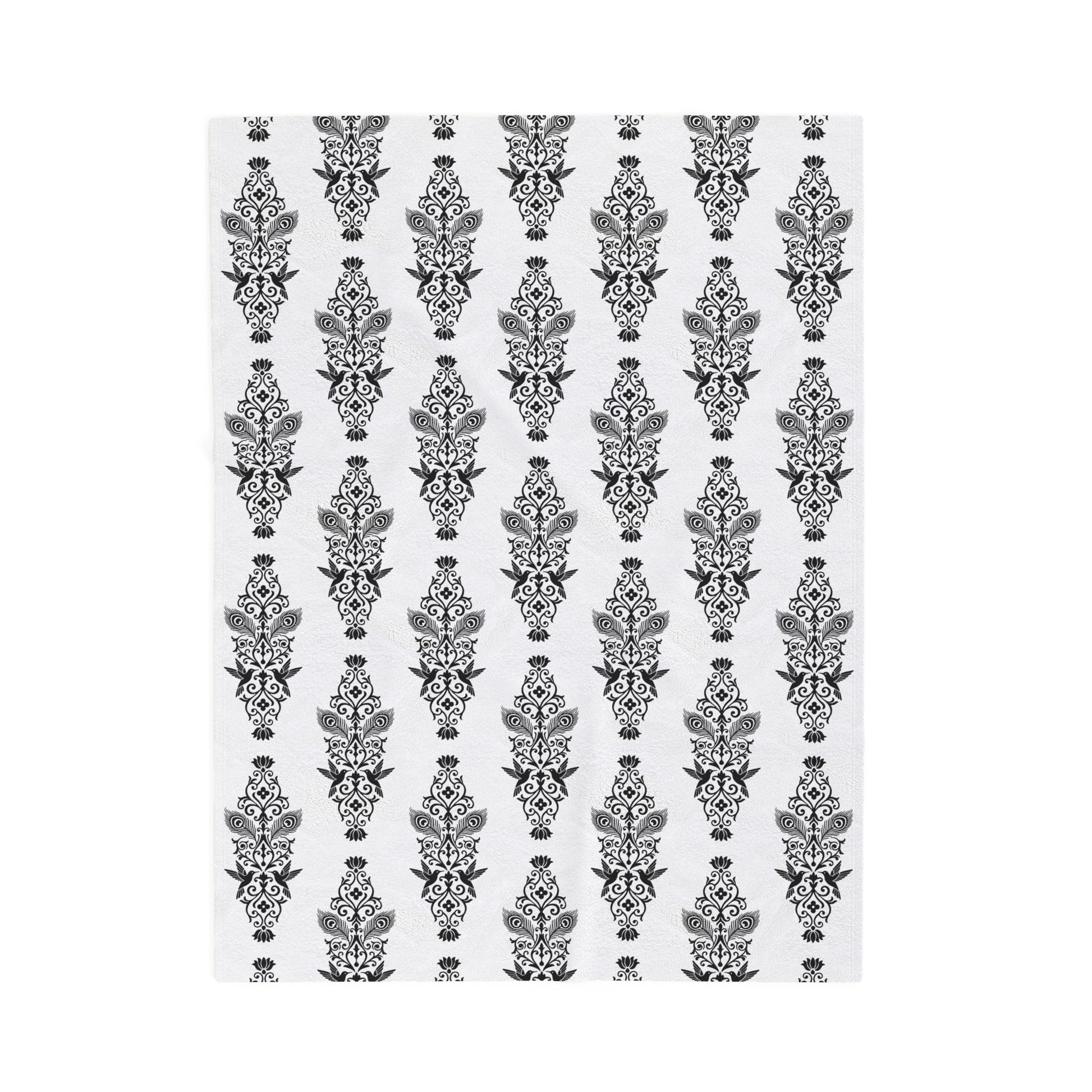 A velvety, patterned throw that brings quiet elegance to evenings at home. The plush polyester surface invites you to sink in—warmth without weight and a soft, slightly lustrous feel that settles like a gentle hug. The vertical damask pattern in monochrome gives a refined vintage touch that works equally well over a sofa arm, curled around shoulders during a reading session, or layered across a bed for a minimalist yet classic look. Durable double-stitched edges hold up to regular use, and the vivid one-sided print keeps the motif crisp and detailed. For anyone who values cozy comfort with a touch of old-world style, this blanket adds calm, texture, and a little ceremony to everyday rituals and small celebrations at home.