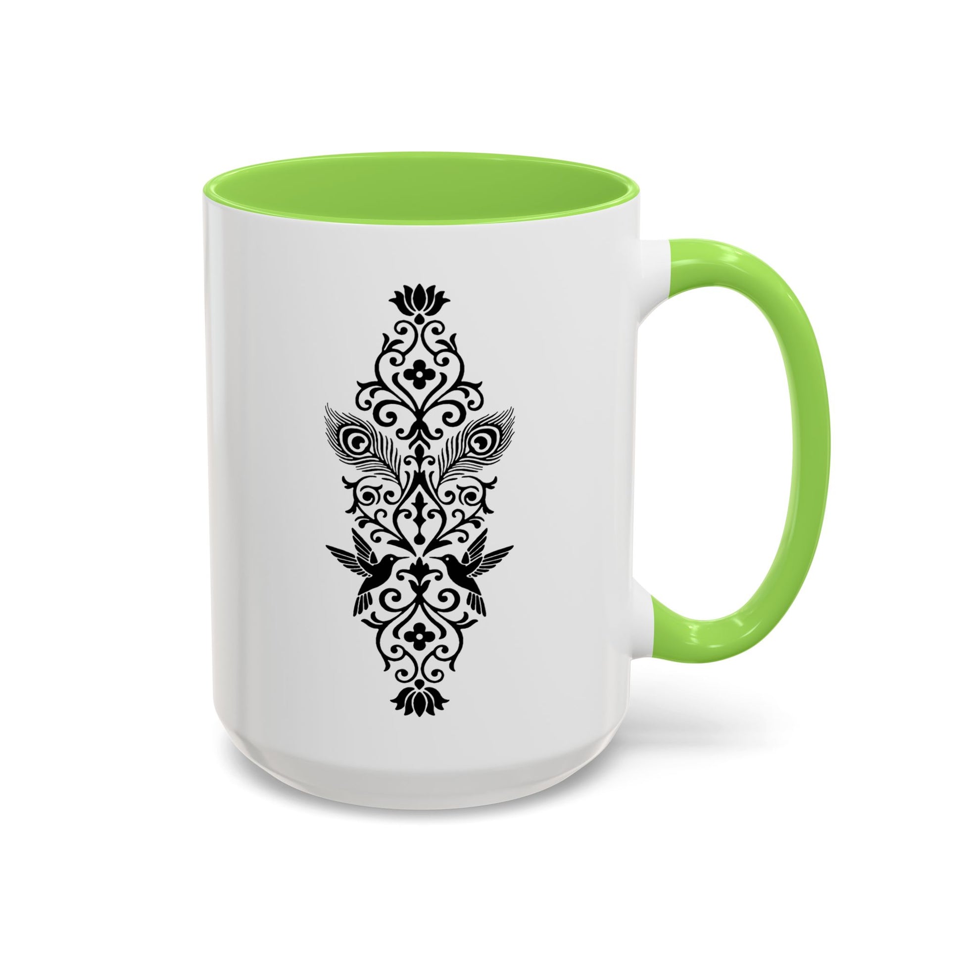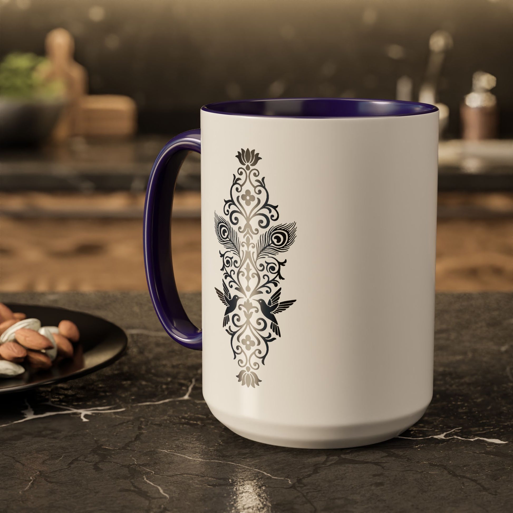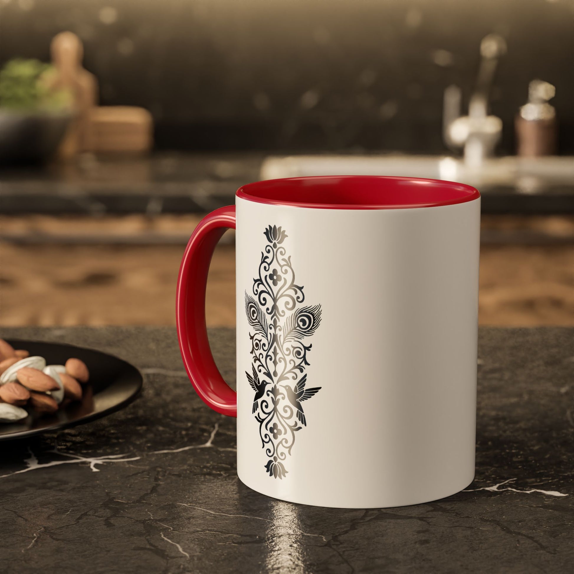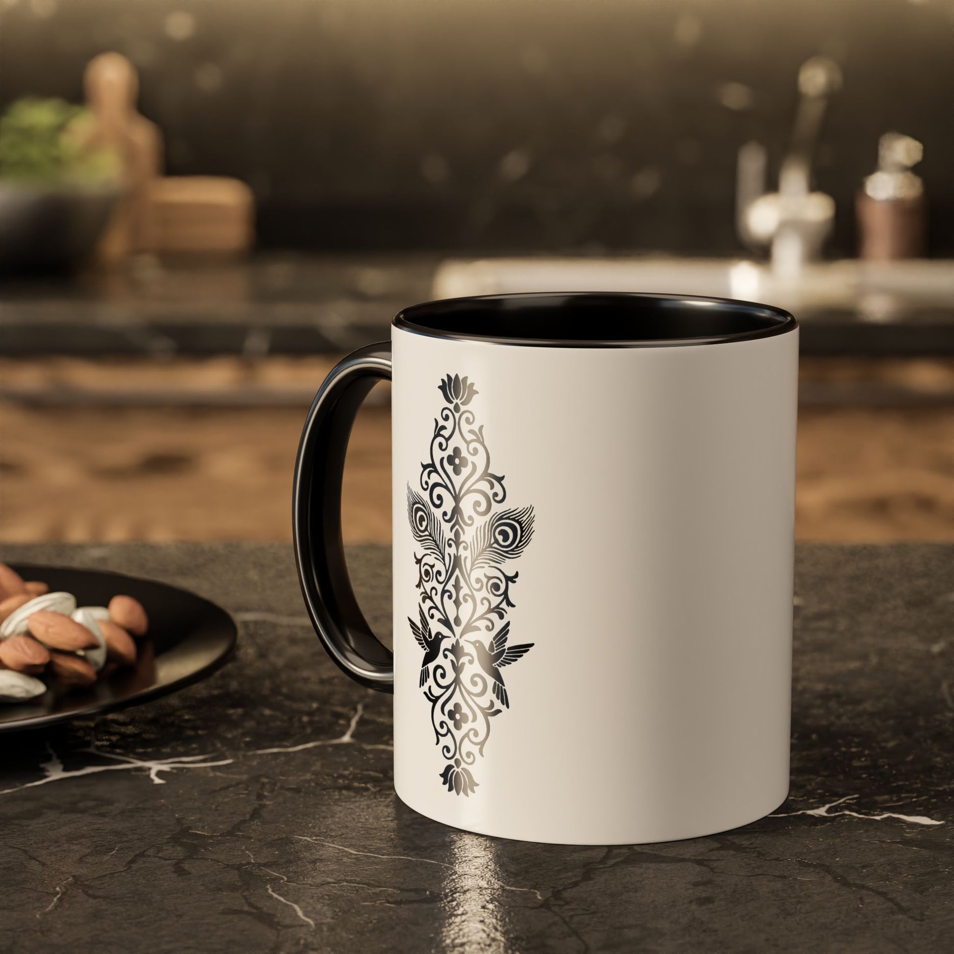 Bright, glossy ceramic mug with a bold accent color inside and on the handle. The crisp, high-resolution print sits on a durable ORCA-coated surface, so black-and-white motifs and fine details stay striking wash after wash. The C-shaped handle feels comfortable in hand, while the 11 oz. or 15 oz. size gives you just the right amount of coffee, tea, or hot chocolate. Use the color options to match your kitchen, desk, or mood and enjoy reliable dishwasher- and microwave-safe performance.