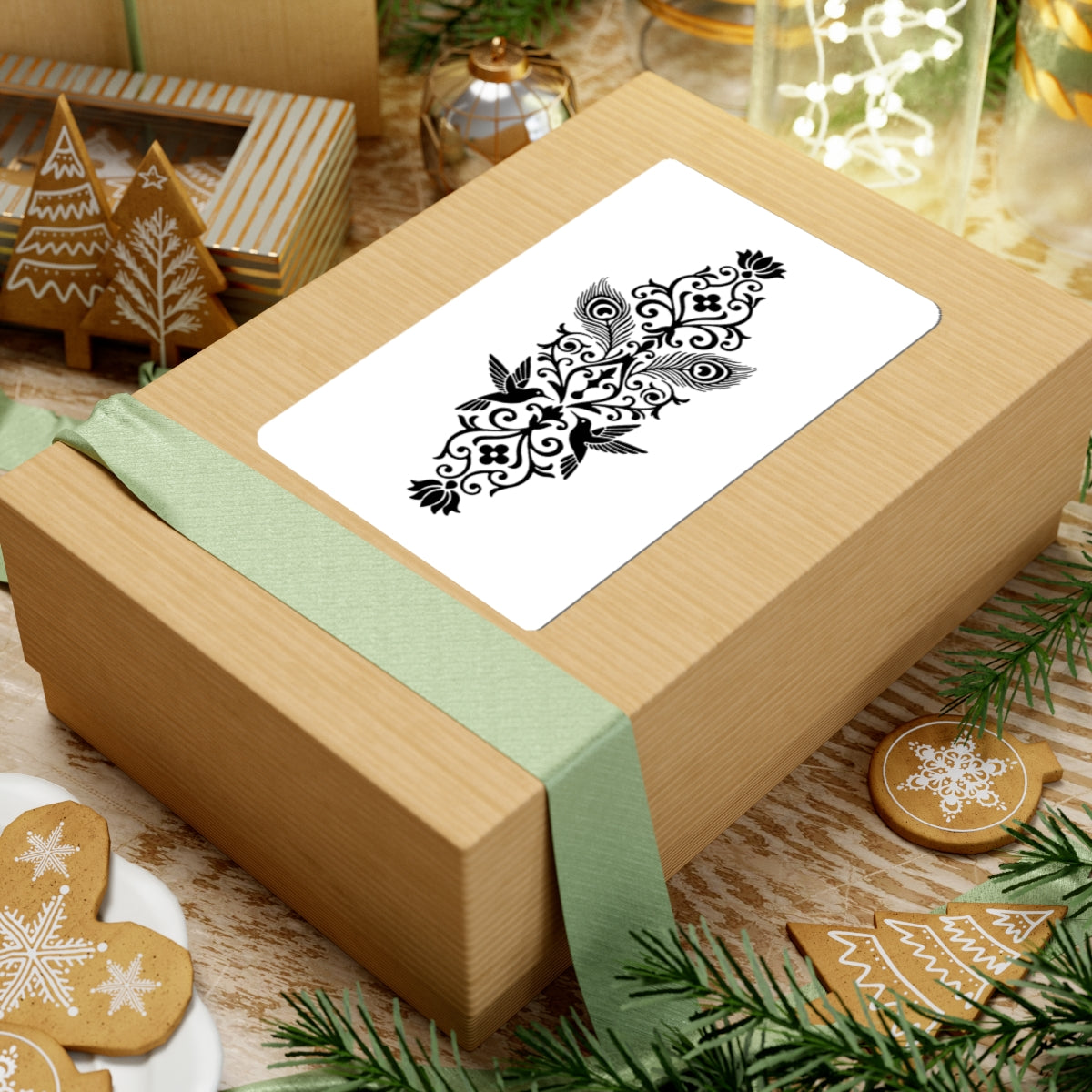 A sleek, monochrome kiss-cut sticker that blends ornate filigree with tiny hummingbirds and peacock-like feather details. The glossy finish makes the black-on-white artwork pop, while the durable vinyl and strong adhesive keep it firmly in place on laptops, journals, water-resistant cases, and more. It slips on smoothly without bubbles and adds an elegant, slightly vintage accent to everyday gear—a subtle statement for those who favor delicate, nature-inspired designs with a modern graphic edge.