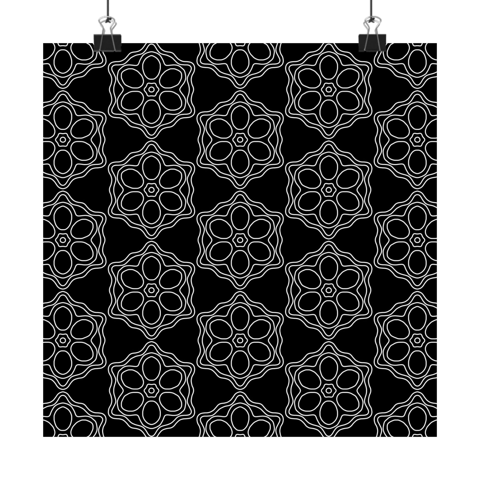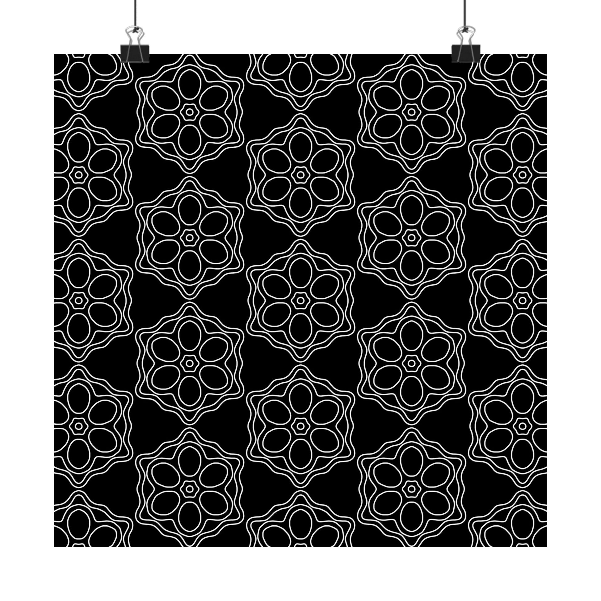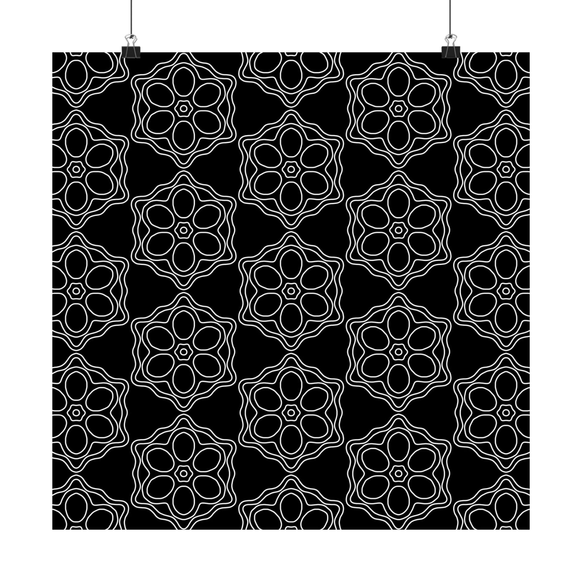 A matte vertical poster that brings calm geometry and subtle contrast to any indoor space. The repeating circular-floral motif in soft gray lines floats over a deep black field, creating a rhythm that feels both modern and meditative. Printed on museum-grade archival paper with vibrant giclée inks, the design keeps its clarity and tone over time without glare thanks to the matte finish. Hang it in a study, gallery wall, or minimalist living room to introduce quiet structure and a refined, slightly moody atmosphere.