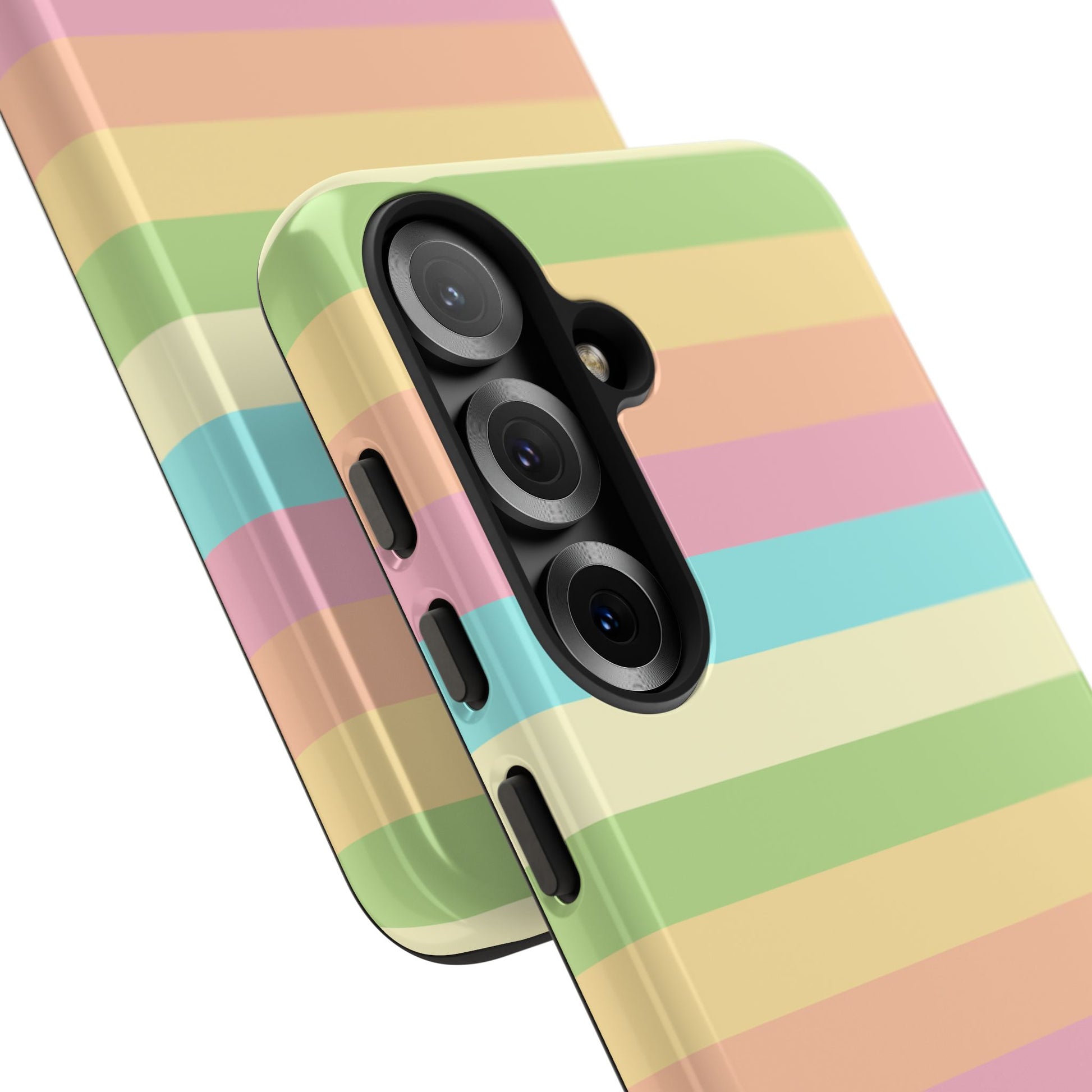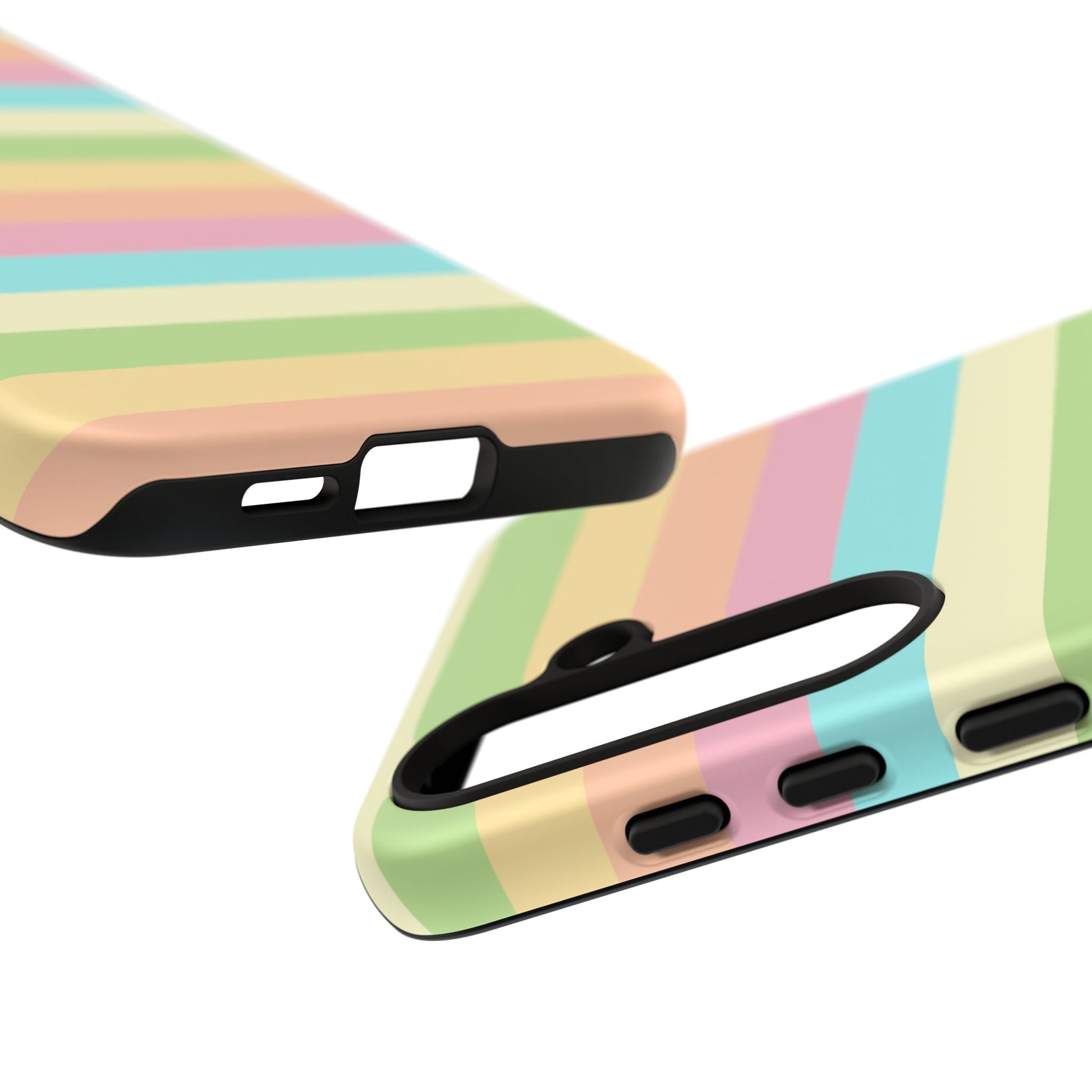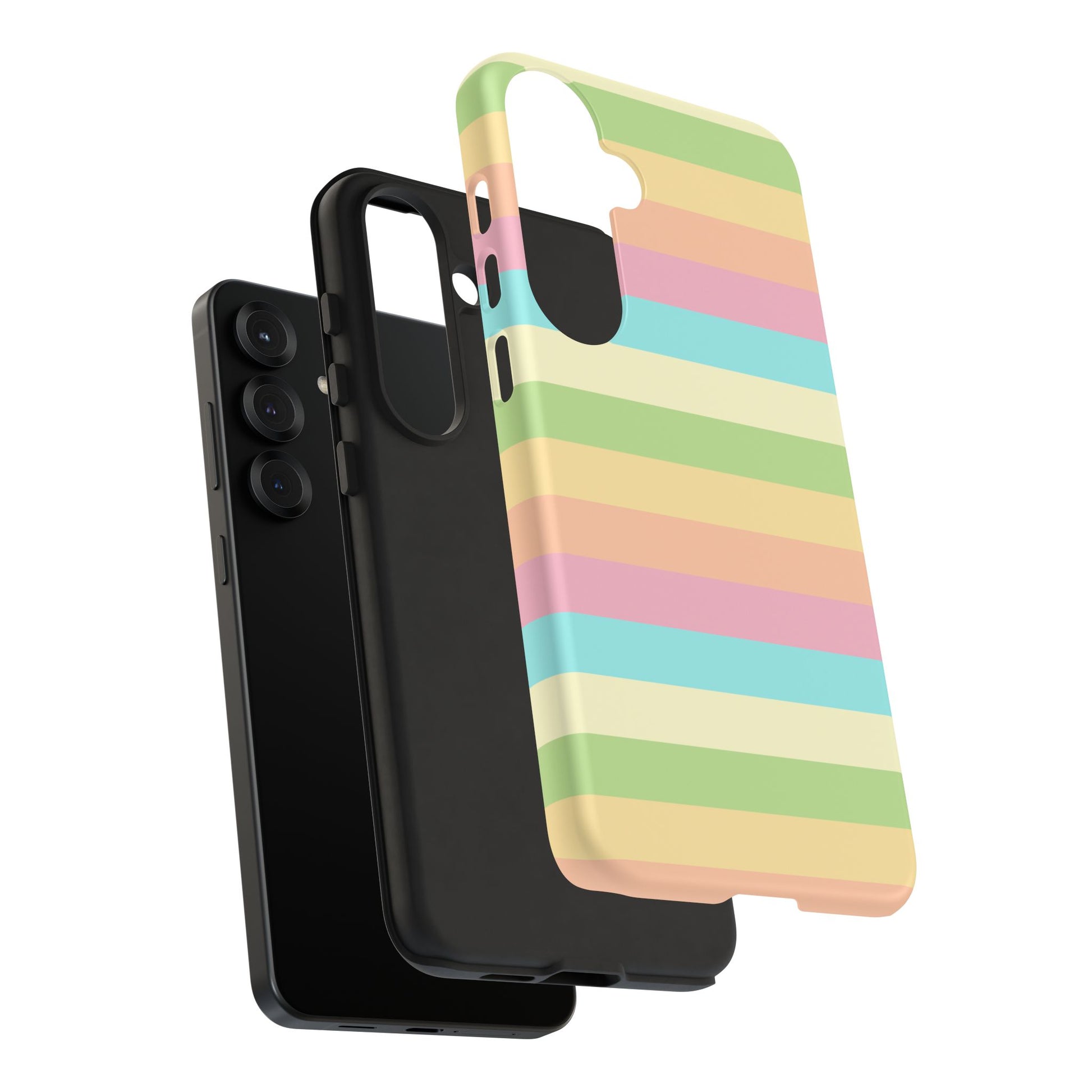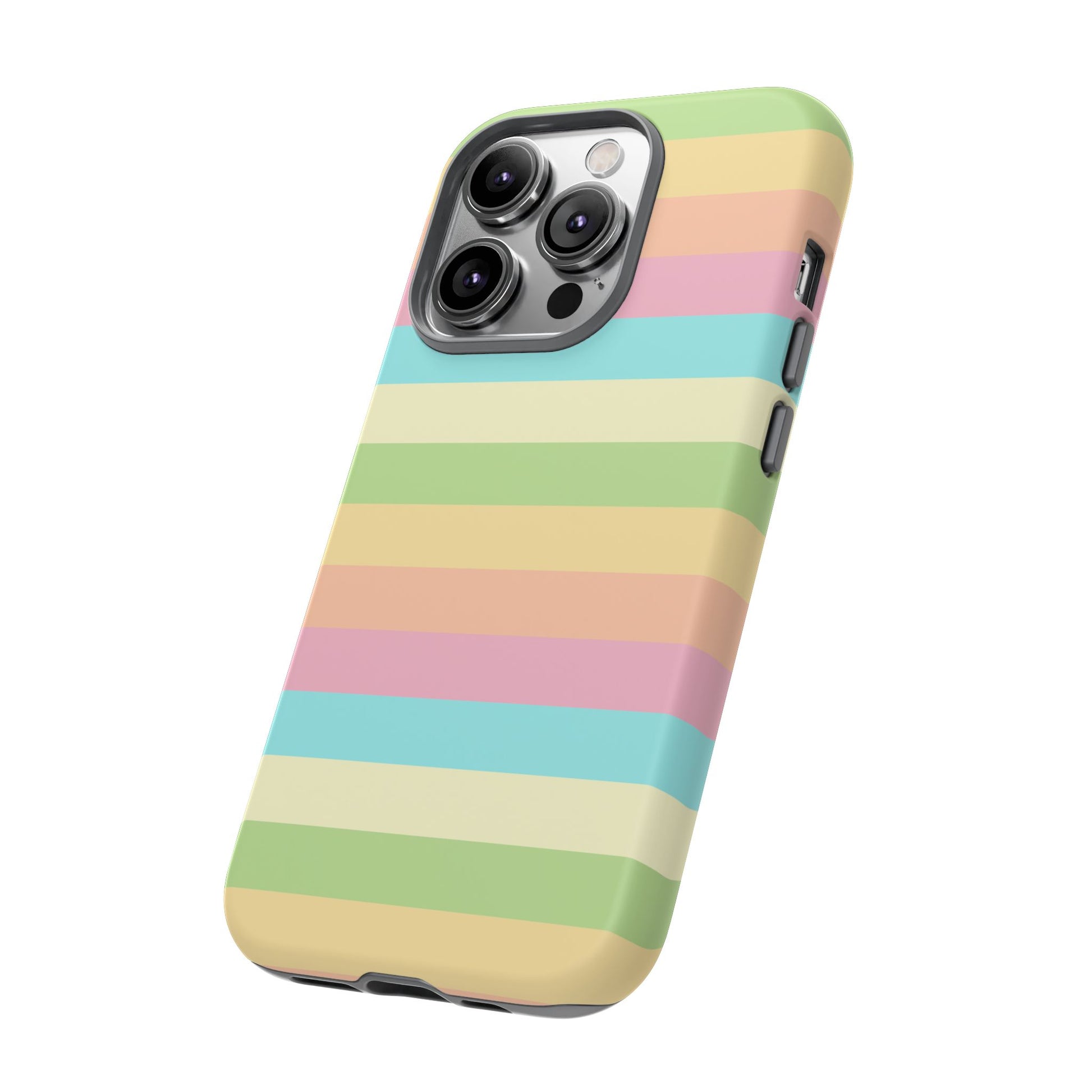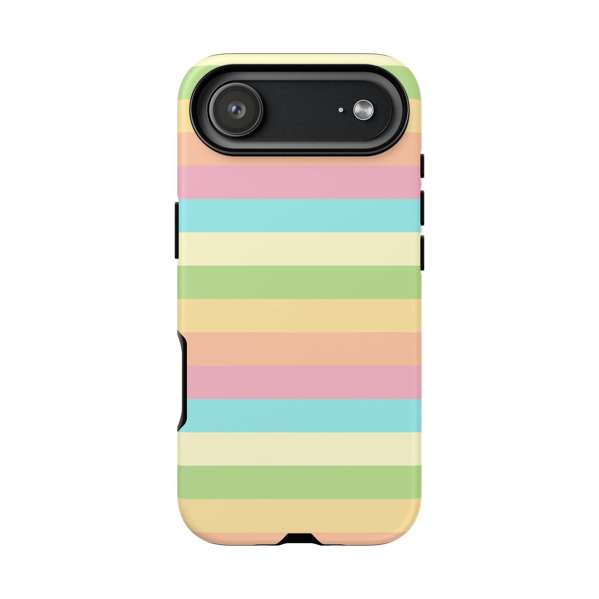 A slim, dual-layer protective phone case that brings a soft, sunlit palette to your daily carry. The glossy/matte shell showcases full-coverage, high-density print with smooth pastel stripes that wrap the edges. Inside, a premium TPU silicone liner cushions shocks and absorbs impact while clear port openings and wireless charging compatibility keep your routine uninterrupted. Built to stand up to drops and outdoor wear, this case keeps its color longer thanks to UV-resistant inks and certified material safety standards. Light, cheerful, and built for life on the go—this case slips easily into your bag or pocket and adds a gentle pop of color to every moment.