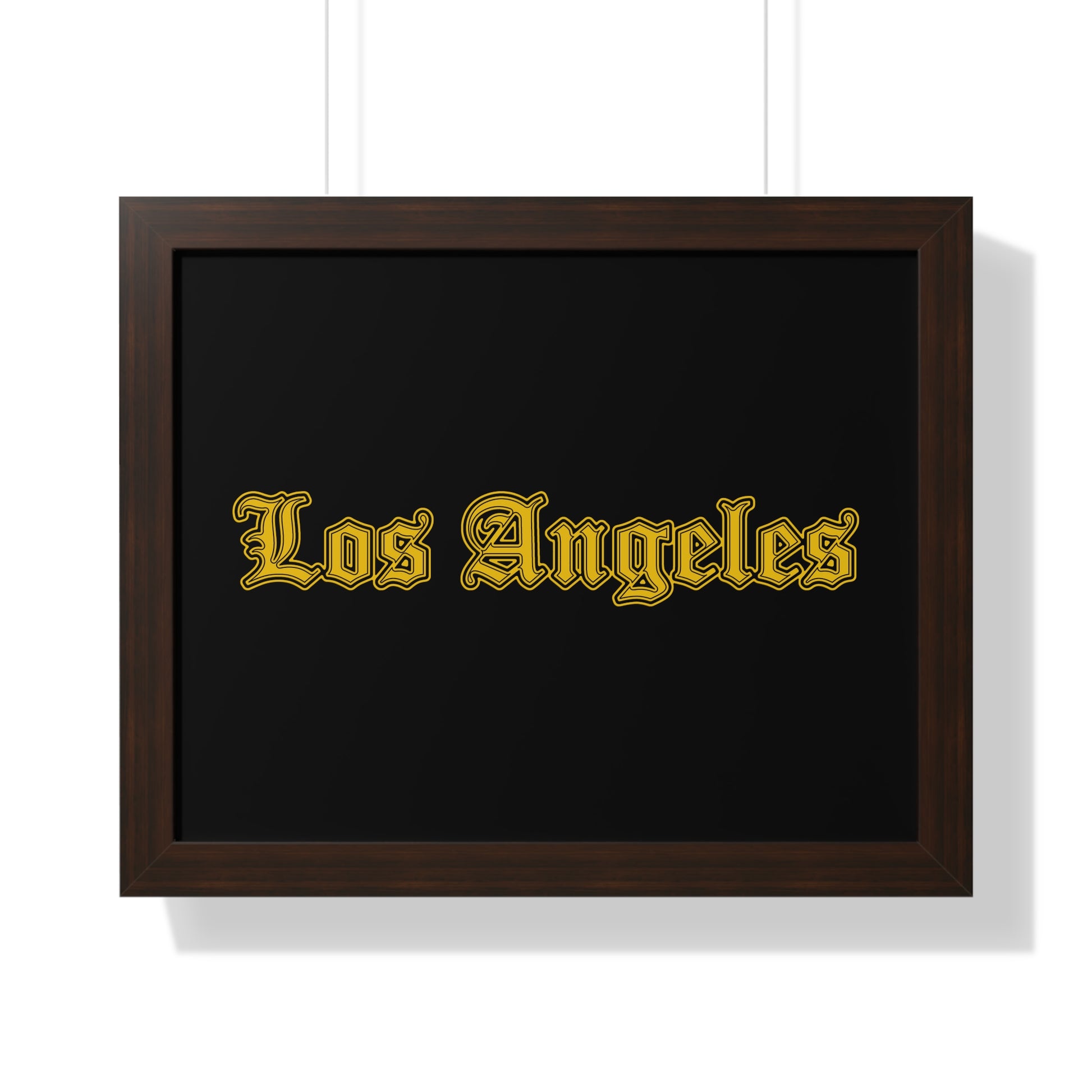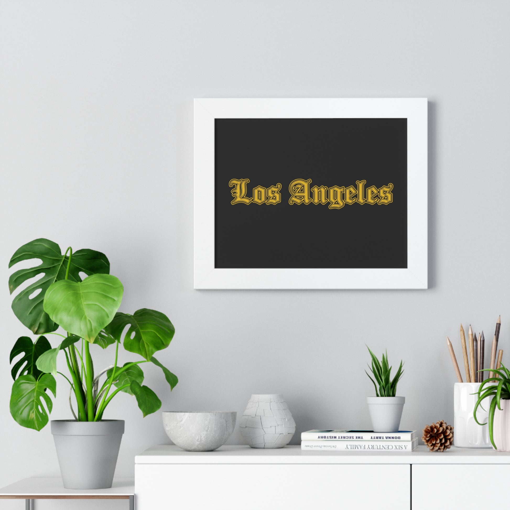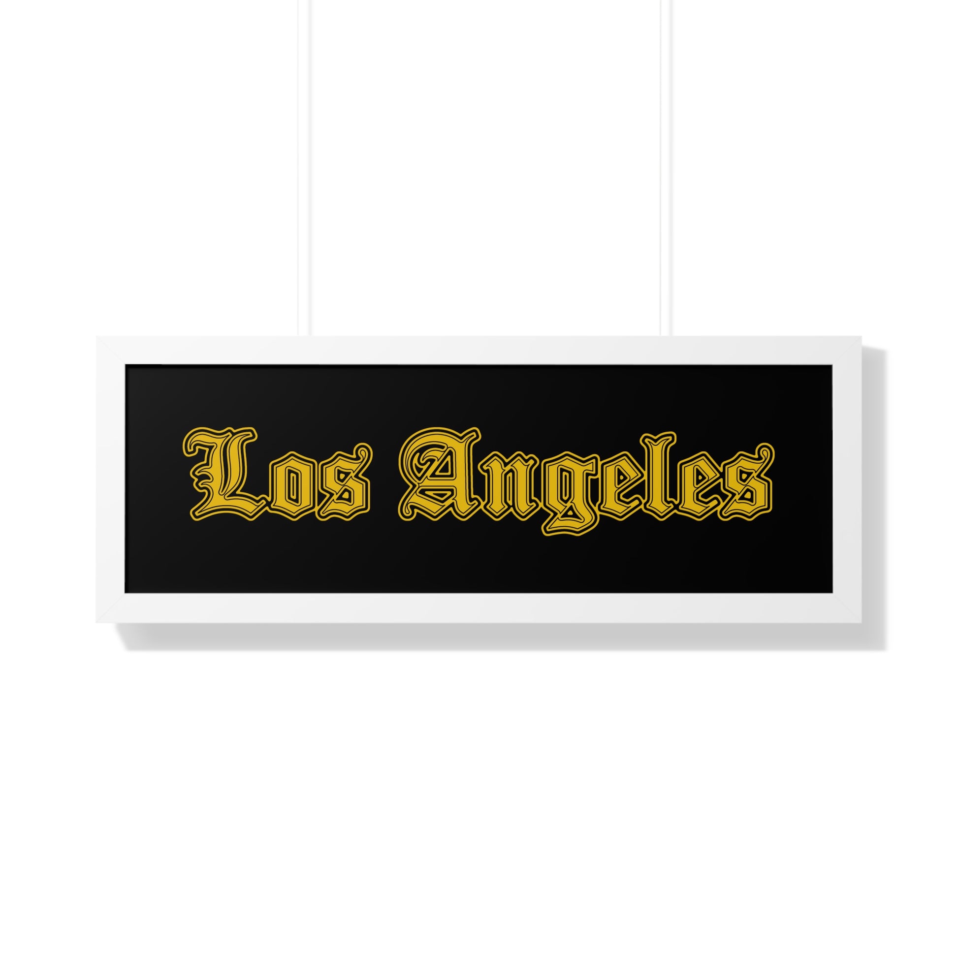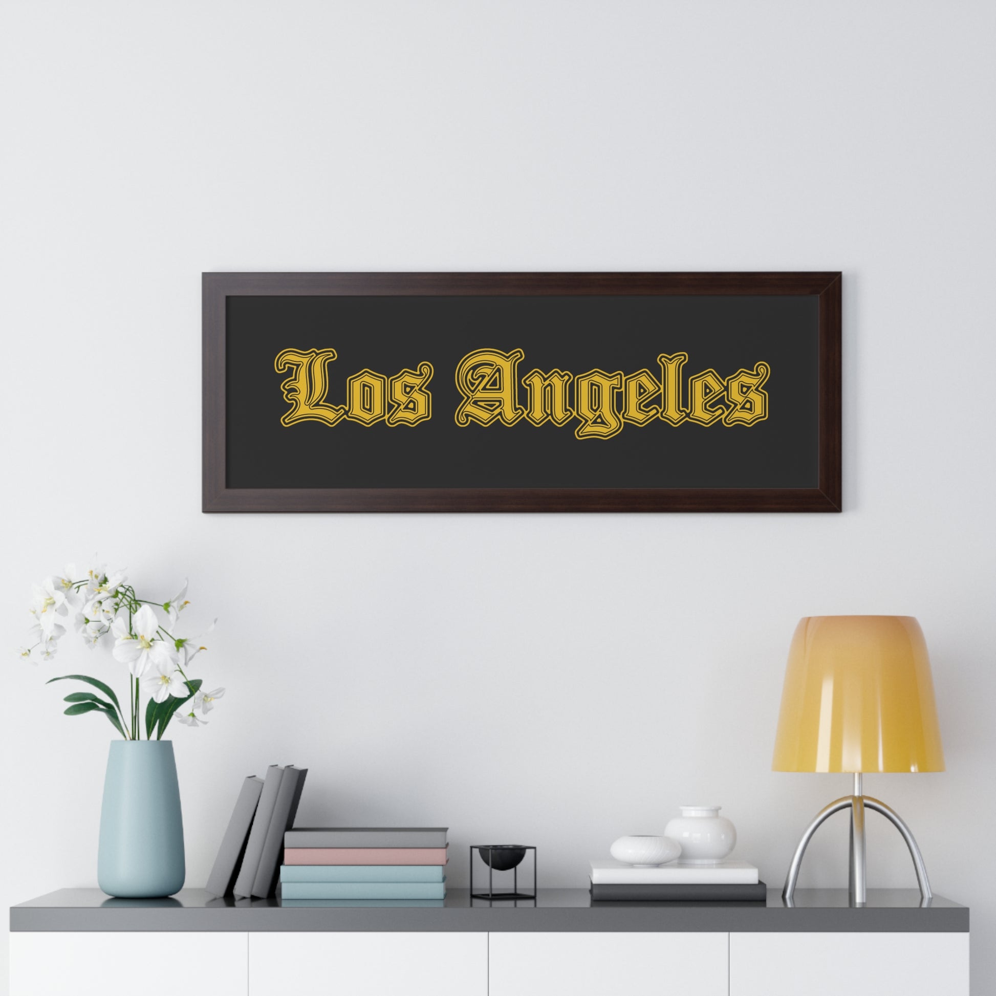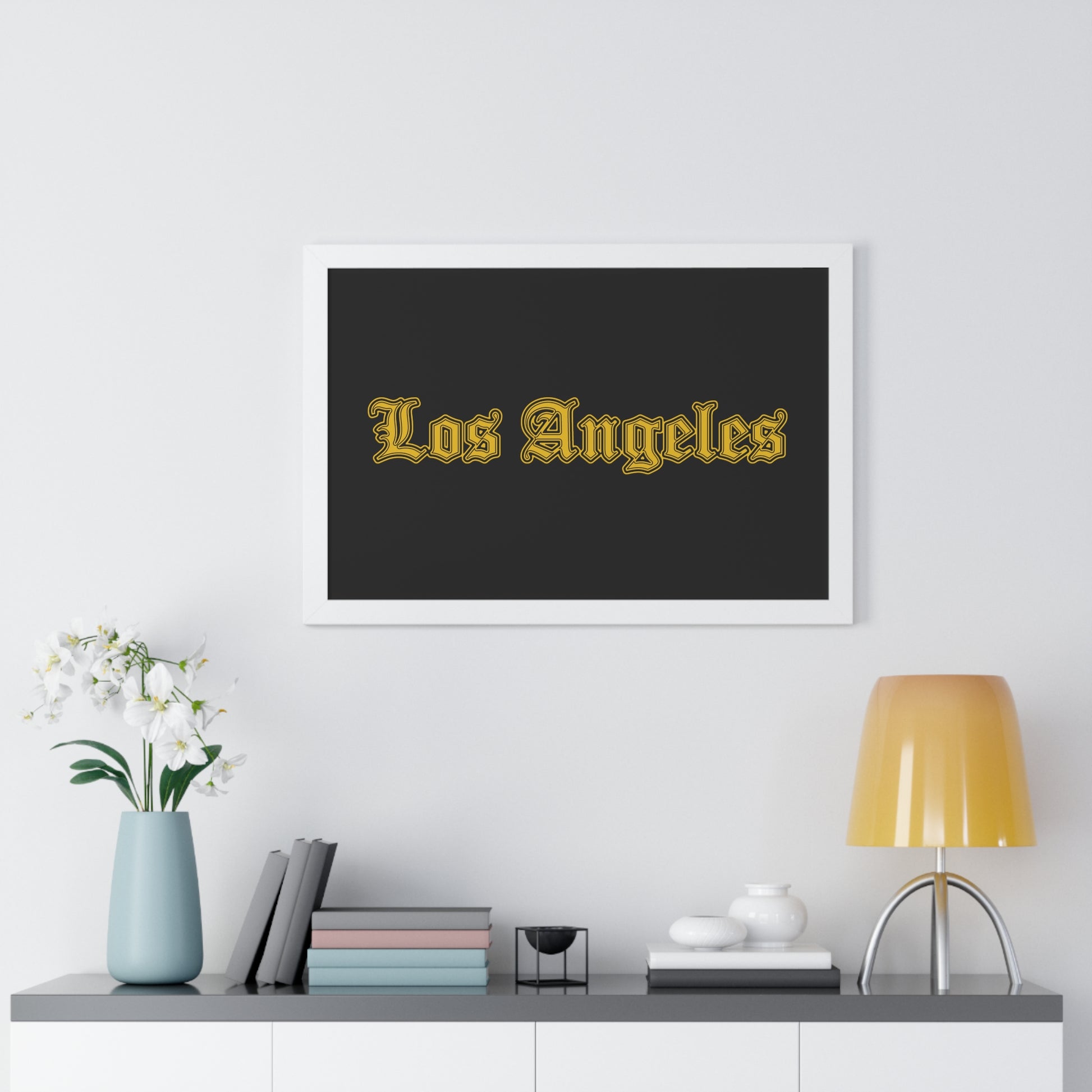 Los Angeles Framed Poster, Urban Wall Art for Home Decor, Cityscape Gift, Interior Design Accent, Modern Typography Decor - Golden Edition
