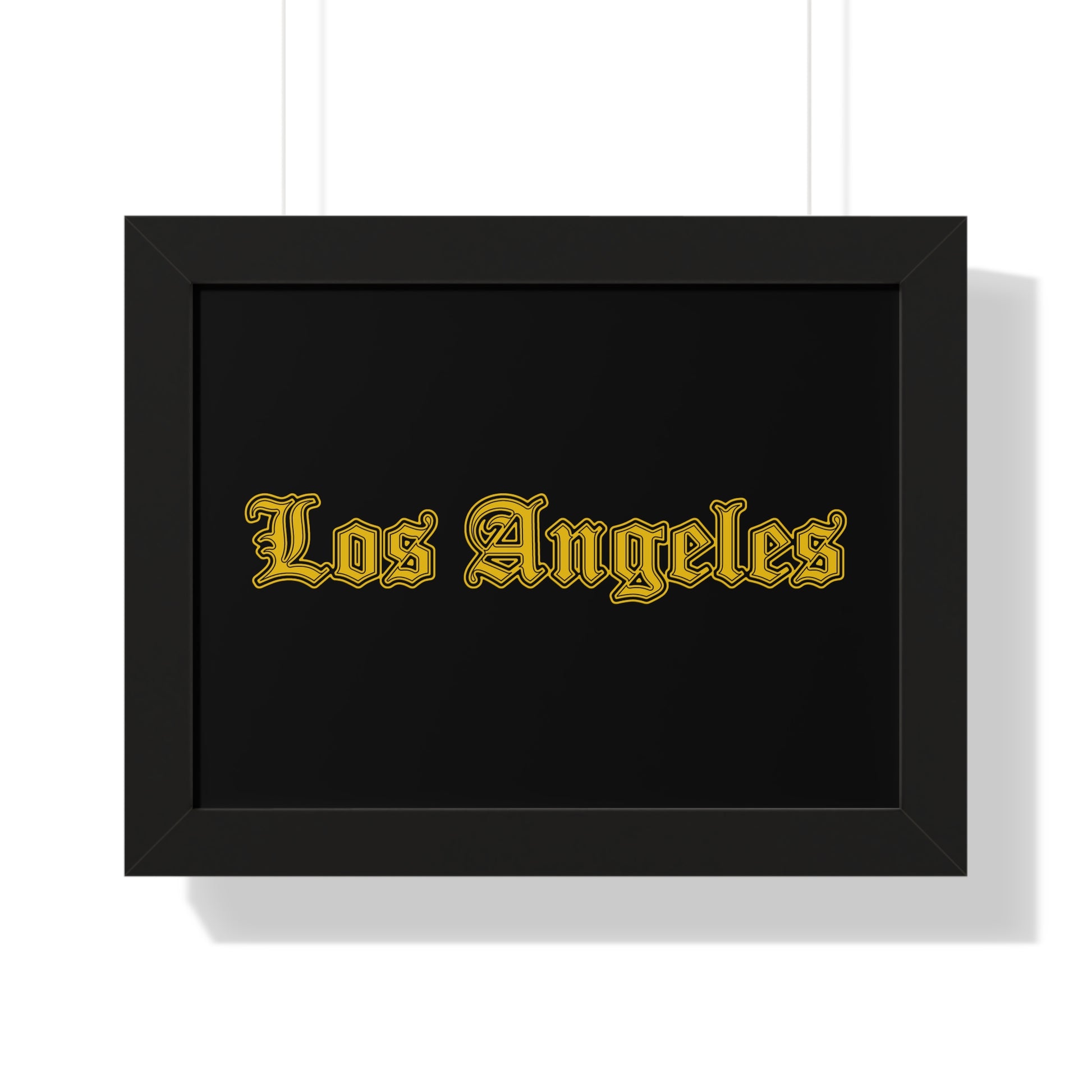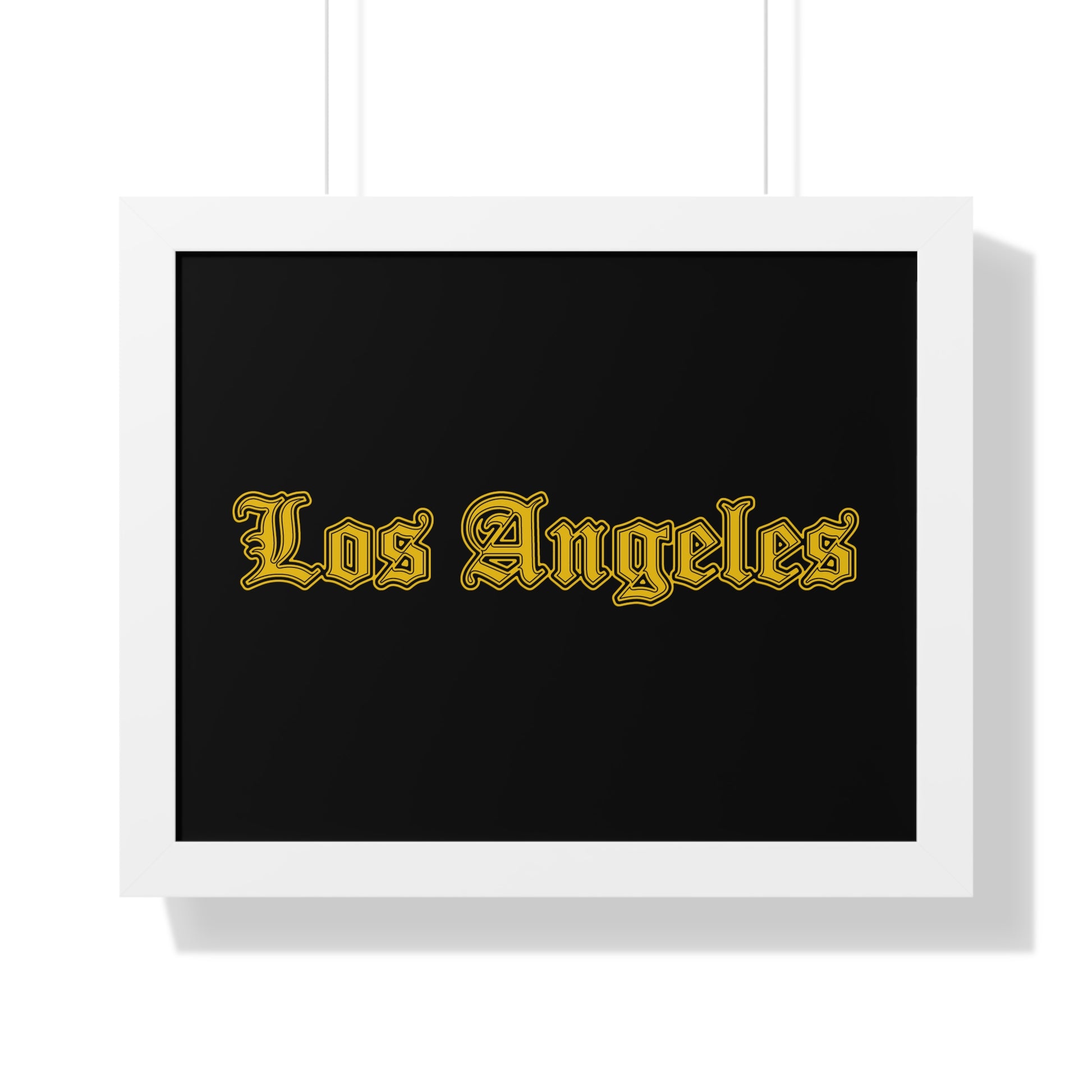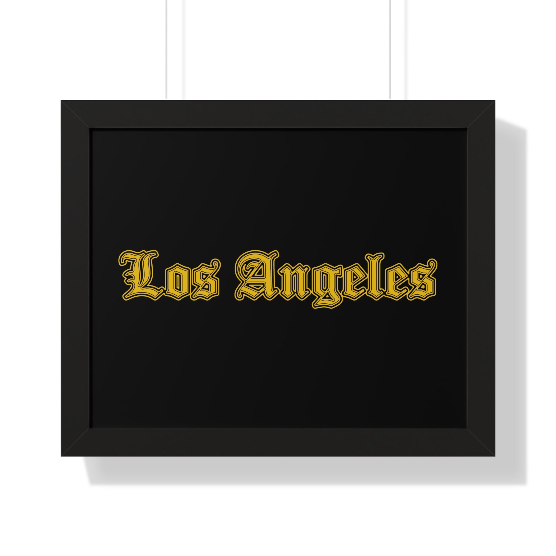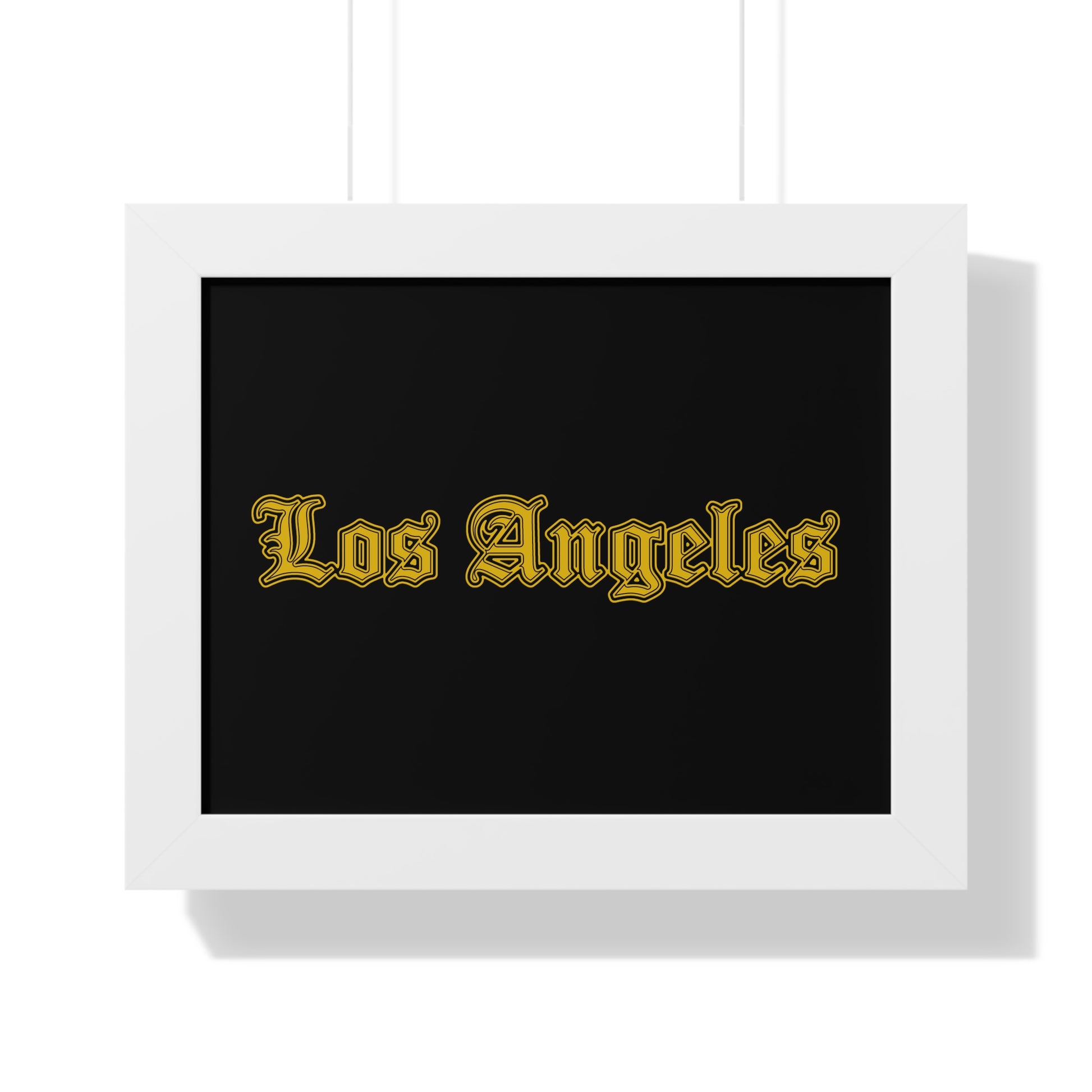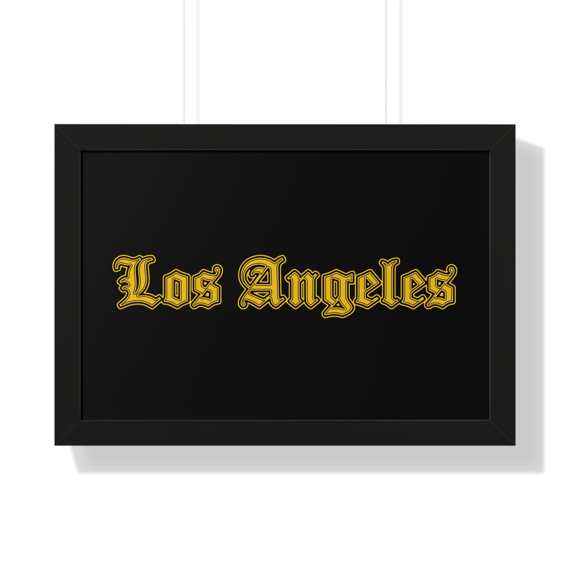 Los Angeles Framed Poster, Urban Wall Art for Home Decor, Cityscape Gift, Interior Design Accent, Modern Typography Decor - Golden Edition