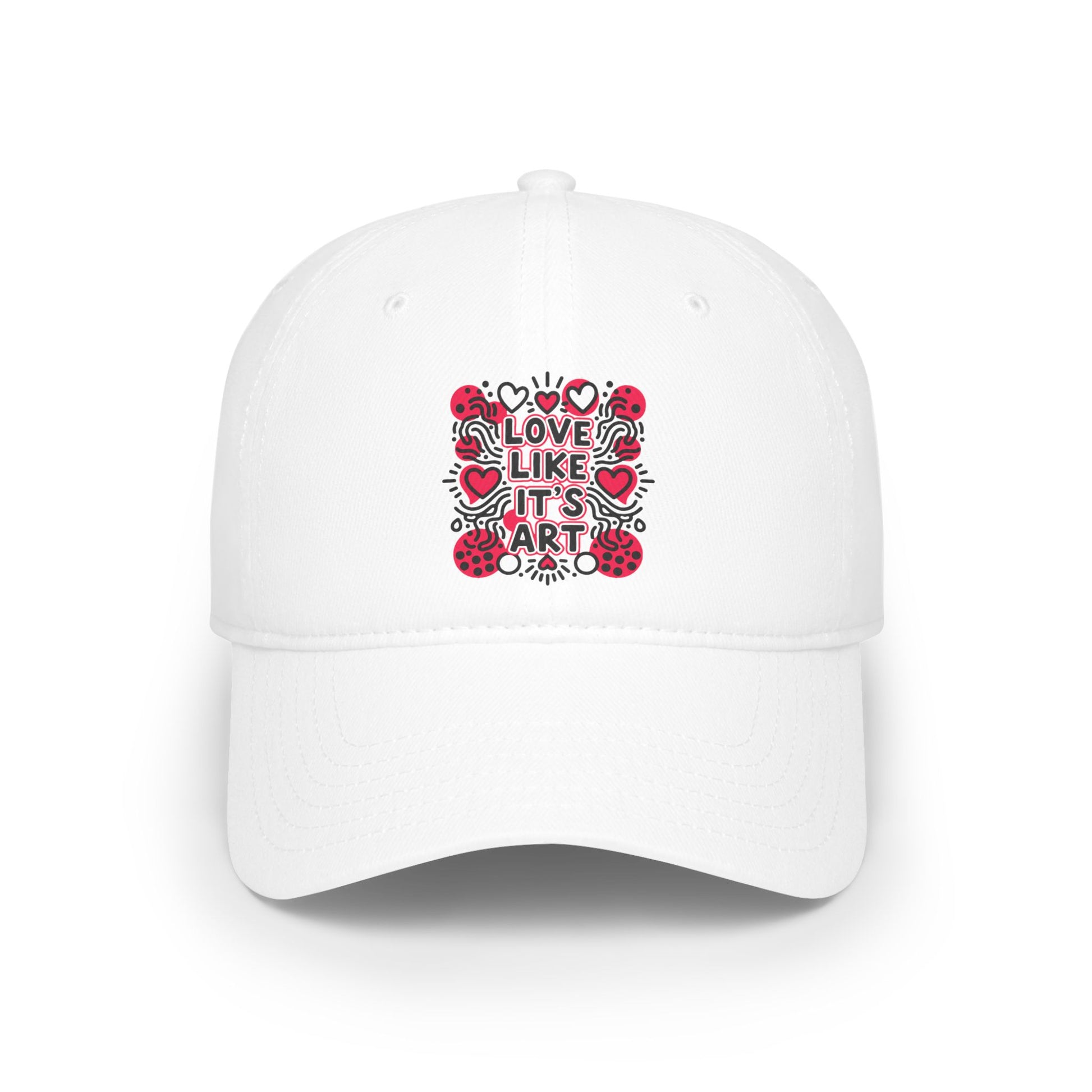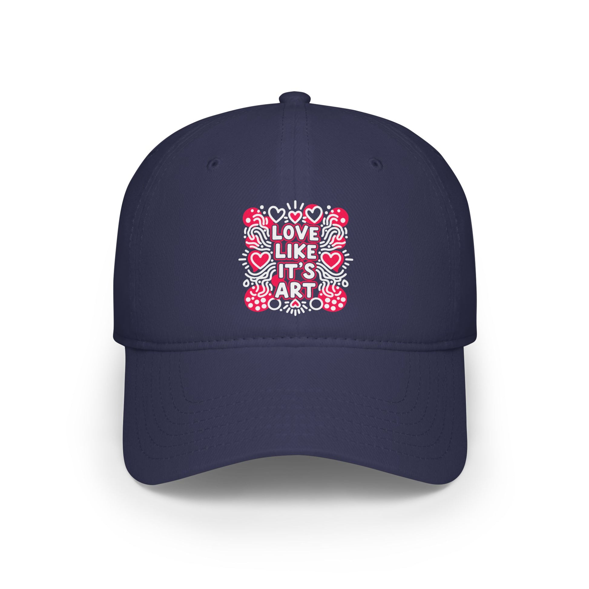 This low-profile baseball cap is the perfect accessory for anyone looking to express their individuality. With its unique design that reads 'Love Like It's Art,' it radiates a sense of creativity and passion, making it a stylish addition to any outfit. Ideal for casual outings, music festivals, or simply running errands, this cap offers versatility and flair. It’s a great gift for art enthusiasts, fashion lovers, or anyone who appreciates a good pun. Perfect for birthdays, art-themed events, or just to brighten someone’s day, this cap effortlessly fits into a vibrant lifestyle. Whether you're dressing up for a gathering or keeping it low-key, this cap enhances your look with a touch of artistic charm.