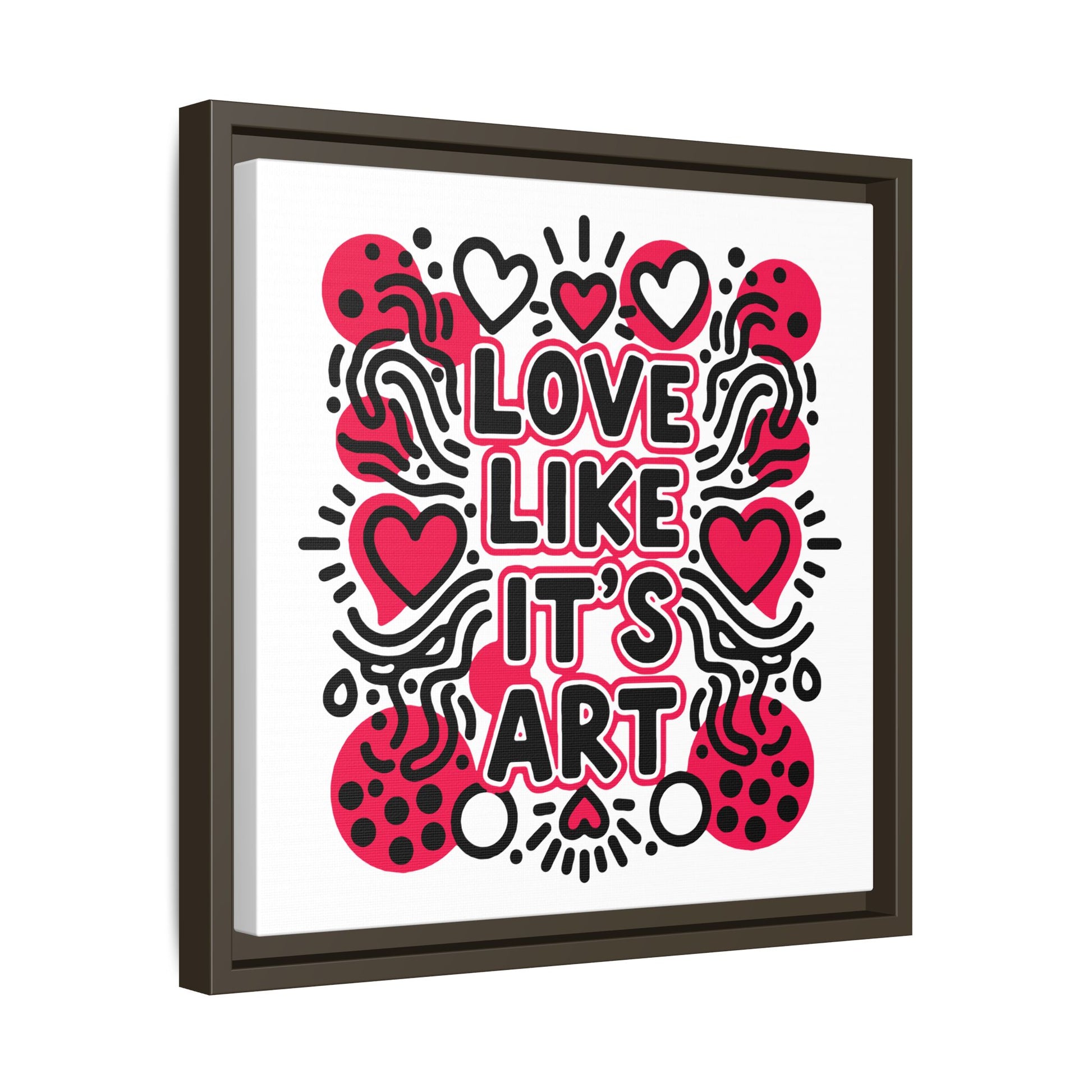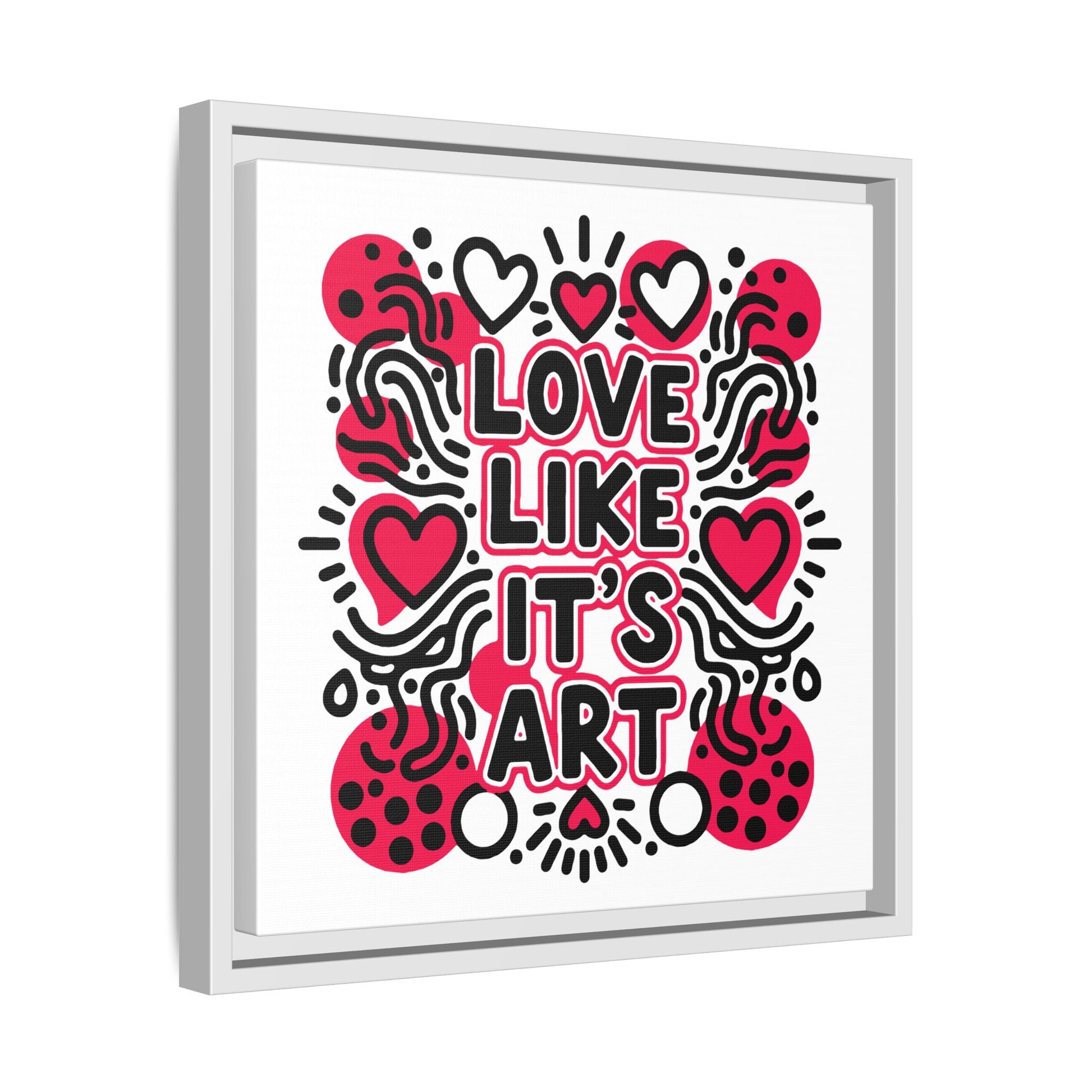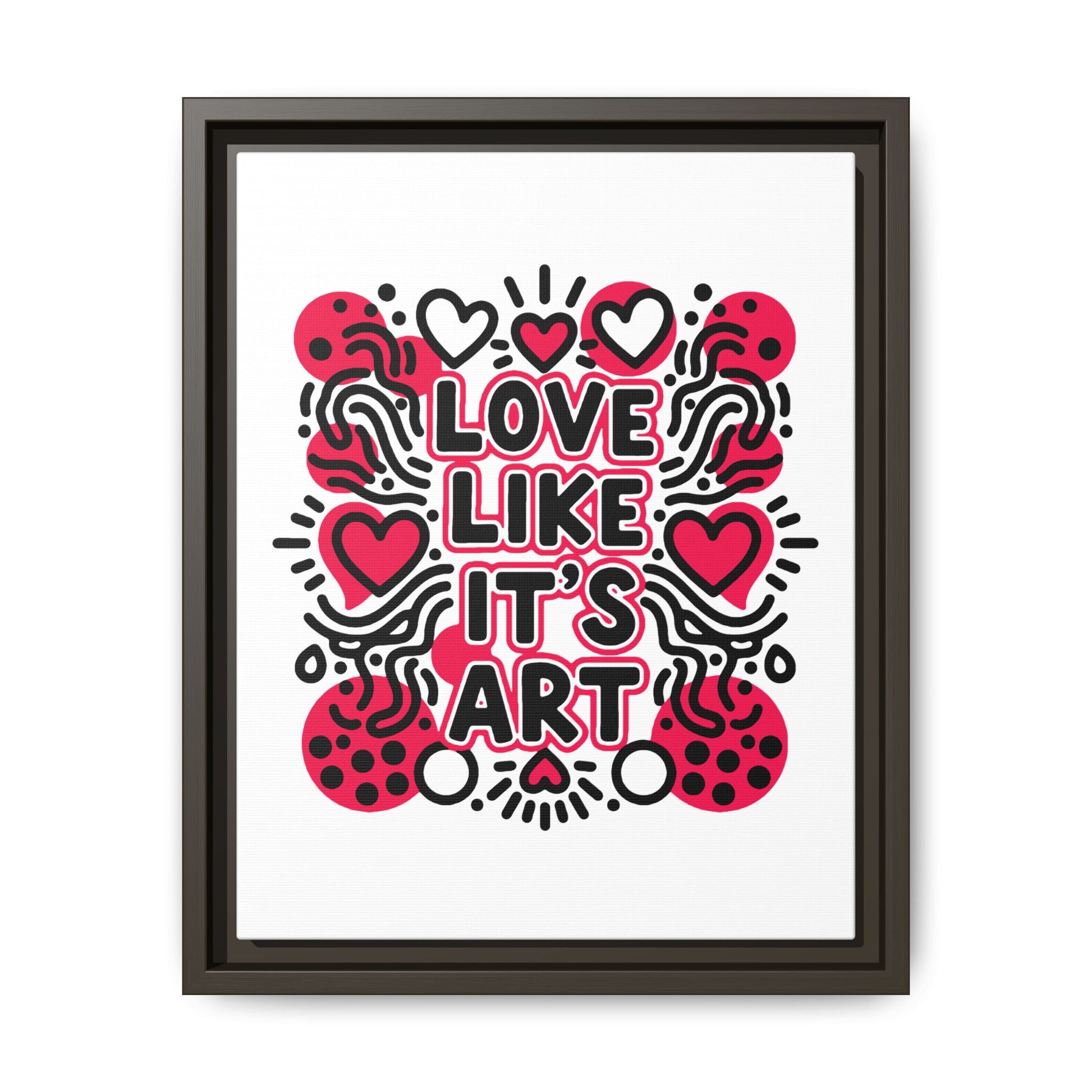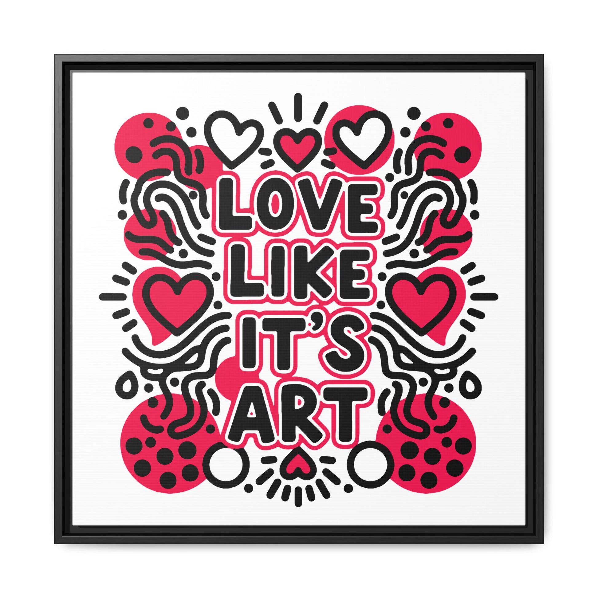 Elevate your space with this vibrant matte canvas, framed. Featuring a lively design that reads "Love Like It's Art," this piece radiates creativity and joy, making it a perfect addition to any home. Whether hung in a cozy living room, a modern office, or a playful studio, it evokes a sense of passion and inspiration. This product appeals to art enthusiasts, couples celebrating love, and anyone looking to add a splash of color to their decor. Ideal for Valentine's Day, anniversaries, art-themed events, or simply as a daily reminder to embrace creativity in life.
