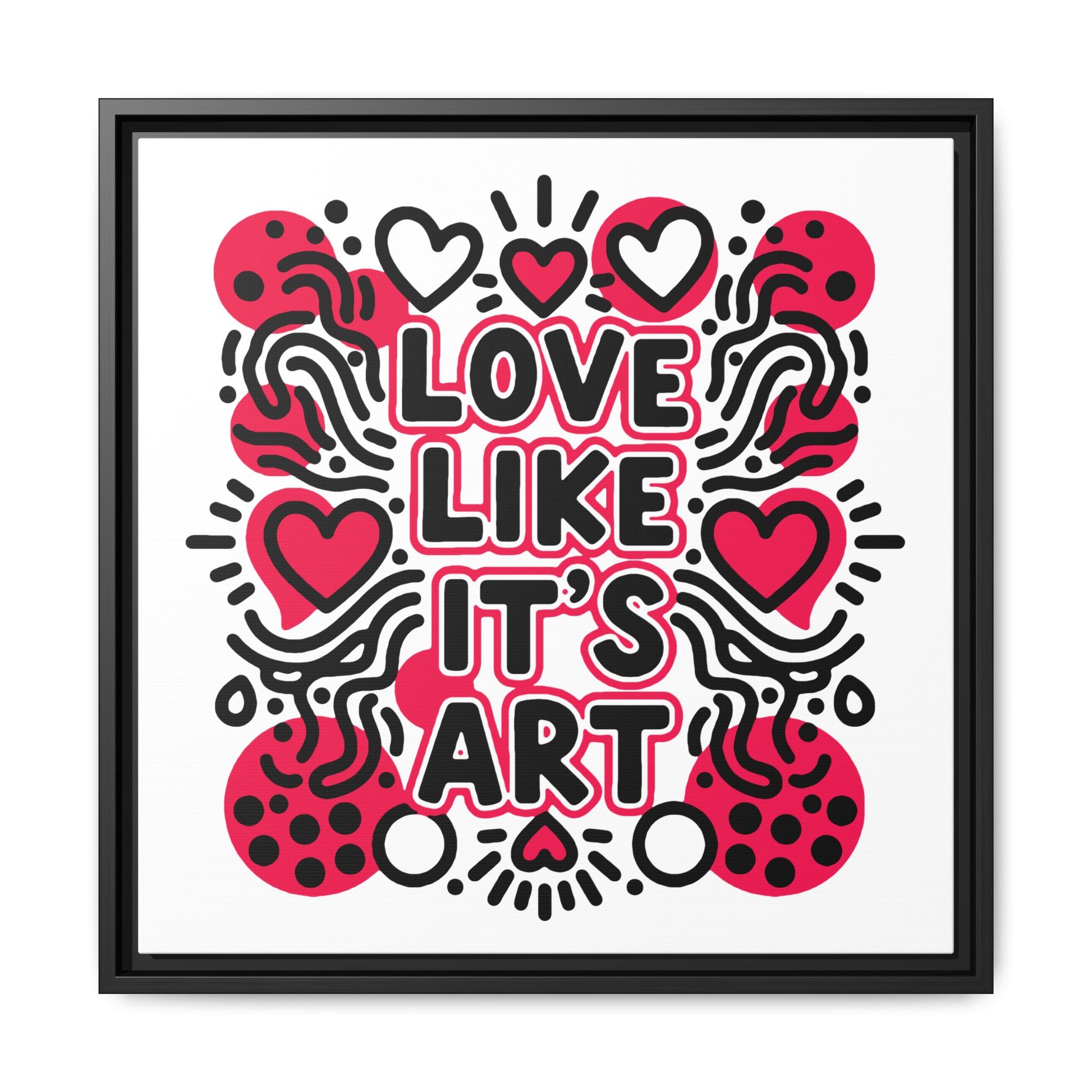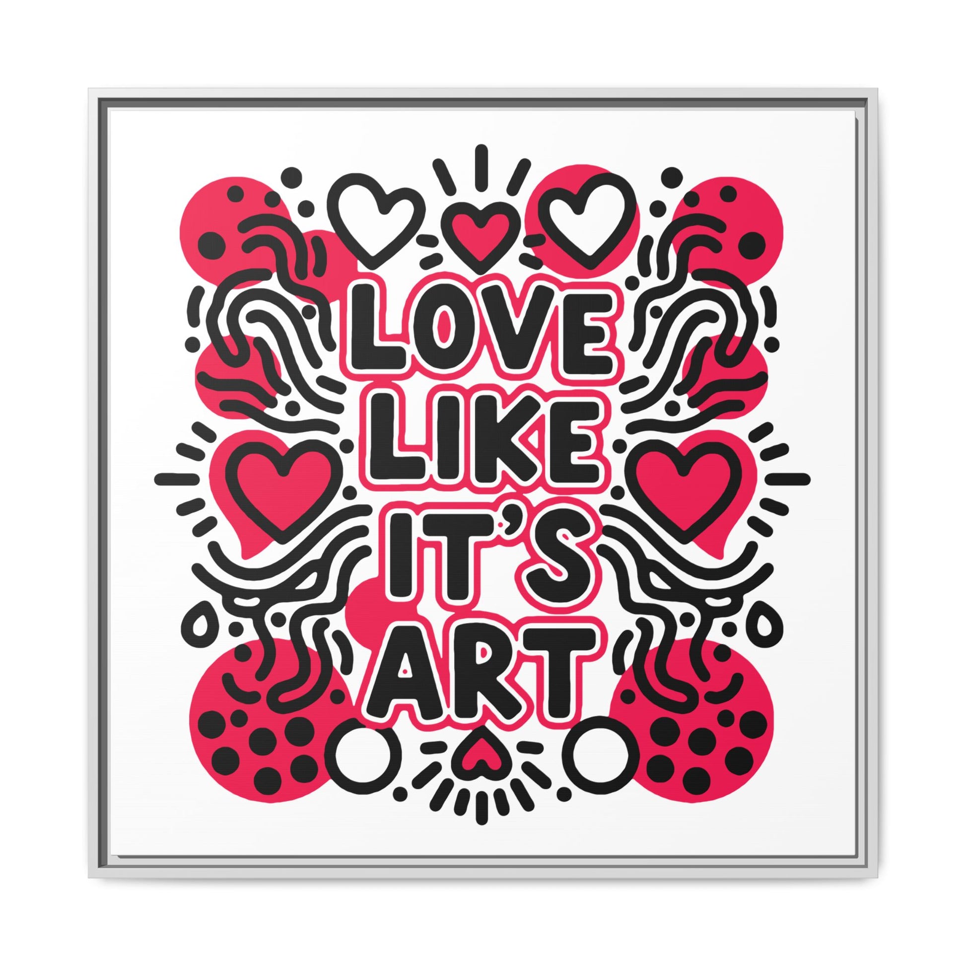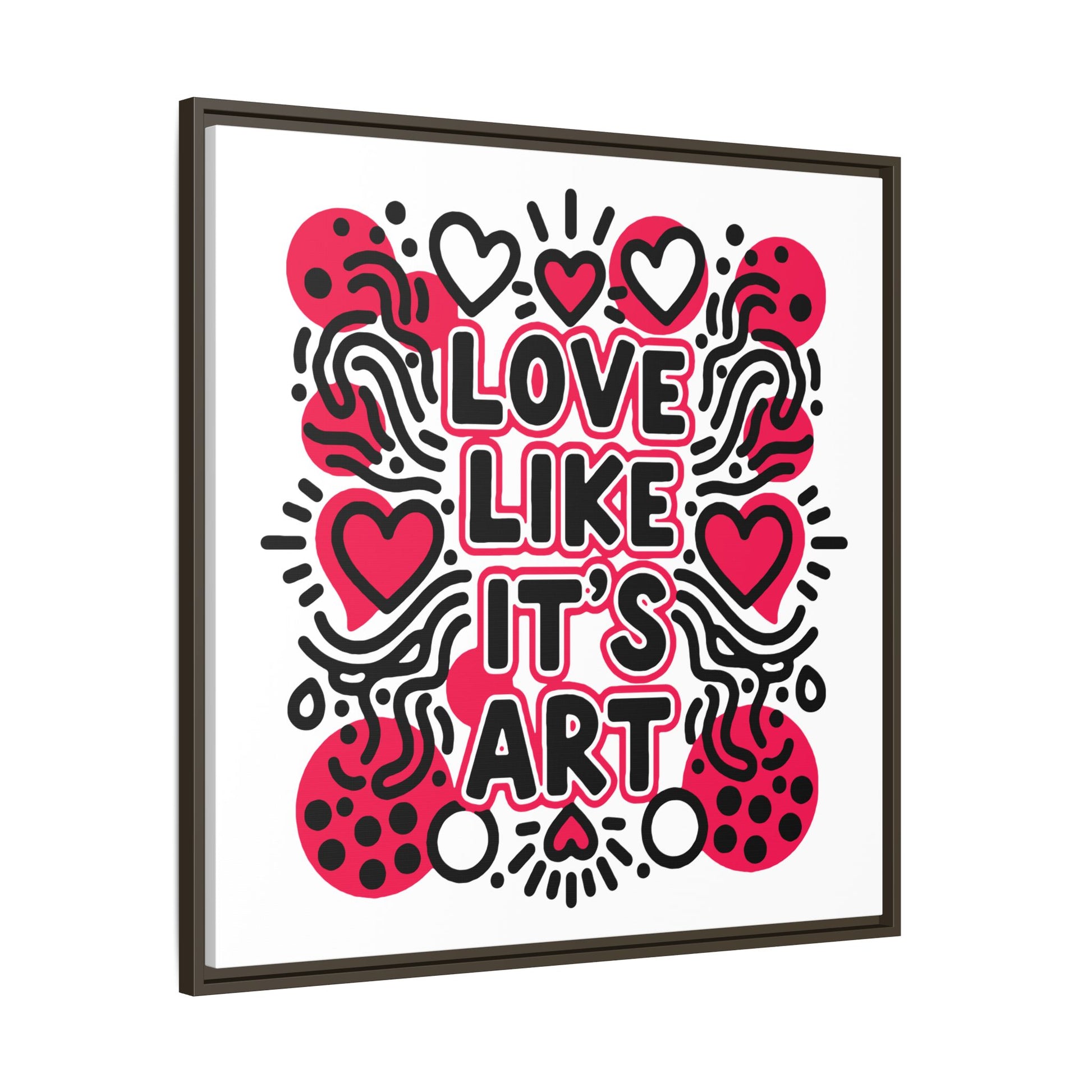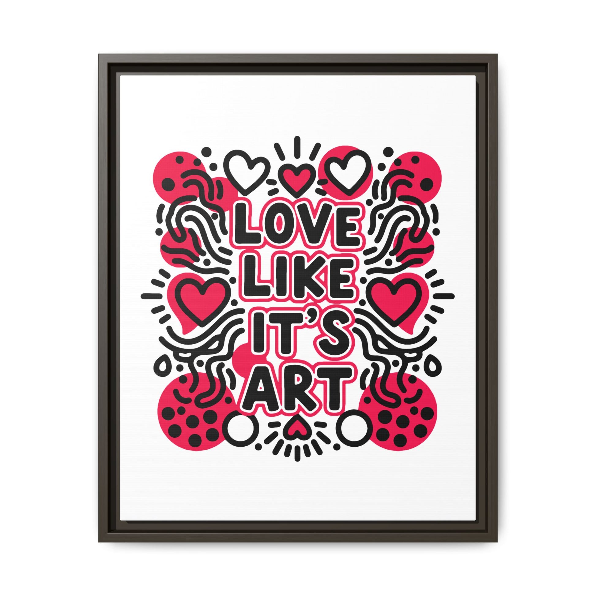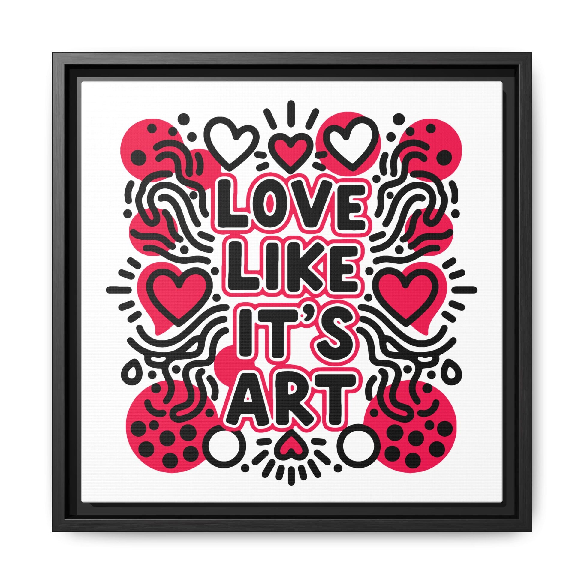Elevate your space with this vibrant matte canvas, framed. Featuring a lively design that reads "Love Like It's Art," this piece radiates creativity and joy, making it a perfect addition to any home. Whether hung in a cozy living room, a modern office, or a playful studio, it evokes a sense of passion and inspiration. This product appeals to art enthusiasts, couples celebrating love, and anyone looking to add a splash of color to their decor. Ideal for Valentine's Day, anniversaries, art-themed events, or simply as a daily reminder to embrace creativity in life.