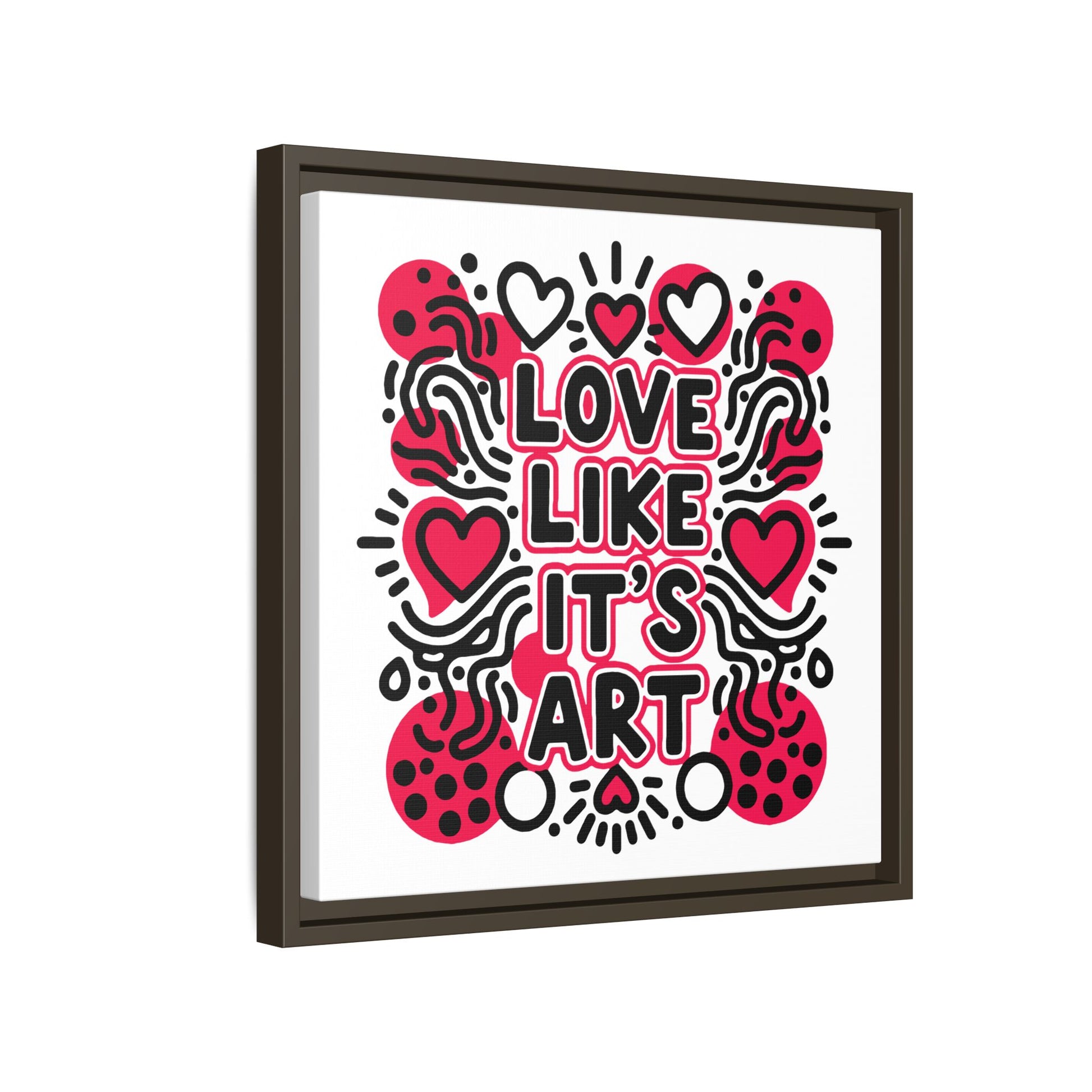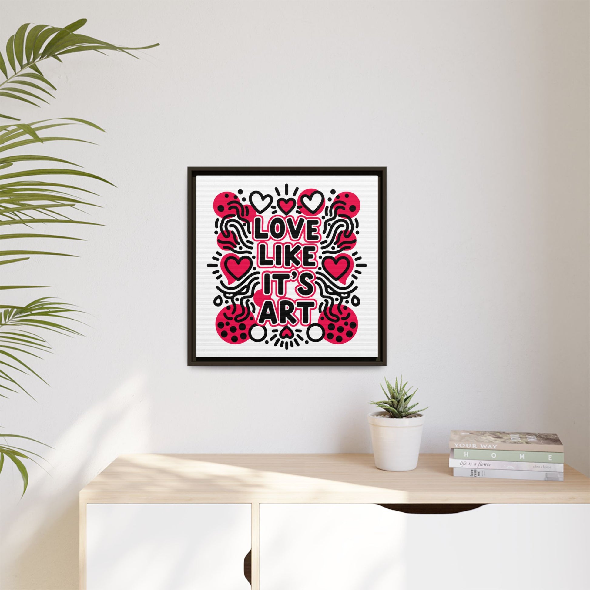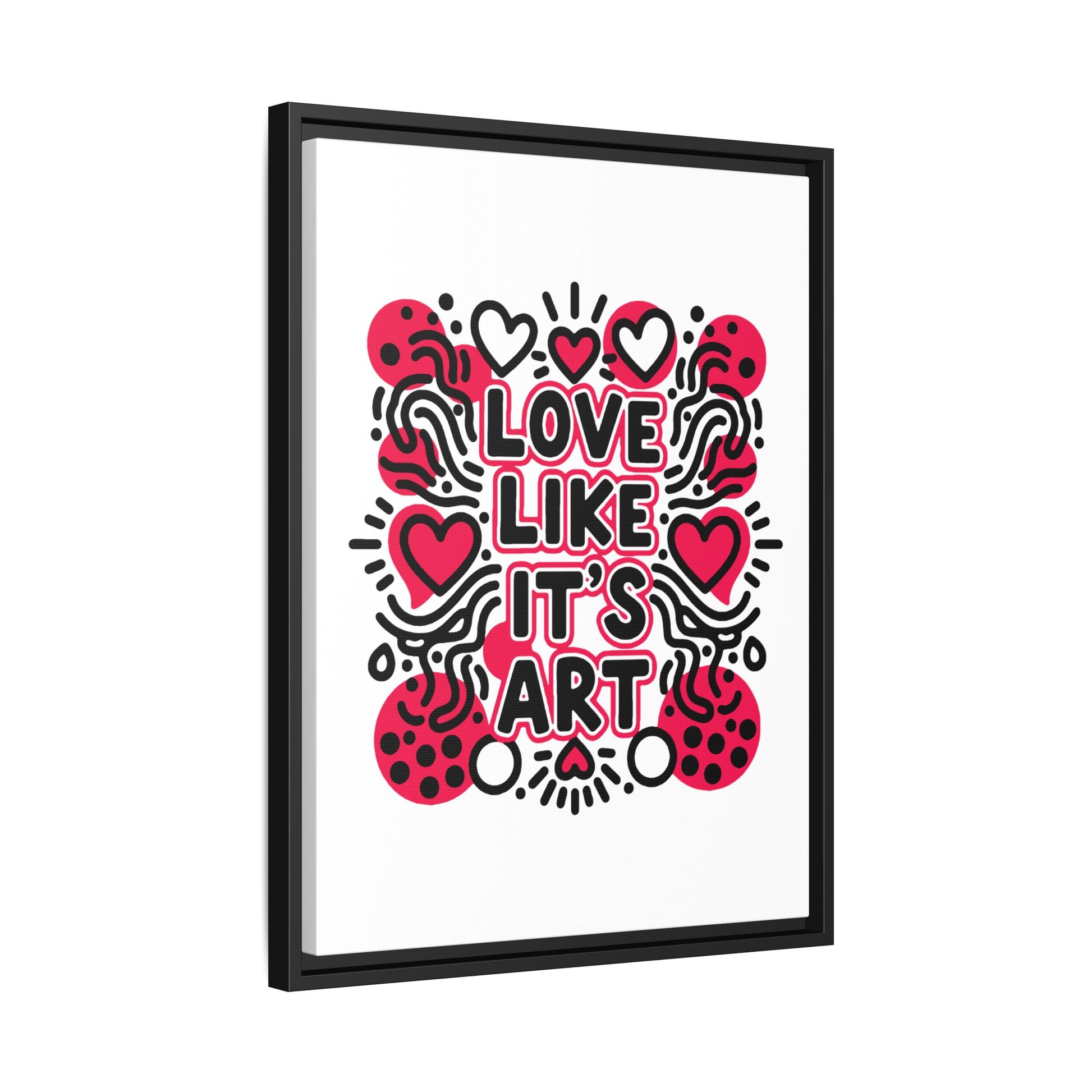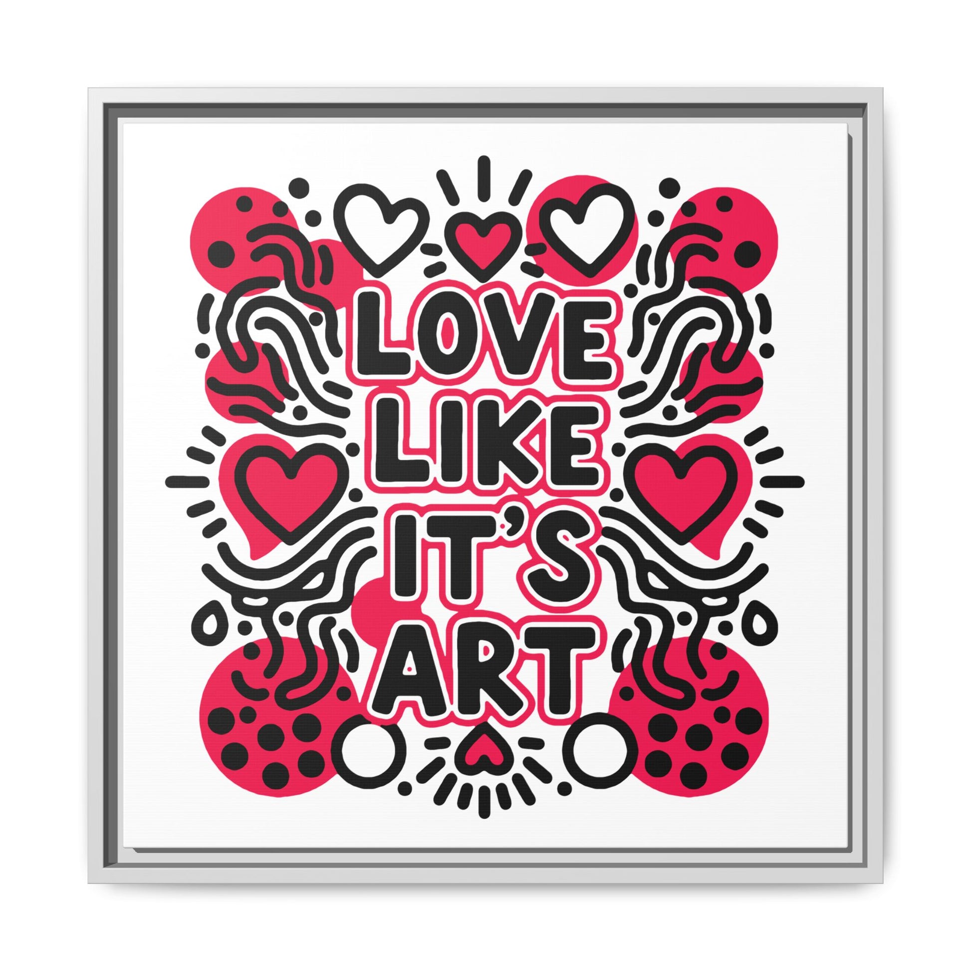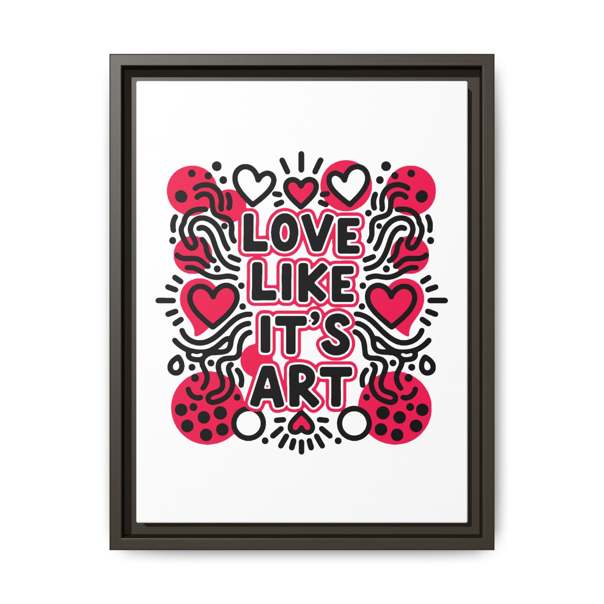 Elevate your space with this vibrant matte canvas, framed. Featuring a lively design that reads "Love Like It's Art," this piece radiates creativity and joy, making it a perfect addition to any home. Whether hung in a cozy living room, a modern office, or a playful studio, it evokes a sense of passion and inspiration. This product appeals to art enthusiasts, couples celebrating love, and anyone looking to add a splash of color to their decor. Ideal for Valentine's Day, anniversaries, art-themed events, or simply as a daily reminder to embrace creativity in life.