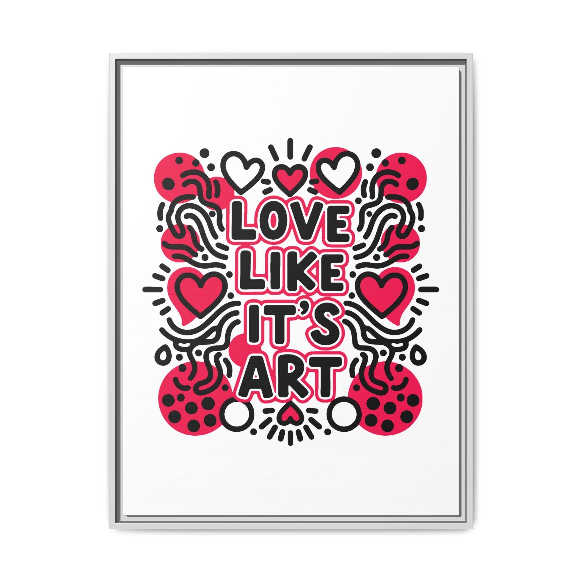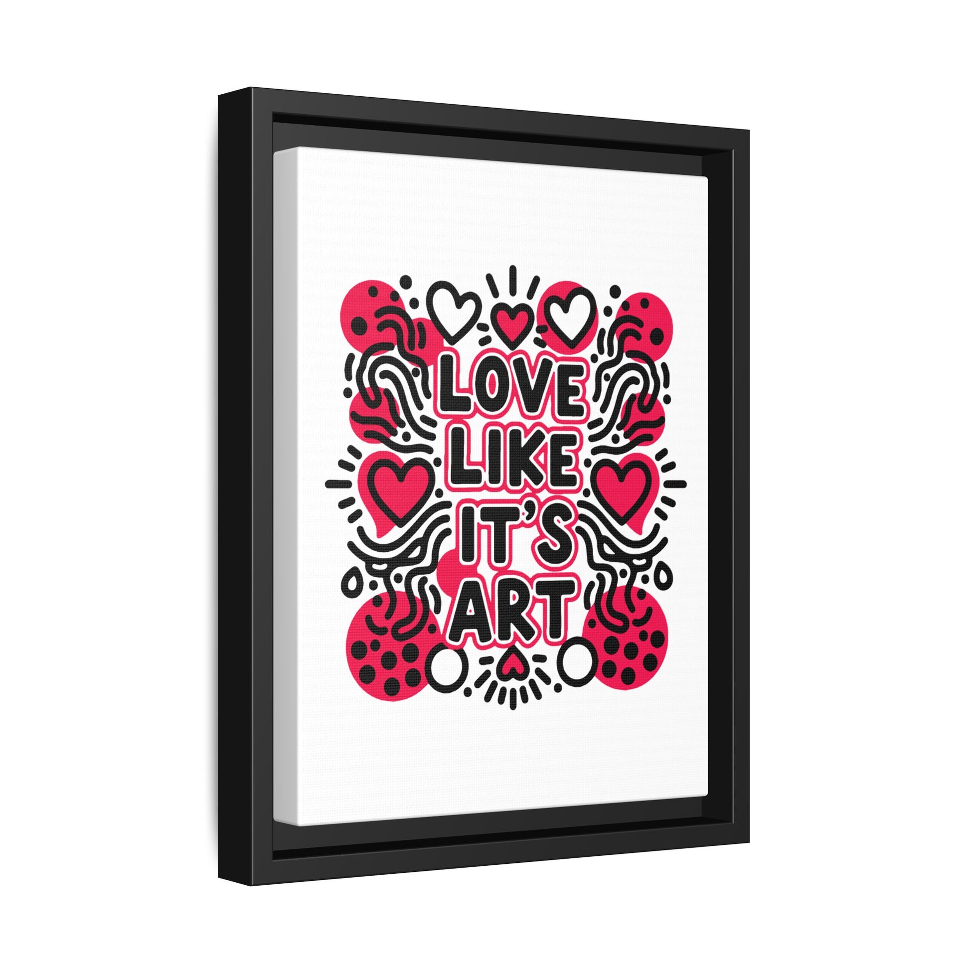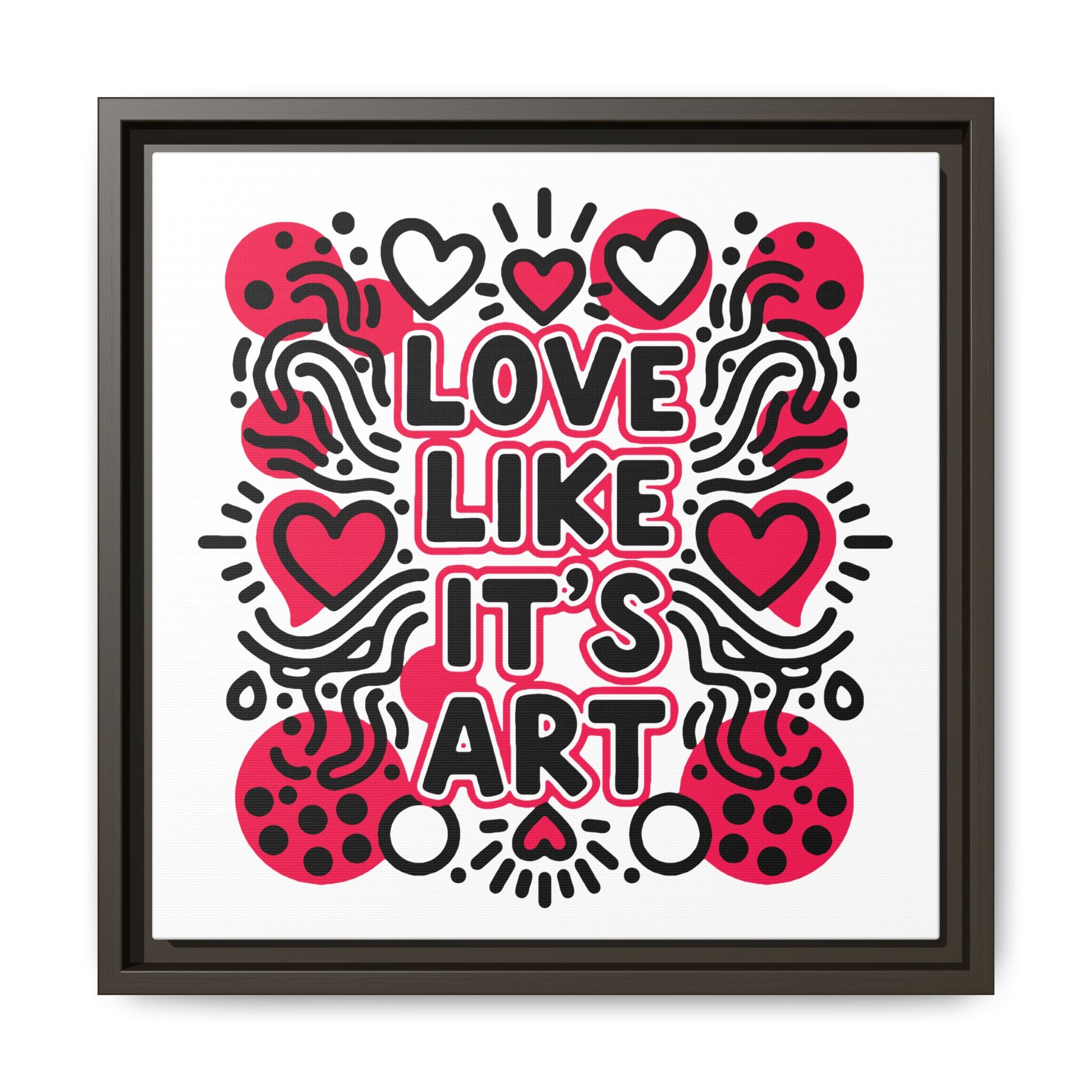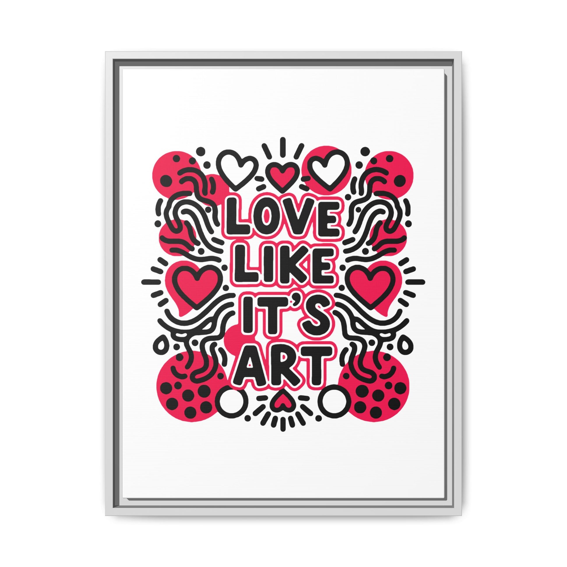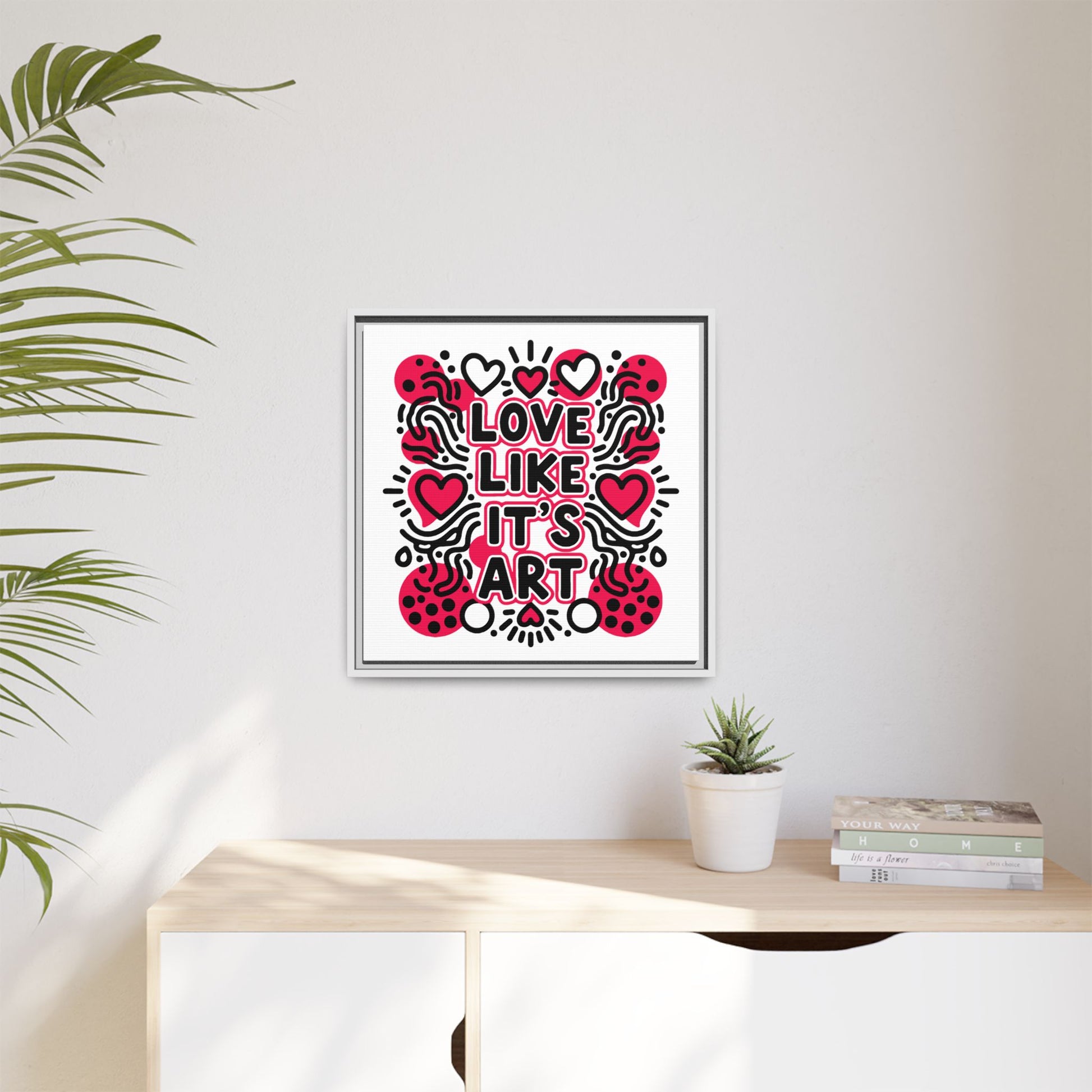 Elevate your space with this vibrant matte canvas, framed. Featuring a lively design that reads "Love Like It's Art," this piece radiates creativity and joy, making it a perfect addition to any home. Whether hung in a cozy living room, a modern office, or a playful studio, it evokes a sense of passion and inspiration. This product appeals to art enthusiasts, couples celebrating love, and anyone looking to add a splash of color to their decor. Ideal for Valentine's Day, anniversaries, art-themed events, or simply as a daily reminder to embrace creativity in life.