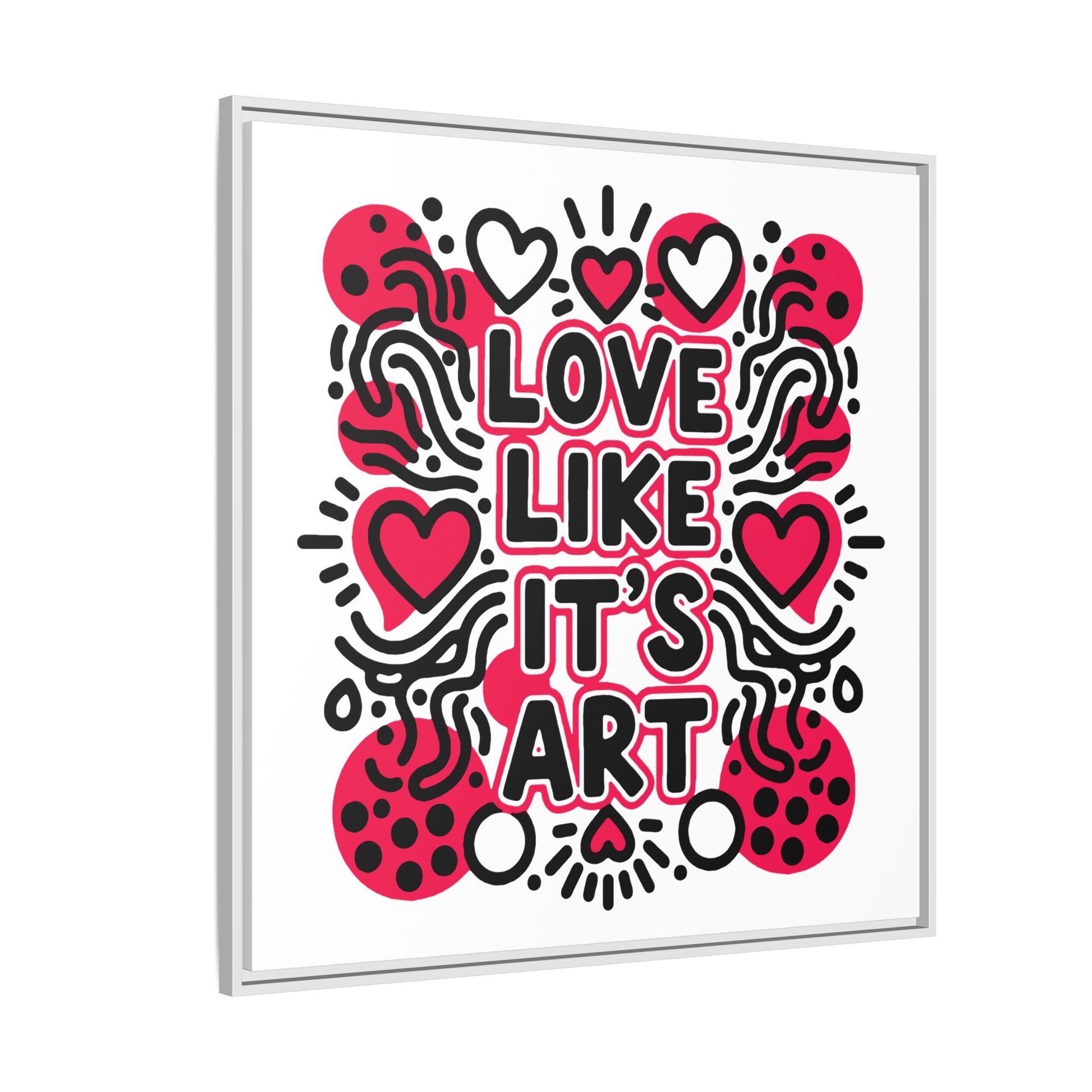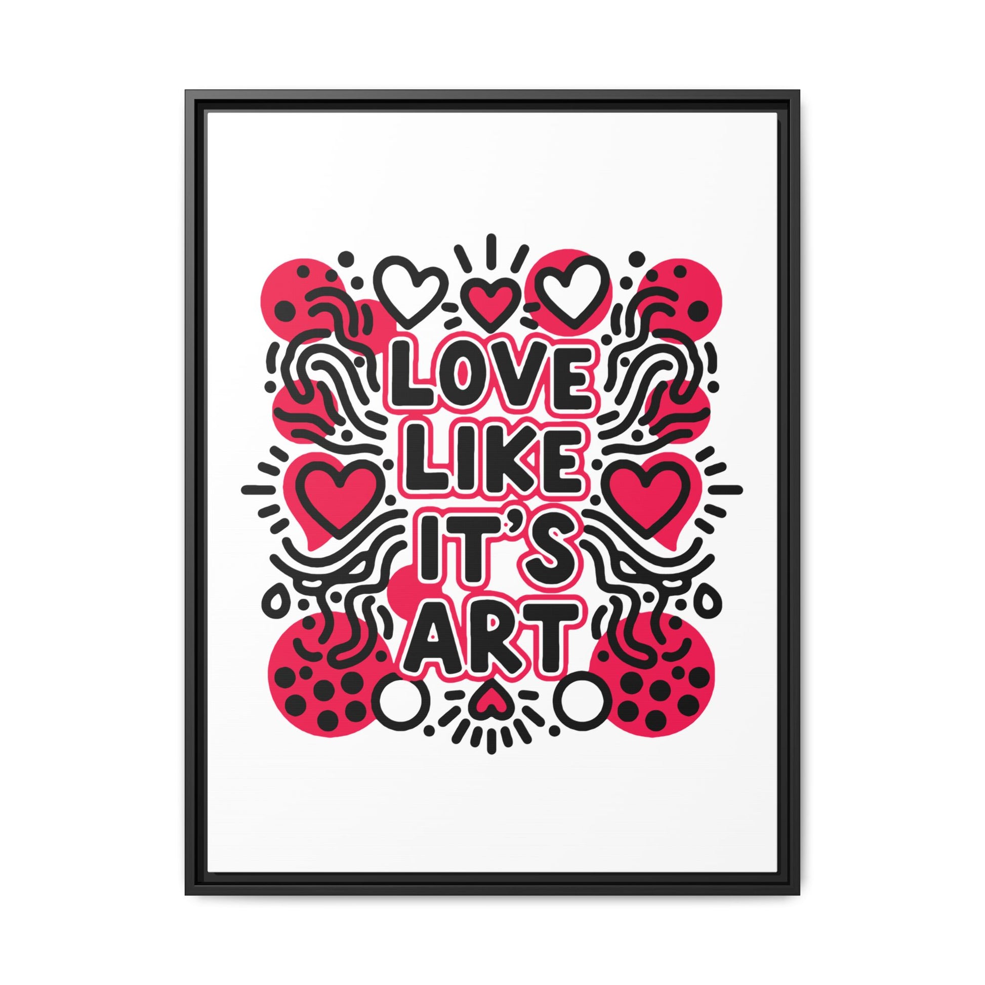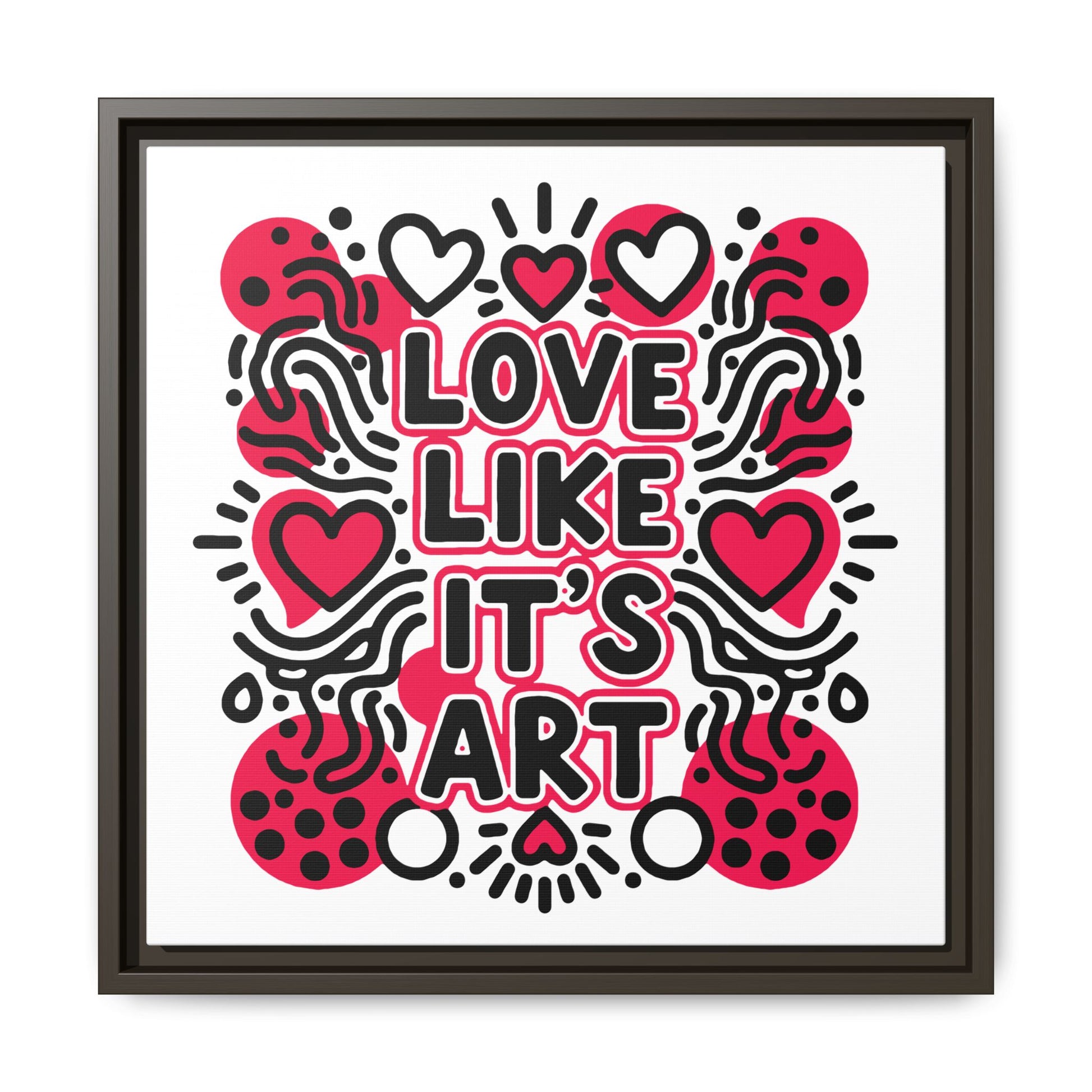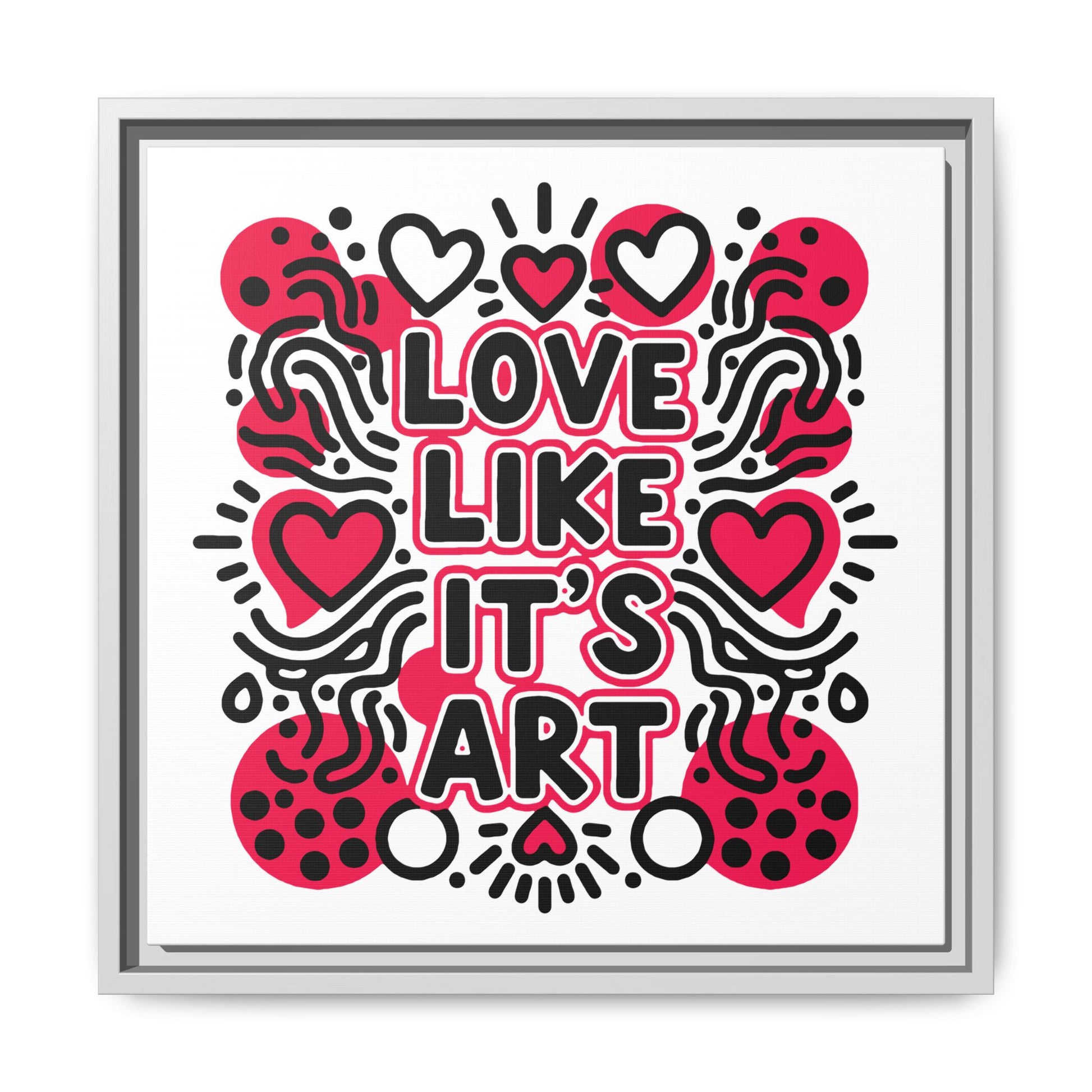 Elevate your space with this vibrant matte canvas, framed. Featuring a lively design that reads "Love Like It's Art," this piece radiates creativity and joy, making it a perfect addition to any home. Whether hung in a cozy living room, a modern office, or a playful studio, it evokes a sense of passion and inspiration. This product appeals to art enthusiasts, couples celebrating love, and anyone looking to add a splash of color to their decor. Ideal for Valentine's Day, anniversaries, art-themed events, or simply as a daily reminder to embrace creativity in life.