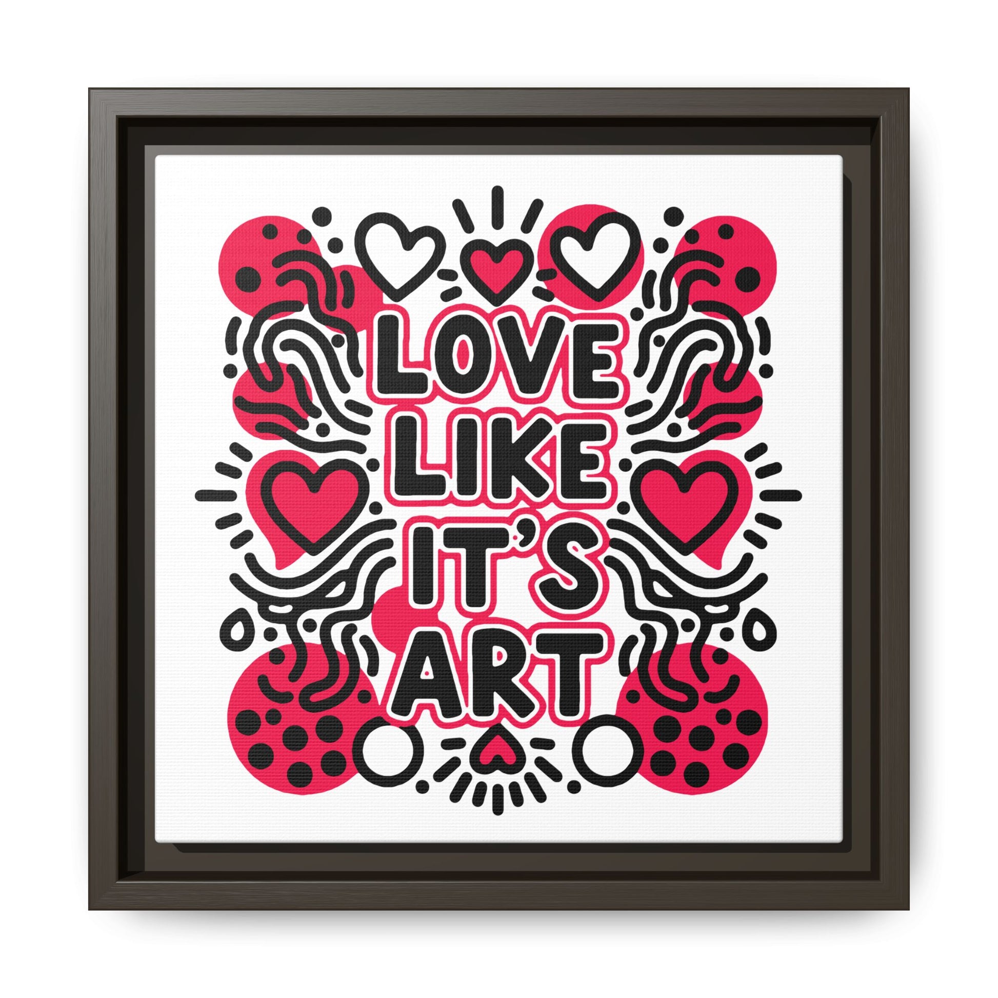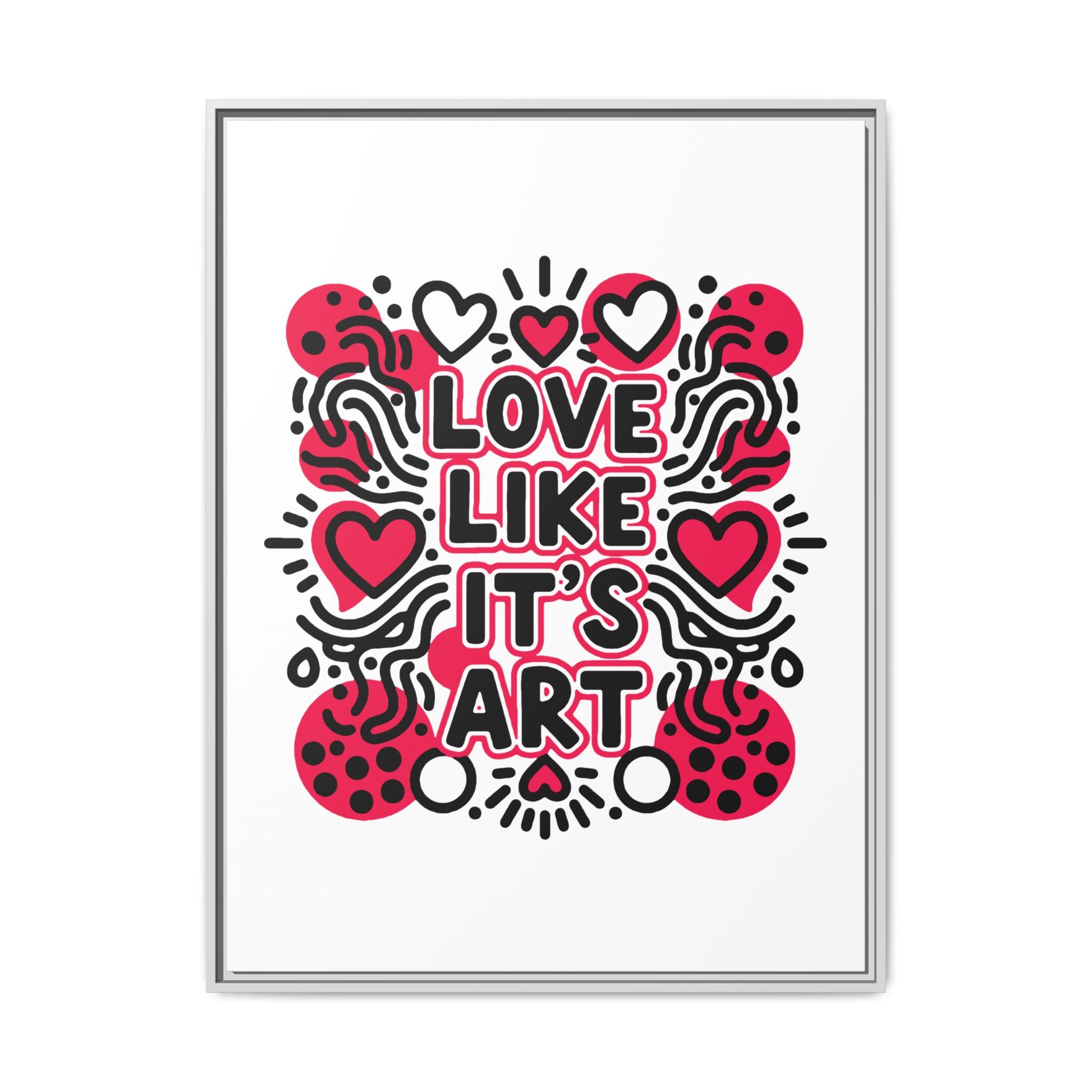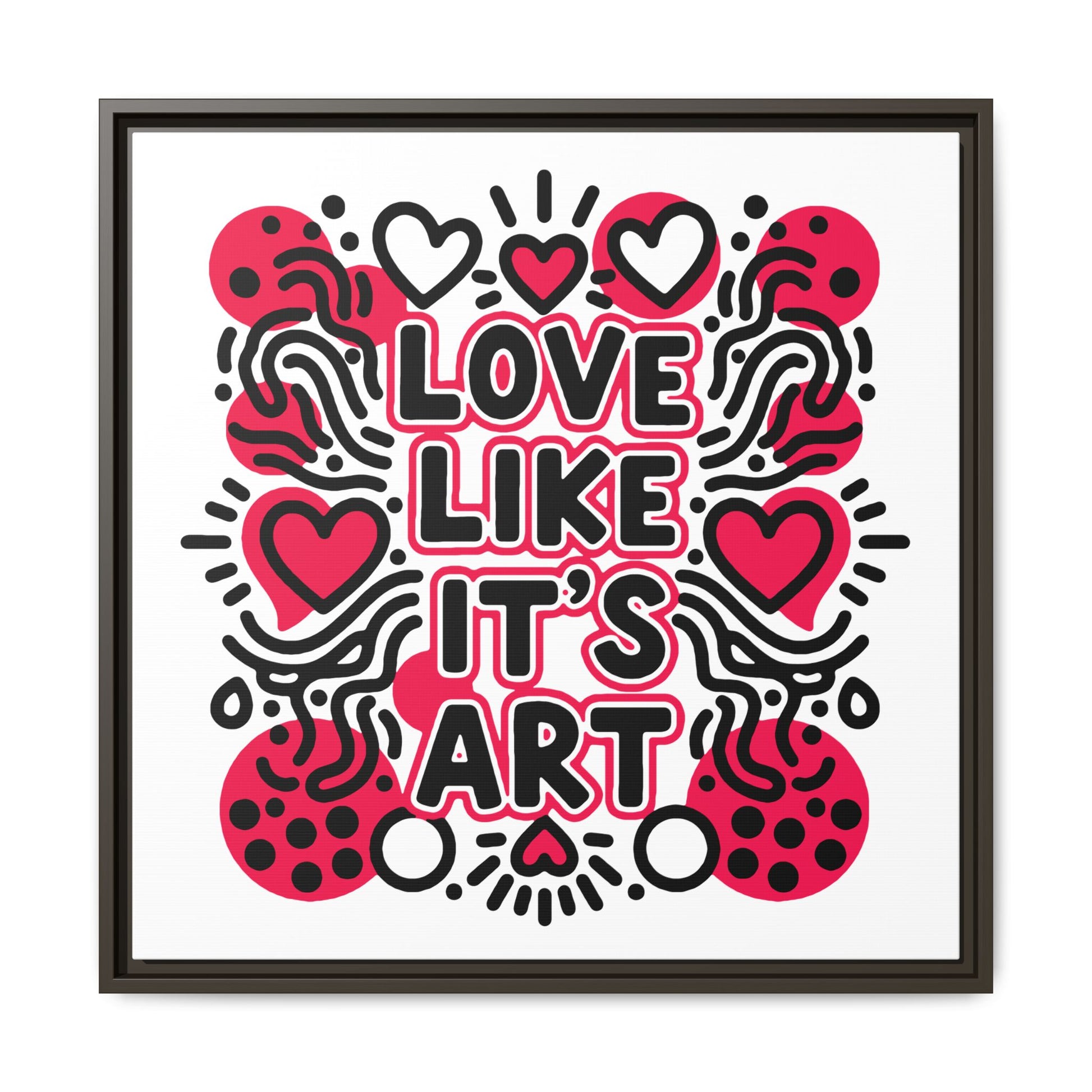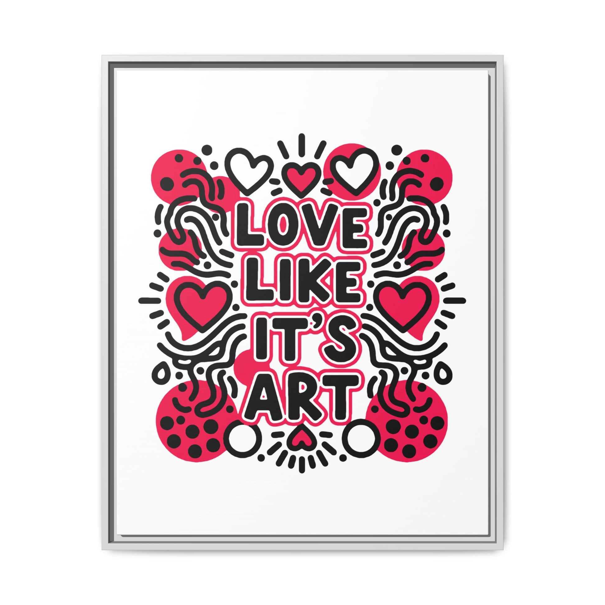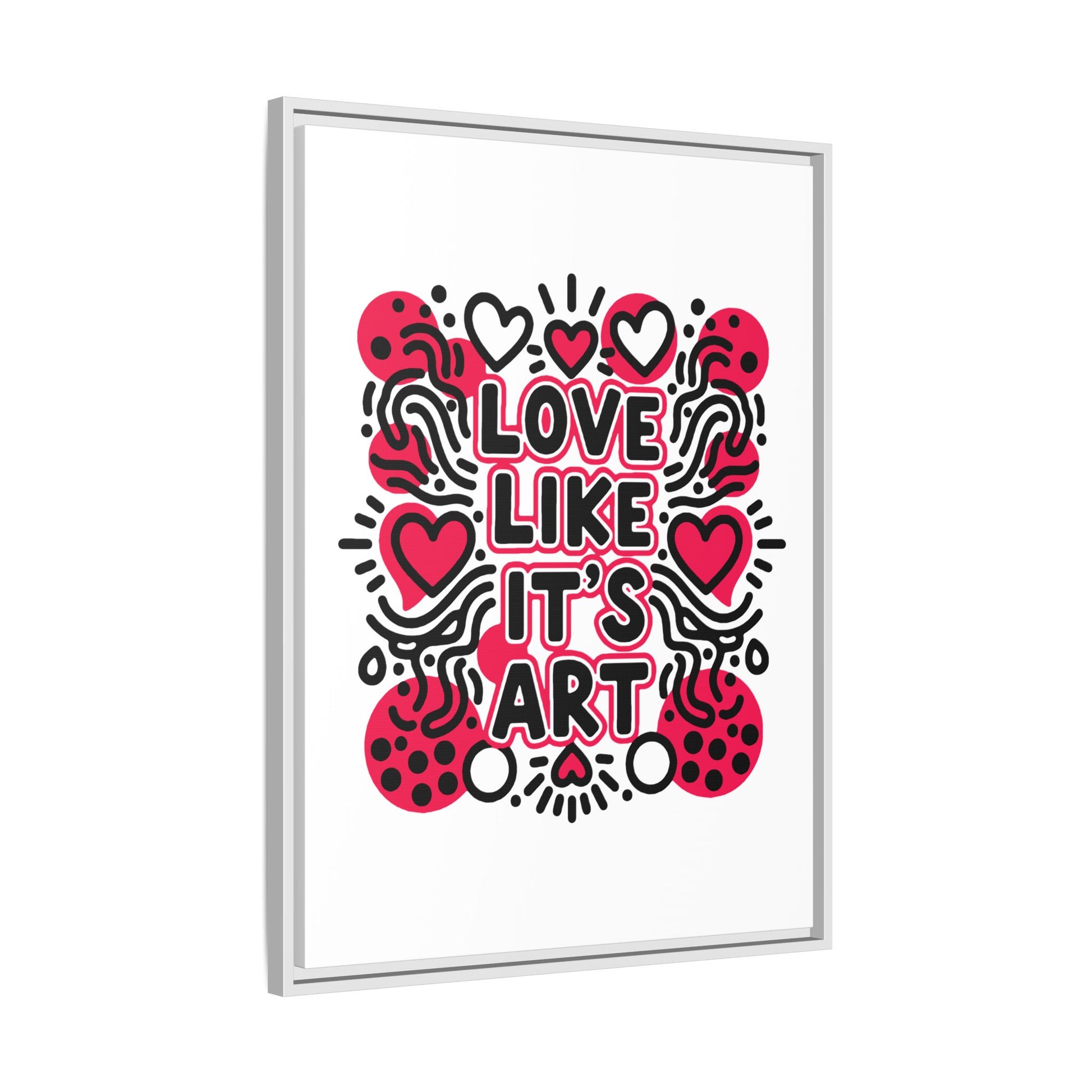 Elevate your space with this vibrant matte canvas, framed. Featuring a lively design that reads "Love Like It's Art," this piece radiates creativity and joy, making it a perfect addition to any home. Whether hung in a cozy living room, a modern office, or a playful studio, it evokes a sense of passion and inspiration. This product appeals to art enthusiasts, couples celebrating love, and anyone looking to add a splash of color to their decor. Ideal for Valentine's Day, anniversaries, art-themed events, or simply as a daily reminder to embrace creativity in life.