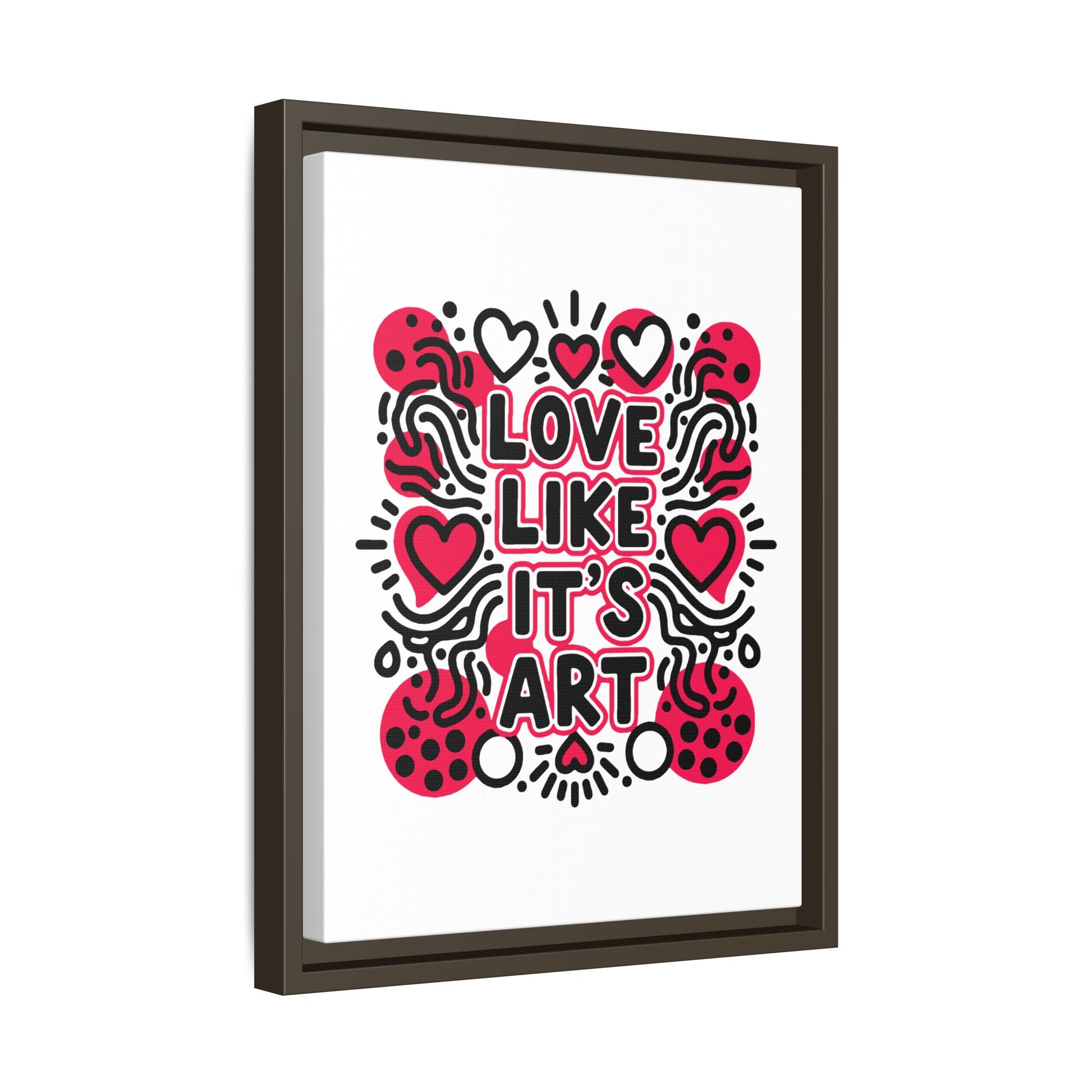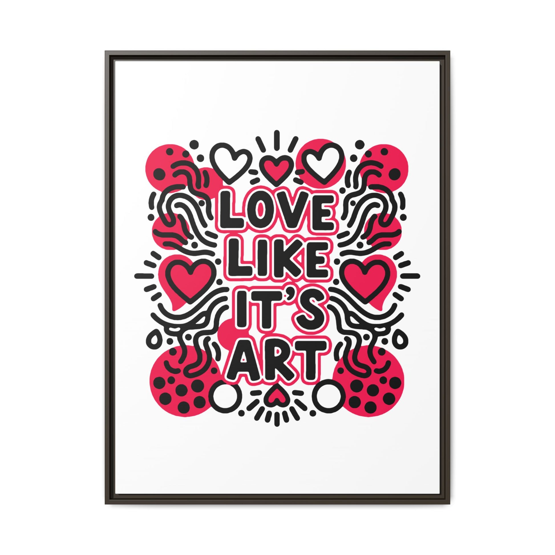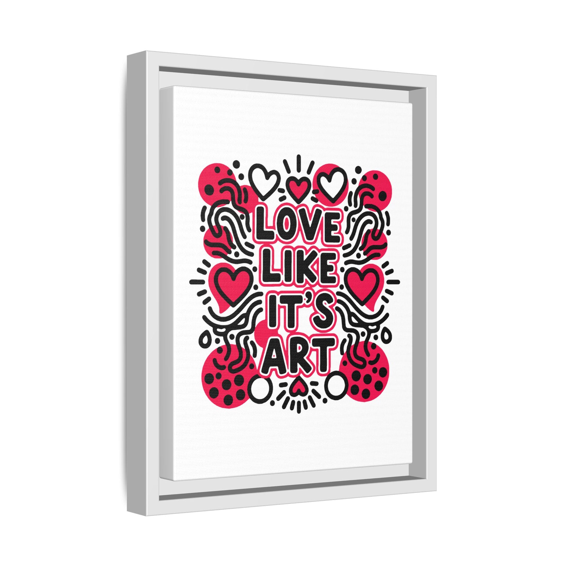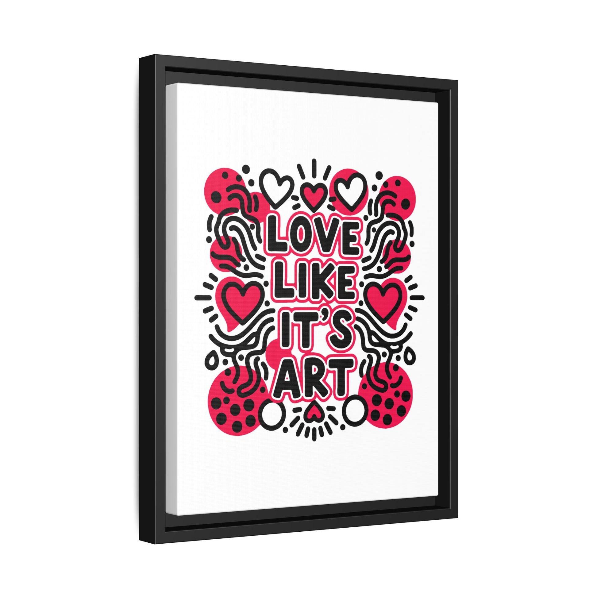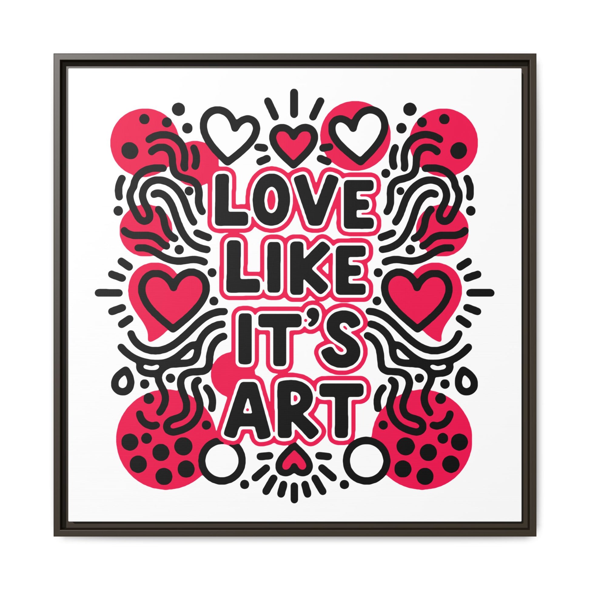 Elevate your space with this vibrant matte canvas, framed. Featuring a lively design that reads "Love Like It's Art," this piece radiates creativity and joy, making it a perfect addition to any home. Whether hung in a cozy living room, a modern office, or a playful studio, it evokes a sense of passion and inspiration. This product appeals to art enthusiasts, couples celebrating love, and anyone looking to add a splash of color to their decor. Ideal for Valentine's Day, anniversaries, art-themed events, or simply as a daily reminder to embrace creativity in life.