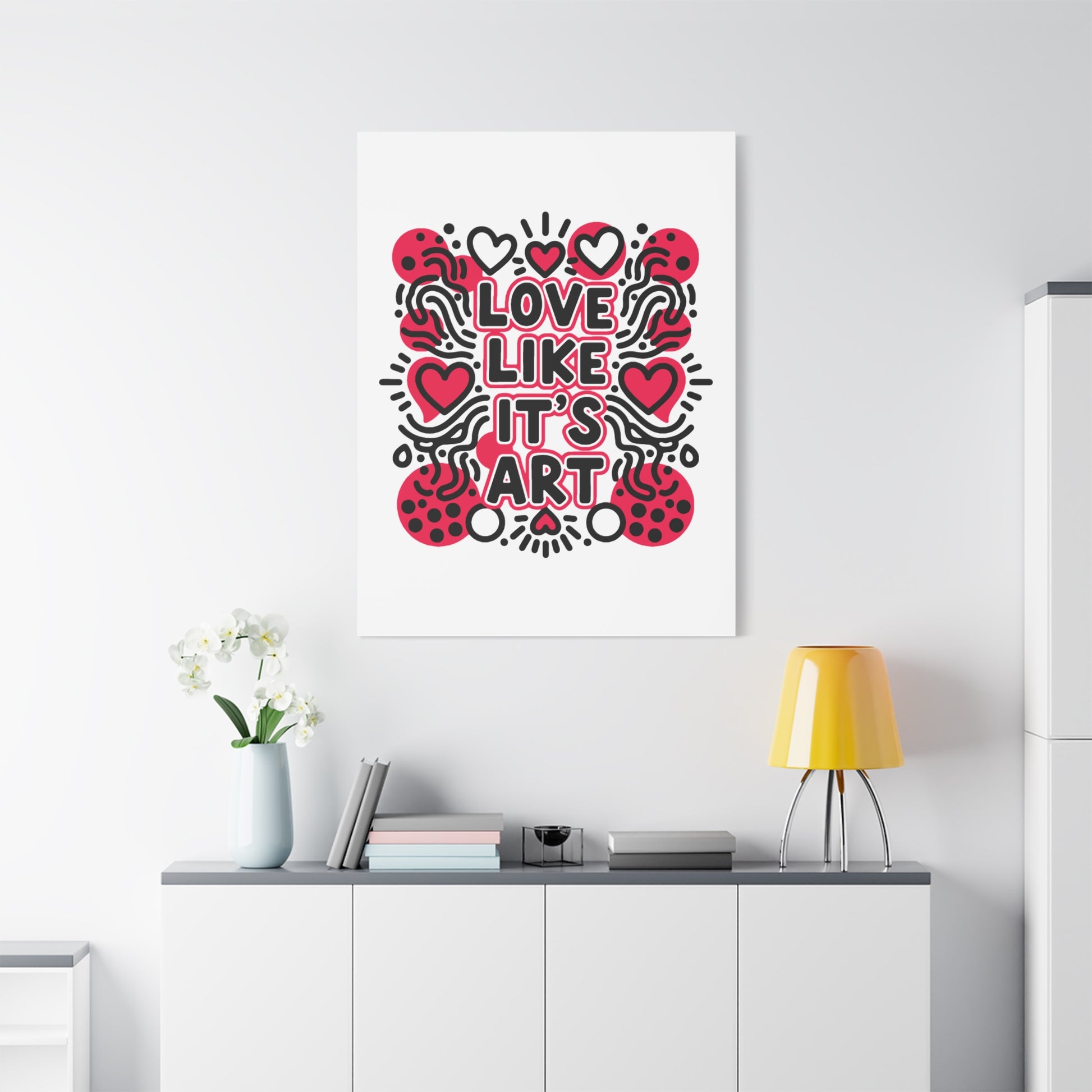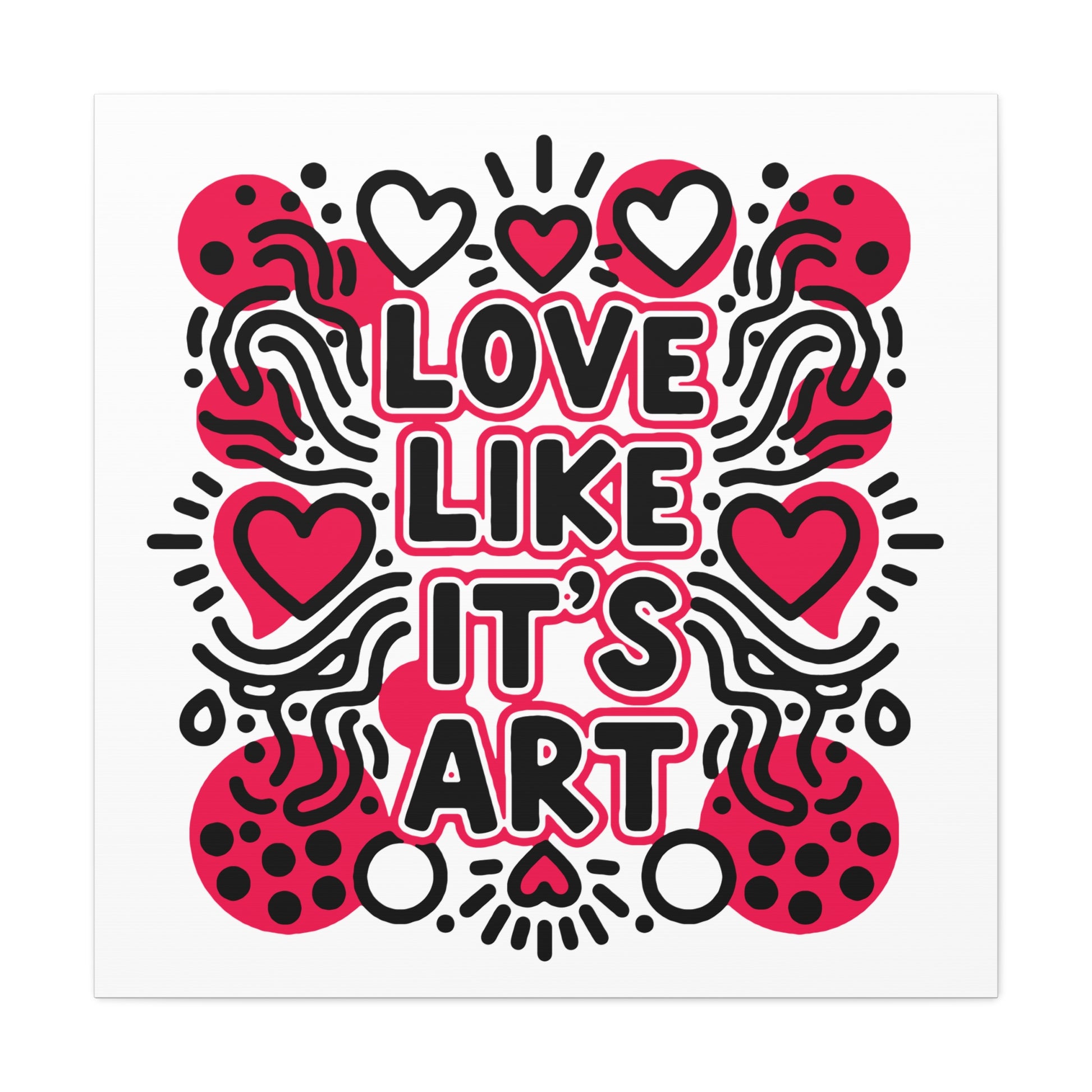 Transform your living space with this stunning canvas print, featuring a vibrant design that boldly proclaims, 'Love Like It’s Art.' This eye-catching piece radiates positivity and creativity, making it a perfect addition to any room in your home. The lively colors and playful imagery will brighten up your decor and inspire joy for anyone who sees it.