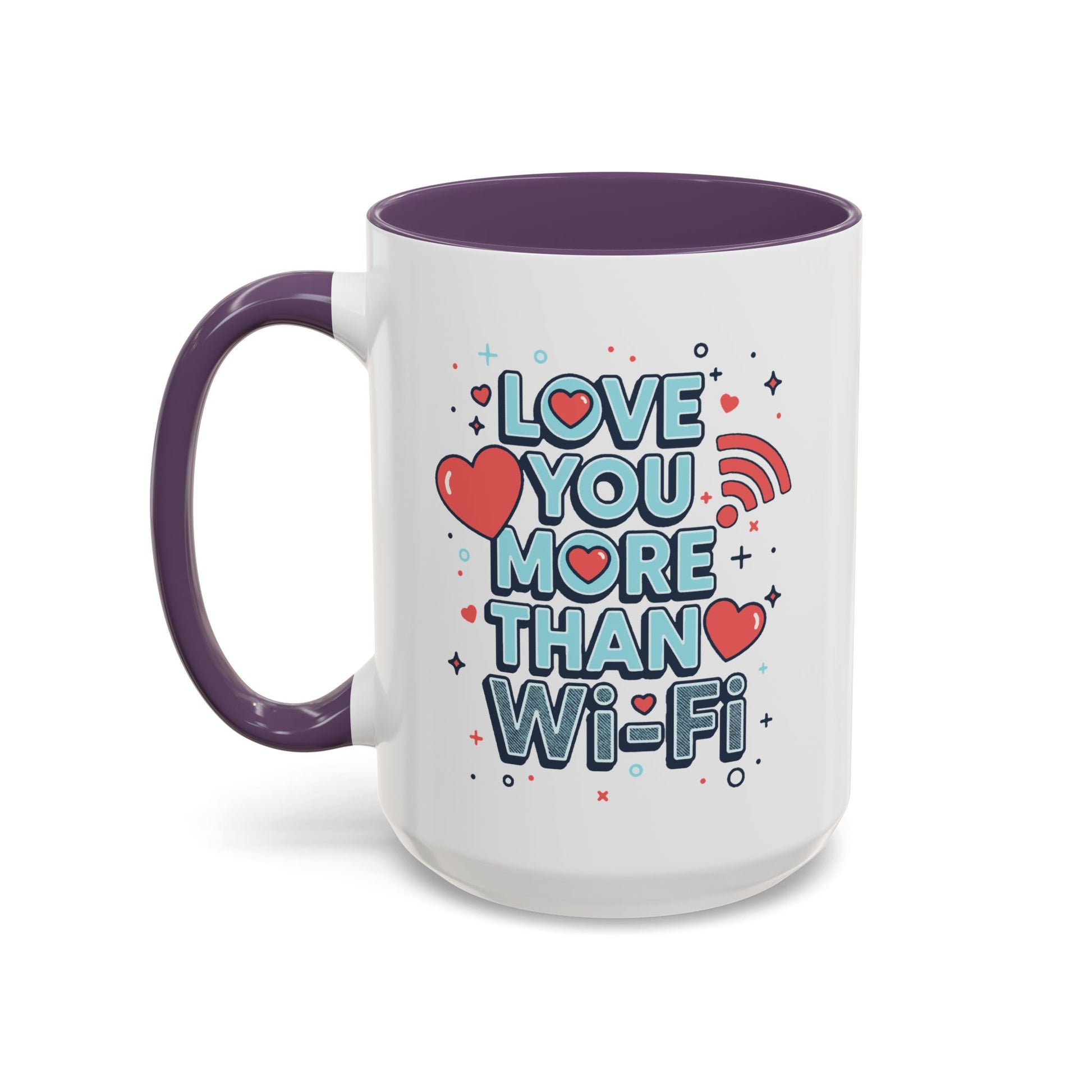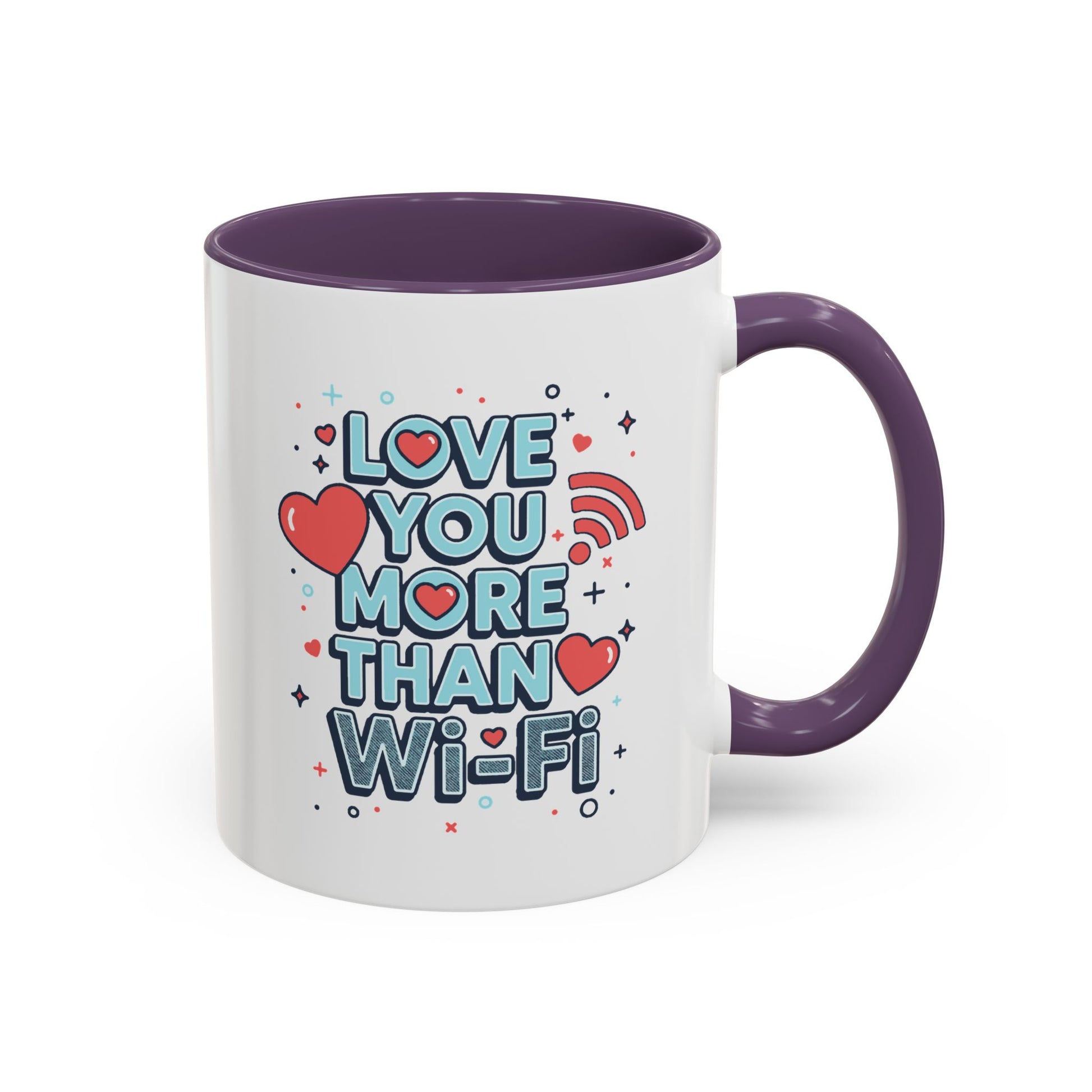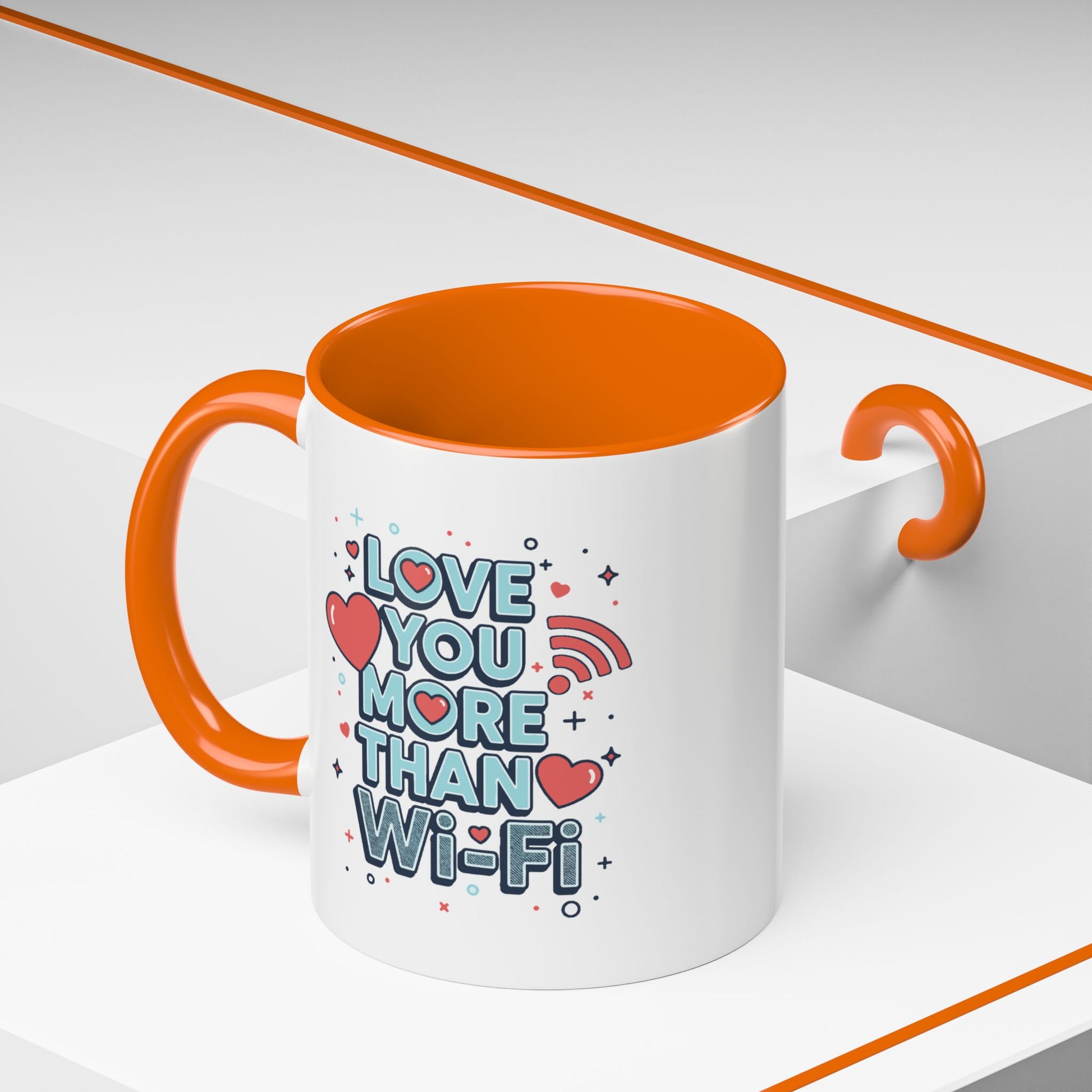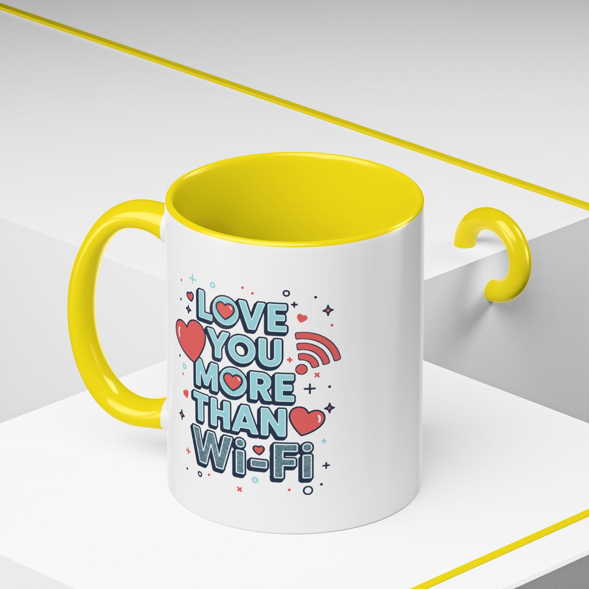 This glossy ceramic mug doubles as a daily pick-me-up and a little love note. Bright, playful lettering and heart-and-Wi-Fi graphics wrap the white exterior with a cheerful pop of color against the contrasting interior and handle. It feels right on slow mornings, mid-afternoon work breaks, or during video calls when you want to share a wink without saying a word. Lightweight but sturdy, it holds your coffee or tea and keeps that warm, cozy vibe going while reminding someone you care, in a way that’s casual and true to everyday life.