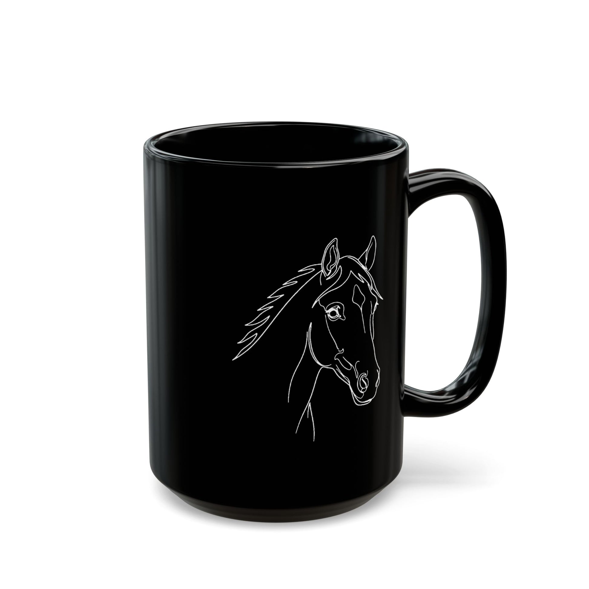 A sleek black ceramic mug that feels like a quiet morning in the stables. The glossy black surface makes the minimalist white line horse portrait stand out—calm, expressive, and quietly proud. It sits heavy and reassuring in your hands with a comfortable C-shaped handle, whether you’re nursing a slow cup of coffee before a ride or sipping tea while planning the day’s stable chores. Microwave- and dishwasher-safe, this mug keeps its crisp contrast and vibrant print through everyday use. For adult equestrians and horse lovers who prefer subtle, artful gear, this mug brings equine spirit to daily rituals and cozy occasions like chilly mornings, barn meetups, or relaxed evenings after a show.