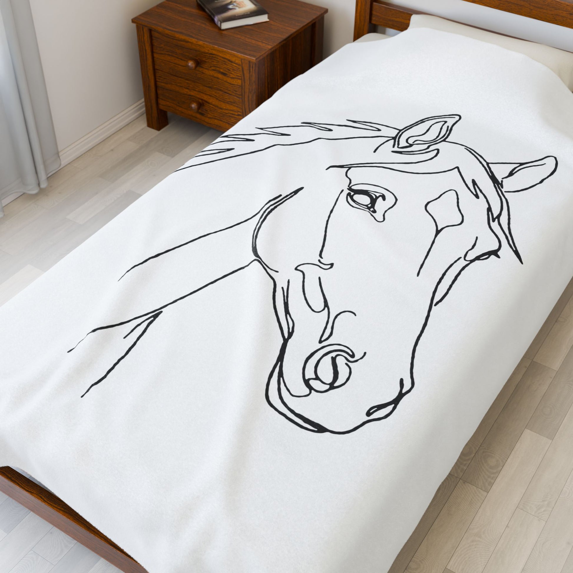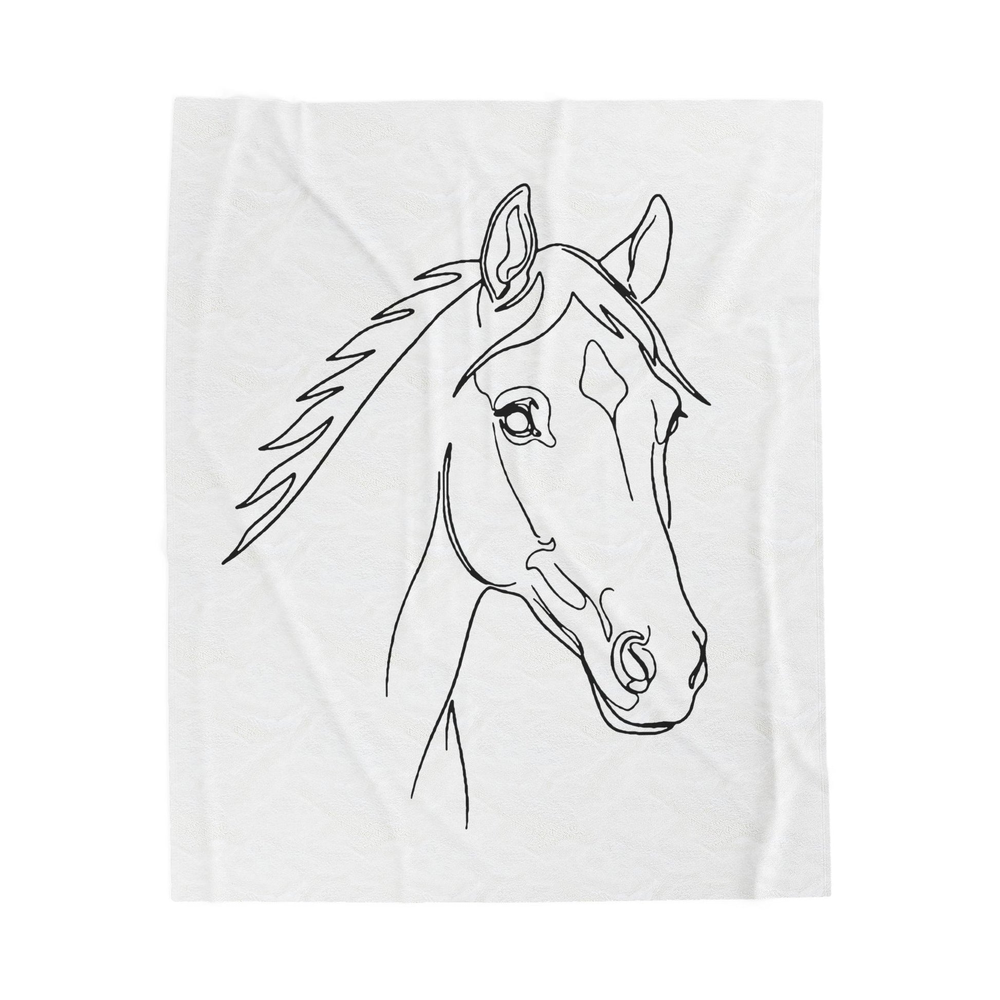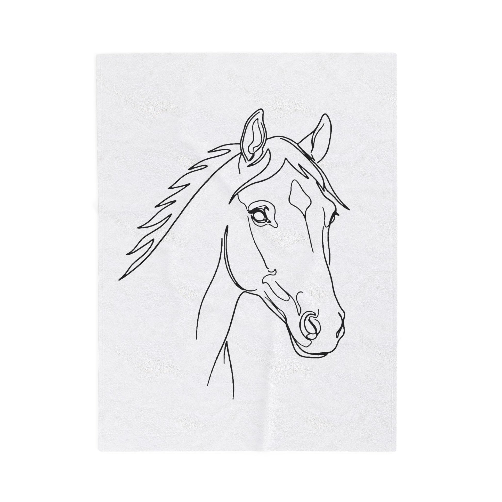 Soft, velvety, and whisper-light—this plush blanket carries a single-line horse portrait that feels quietly personal. The minimalist sketch sits on a smooth white canvas, letting the horse’s gentle expression and fluid lines become a calming presence in your room. Warmth without weight, and a touch of equestrian grace for evenings on the couch, early-morning barn rounds, or layered over a favorite chair. It drapes easily, packs flat for travel, and keeps its color and shape wash after wash. For anyone who loves horses, clean design, and cozy quiet moments.