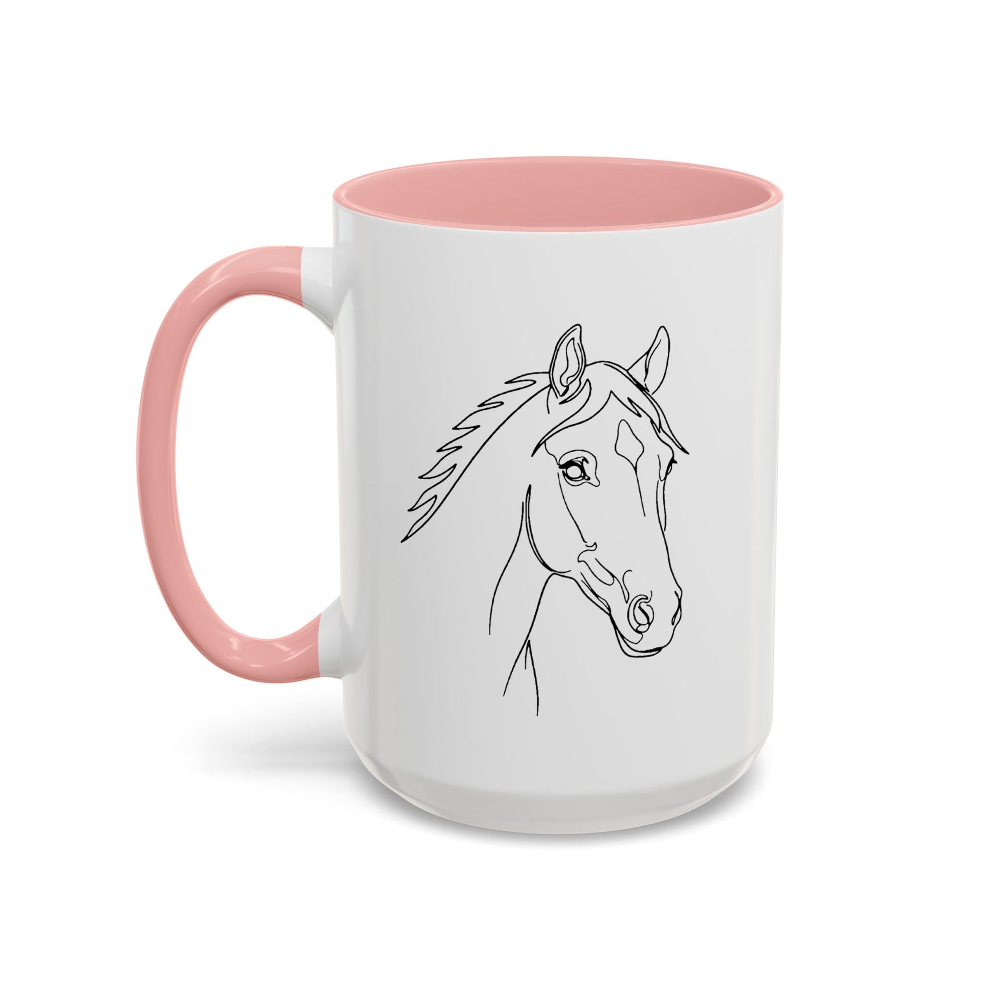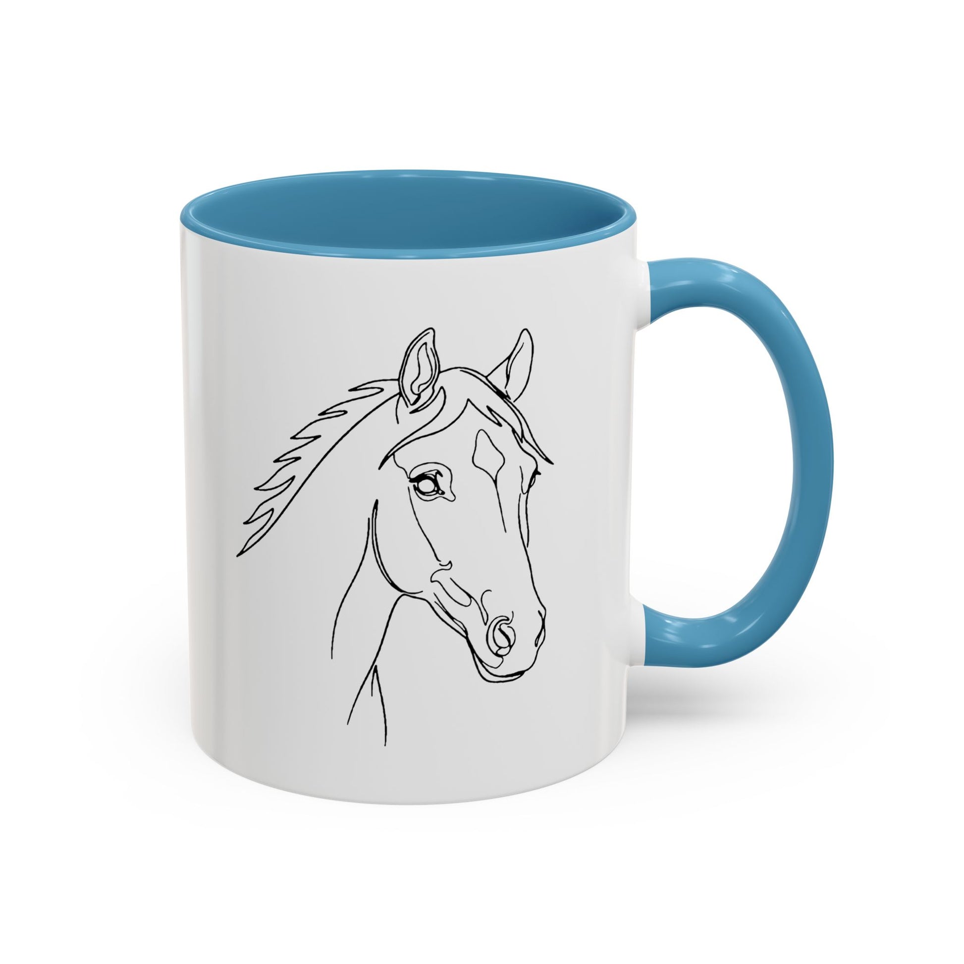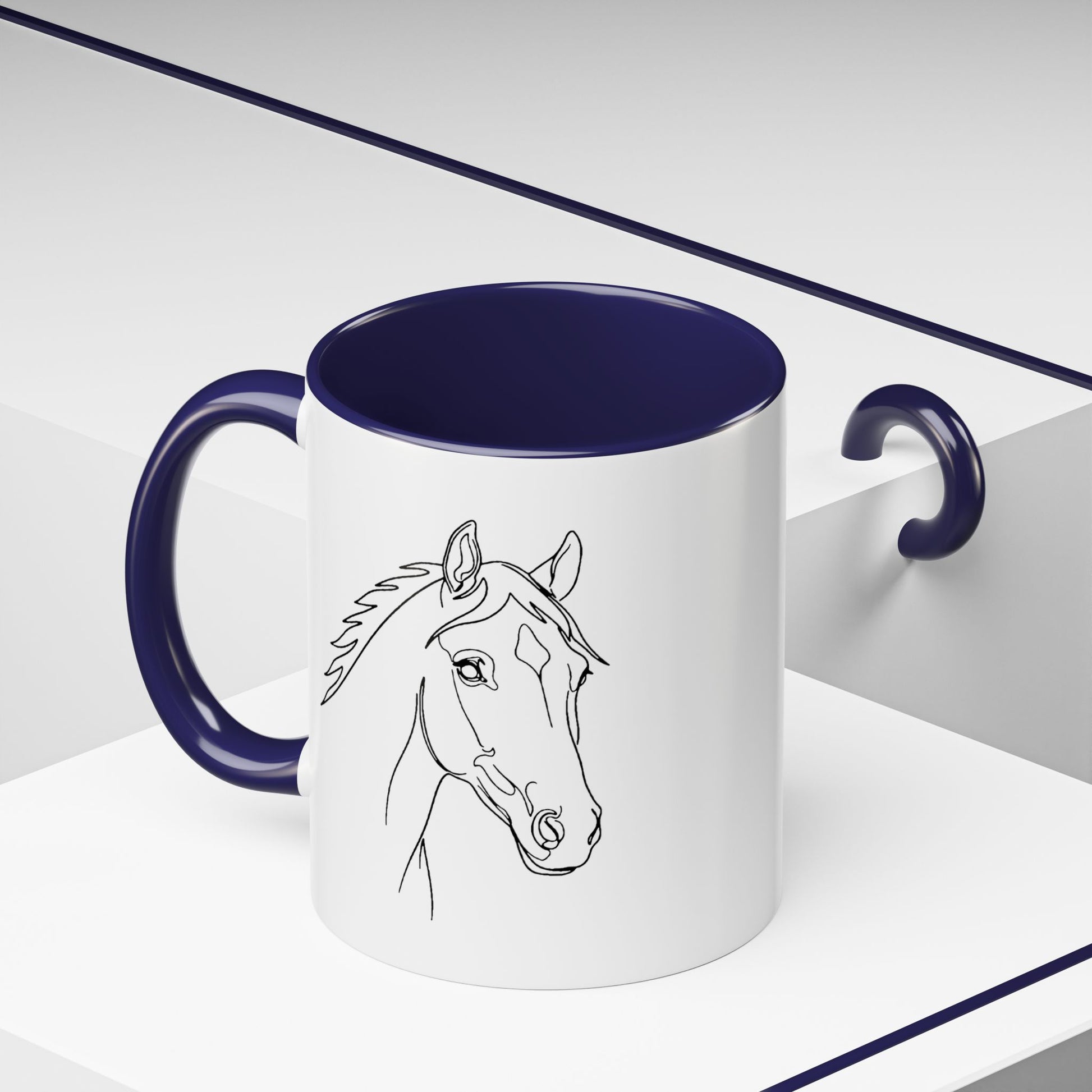 This ceramic accent mug carries a quiet, equestrian spirit — a single-line horse sketch that feels like a gentle nod from a stable at dawn. The clean white exterior makes the delicate drawing stand out, while the colored interior and handle add a subtle pop that reflects your personality. Hold it warm between both hands and imagine mist on the paddock, or set it on your desk to keep a calm equine presence with your morning coffee. Thoughtful and simple, it fits naturally into ritual moments: slow mornings, barn visits, long afternoons of planning rides, or relaxed chats with fellow horse lovers.
