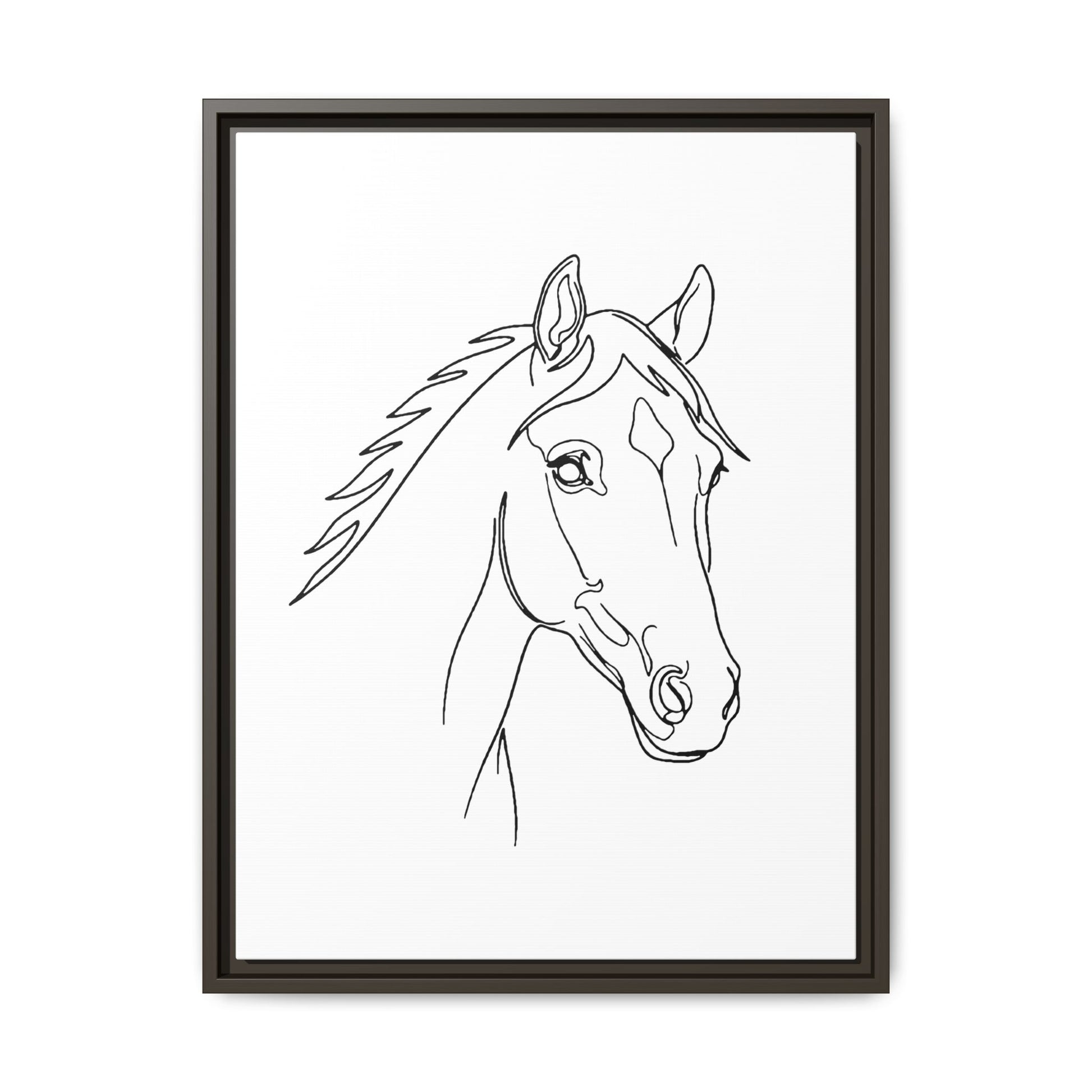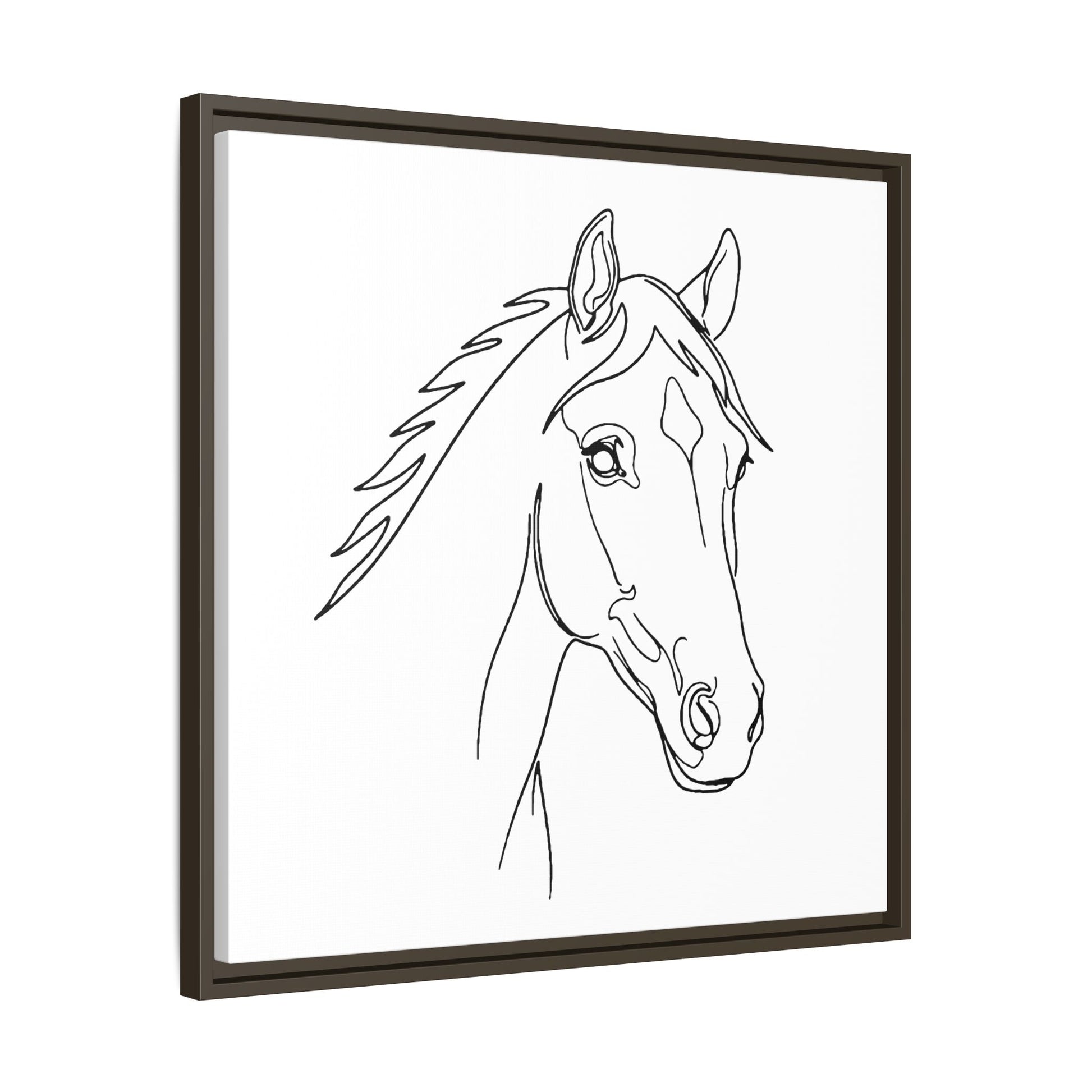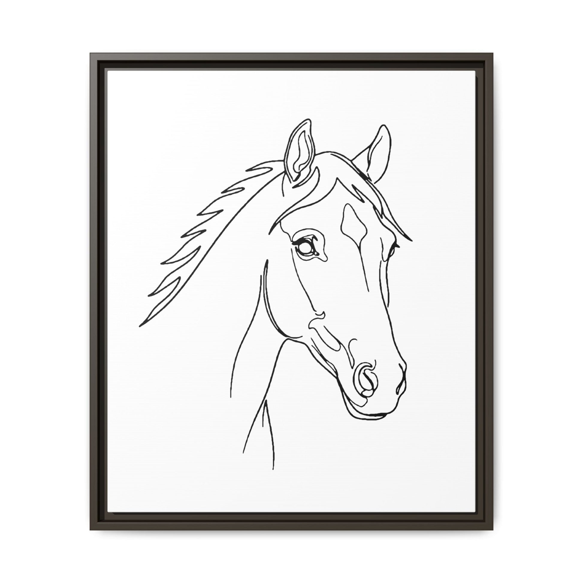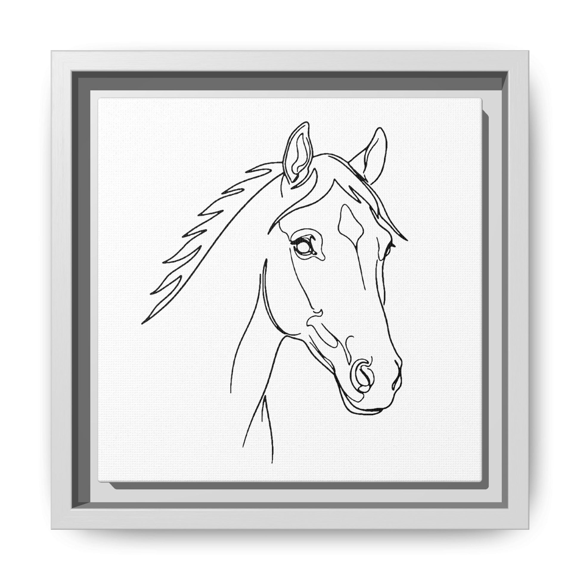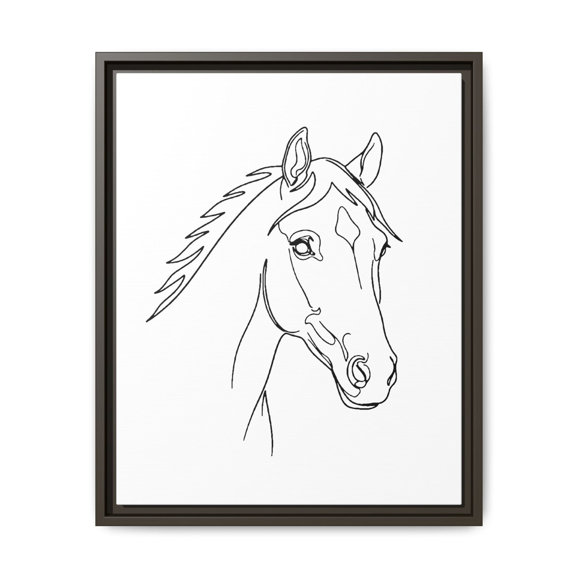 A minimalist framed matte canvas capturing the quiet elegance of a horse in one continuous line. The restrained black sketch on bright white canvas brings a calm, equine-focused presence to entryways, studios, or cozy reading nooks. Mounted on a slim pine profile with a crisp black frame, the piece feels both modern and warm—the kind of artwork that settles into a room and becomes part of the daily view. It complements natural textures like leather saddles, woven blankets, and sunlit wood, and it pairs naturally with rustic or Scandinavian interiors for moments when you want art that whispers rather than shouts.