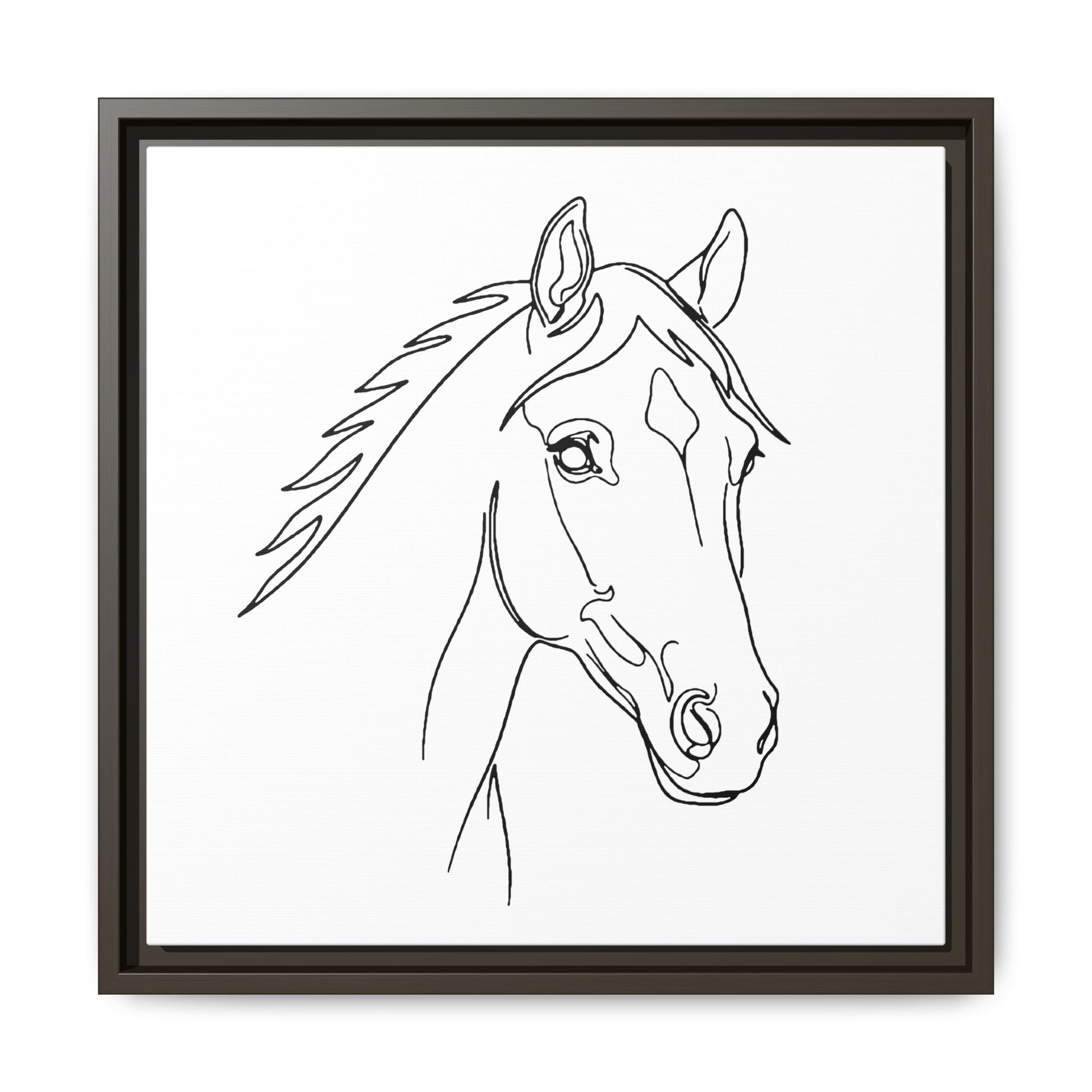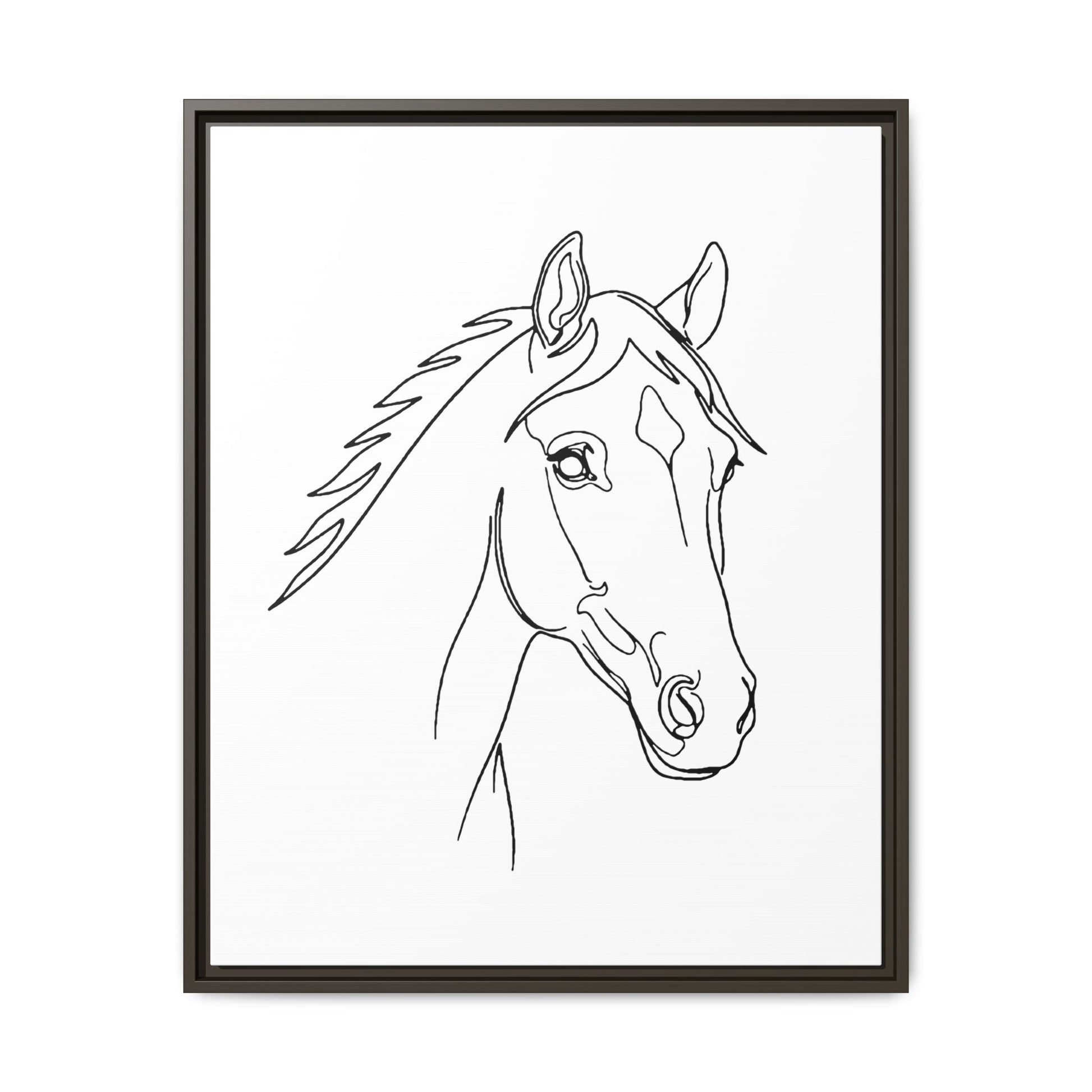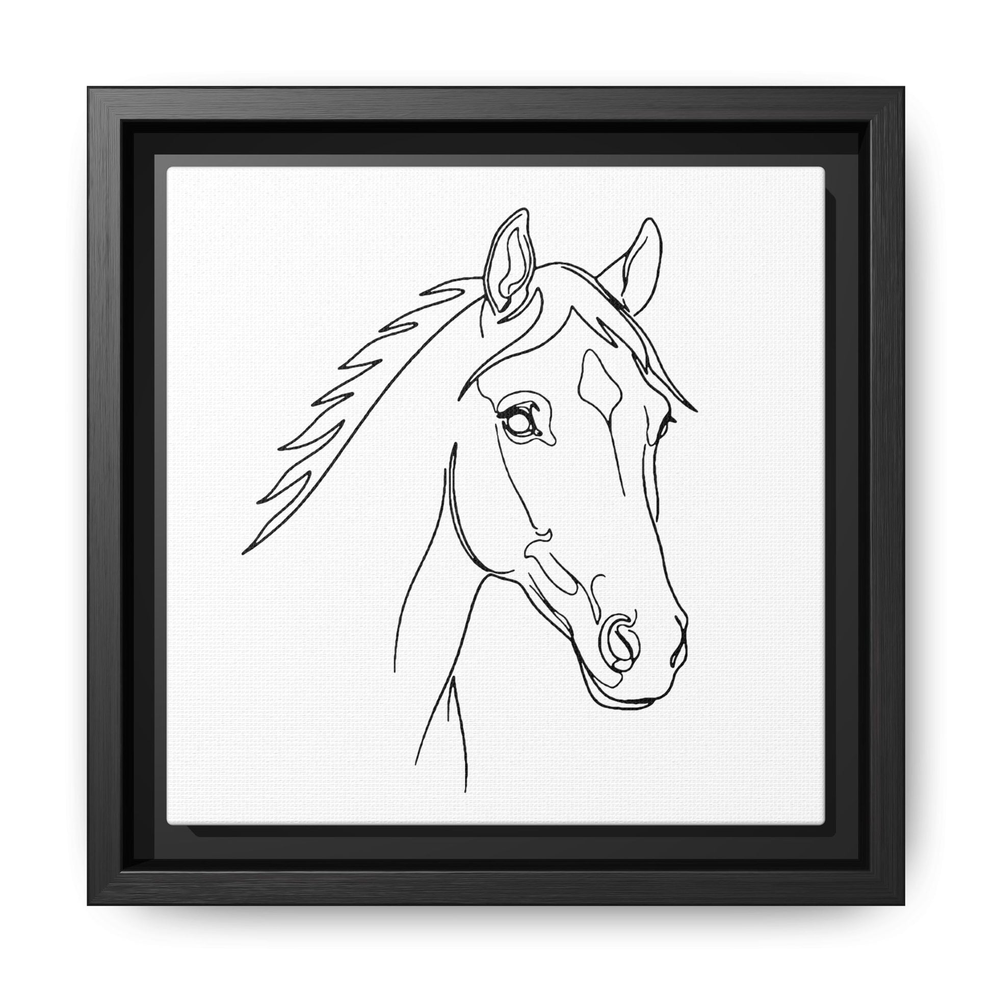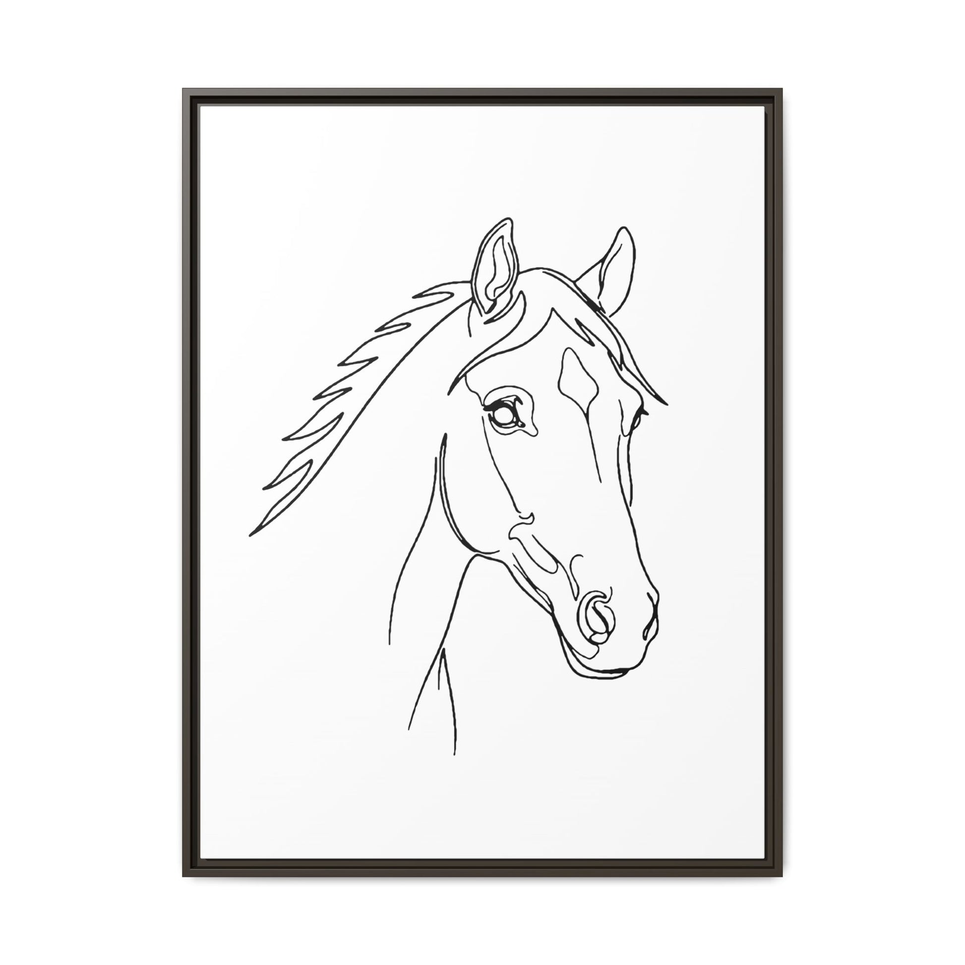 A minimalist framed matte canvas capturing the quiet elegance of a horse in one continuous line. The restrained black sketch on bright white canvas brings a calm, equine-focused presence to entryways, studios, or cozy reading nooks. Mounted on a slim pine profile with a crisp black frame, the piece feels both modern and warm—the kind of artwork that settles into a room and becomes part of the daily view. It complements natural textures like leather saddles, woven blankets, and sunlit wood, and it pairs naturally with rustic or Scandinavian interiors for moments when you want art that whispers rather than shouts.