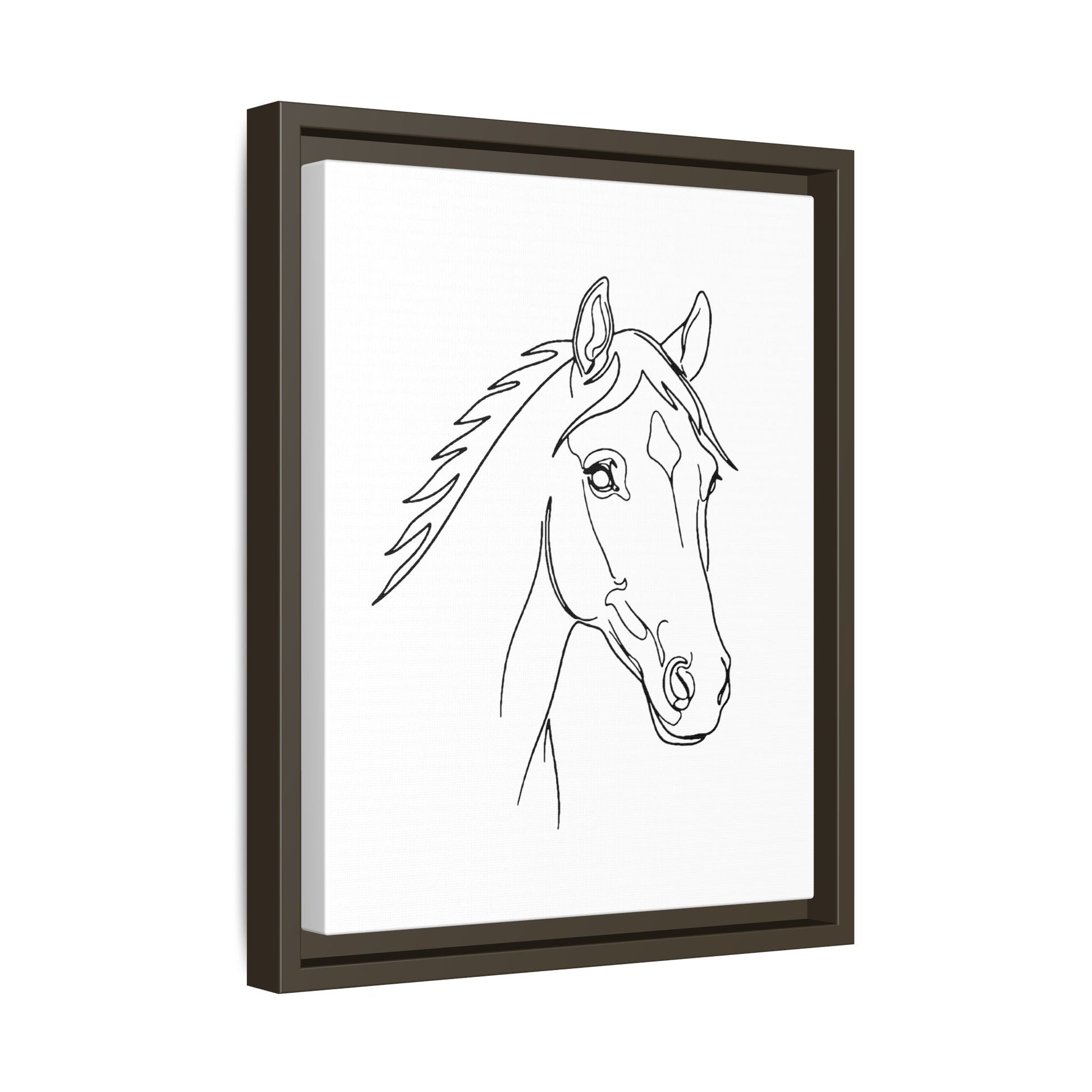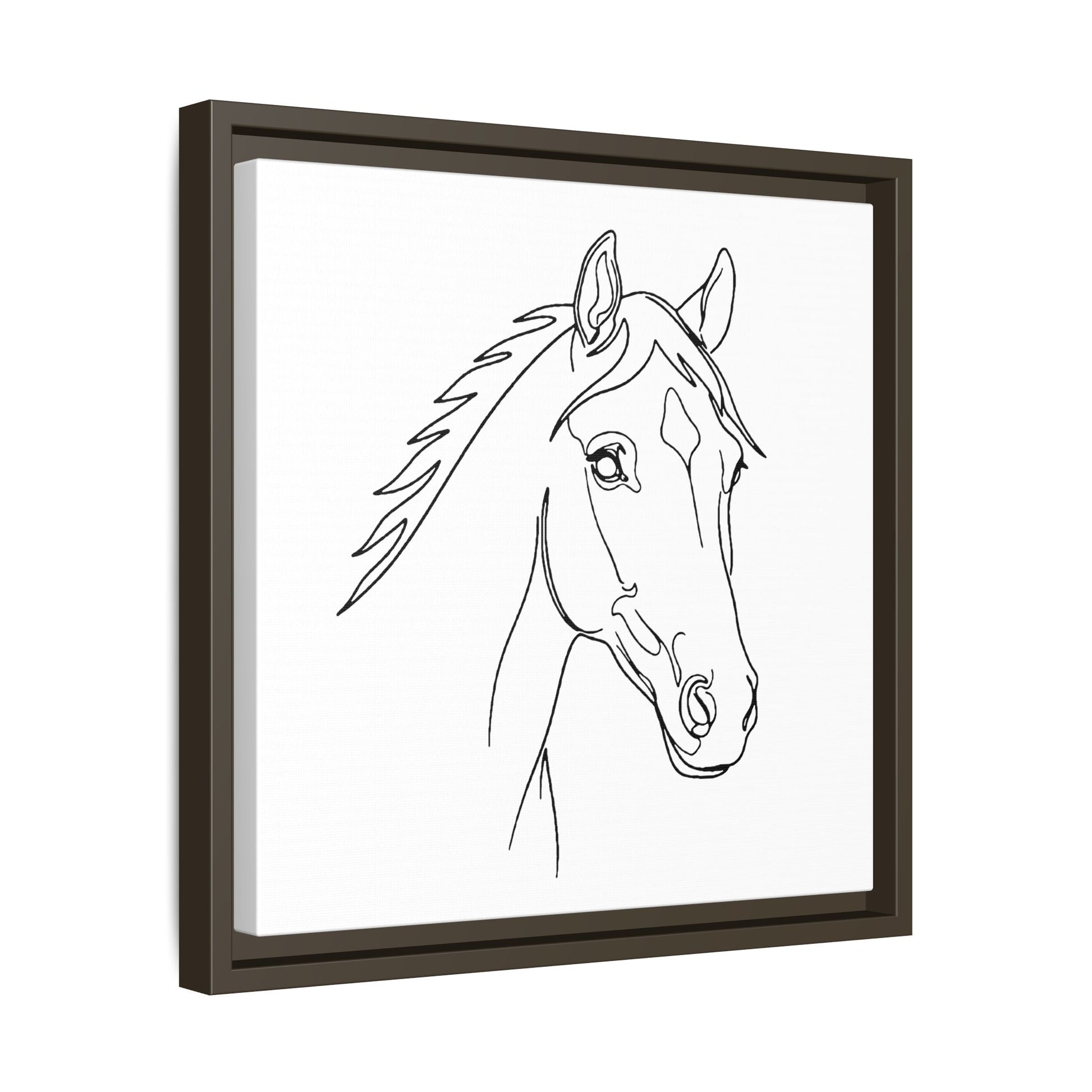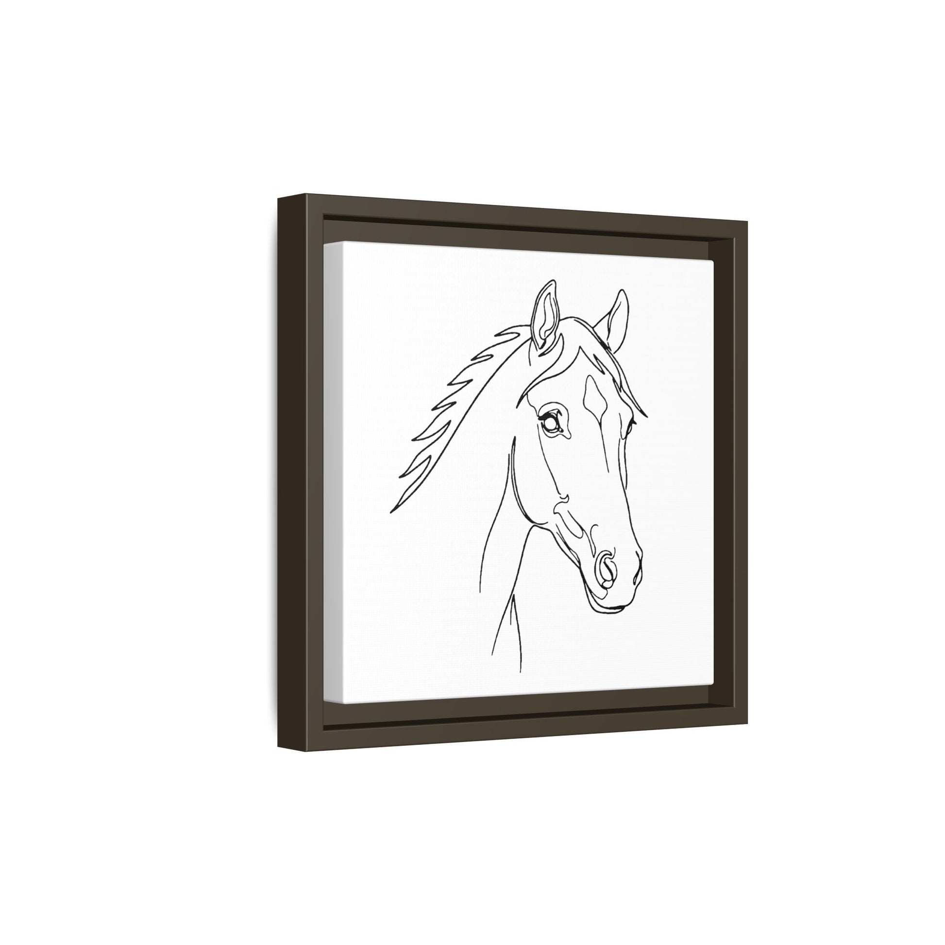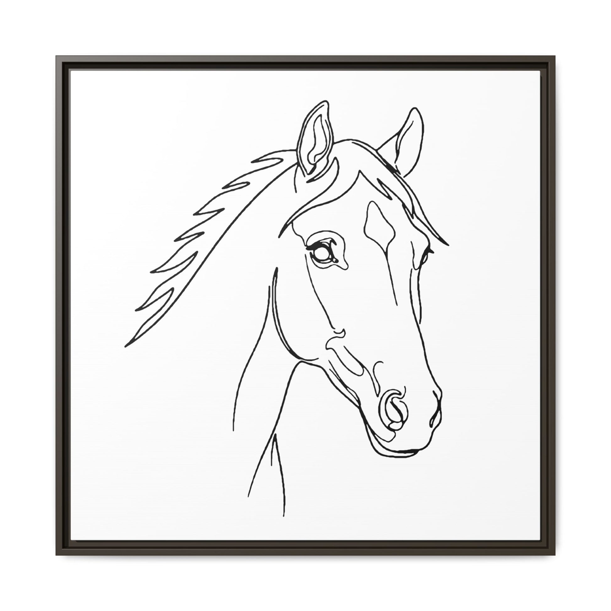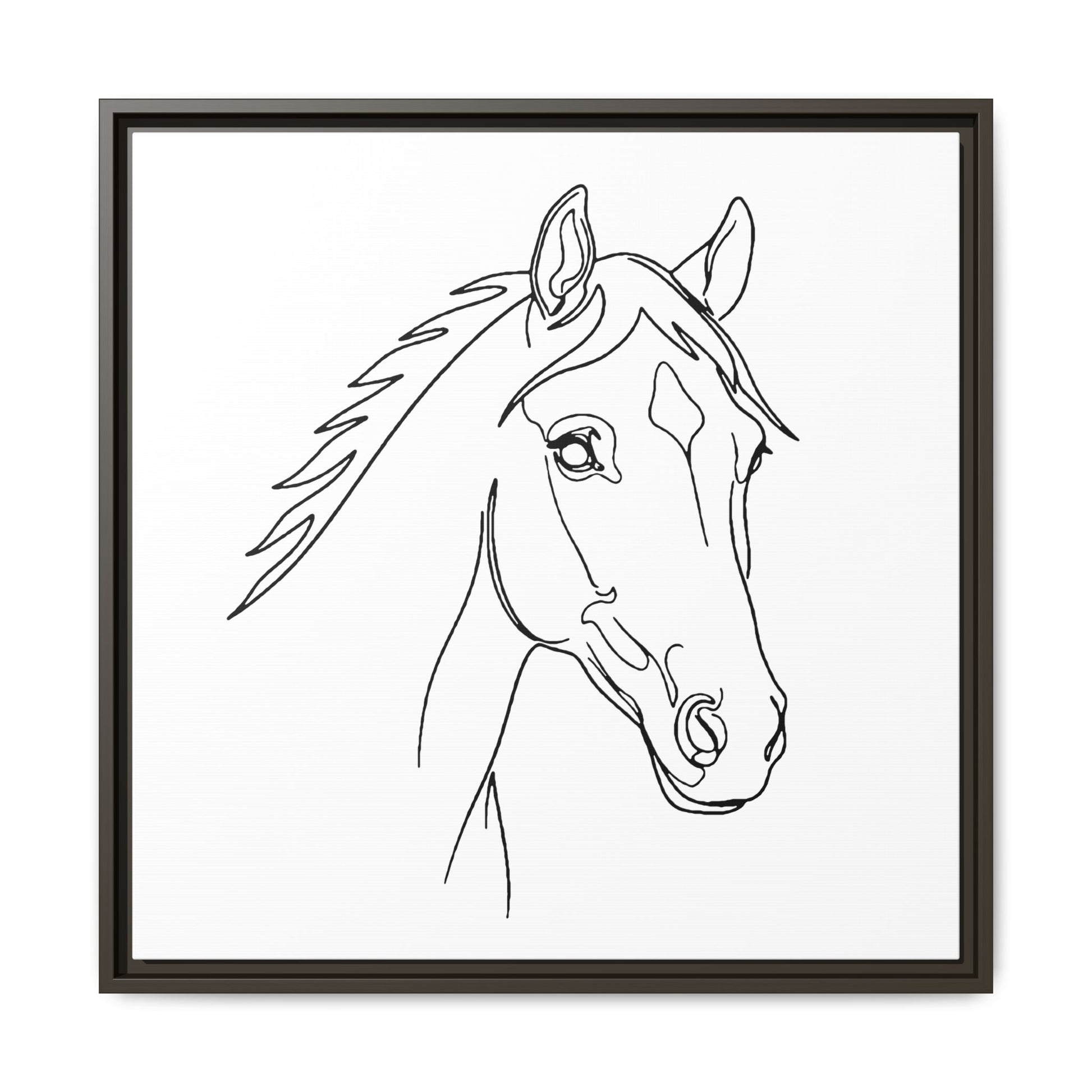 A minimalist framed matte canvas capturing the quiet elegance of a horse in one continuous line. The restrained black sketch on bright white canvas brings a calm, equine-focused presence to entryways, studios, or cozy reading nooks. Mounted on a slim pine profile with a crisp black frame, the piece feels both modern and warm—the kind of artwork that settles into a room and becomes part of the daily view. It complements natural textures like leather saddles, woven blankets, and sunlit wood, and it pairs naturally with rustic or Scandinavian interiors for moments when you want art that whispers rather than shouts.
