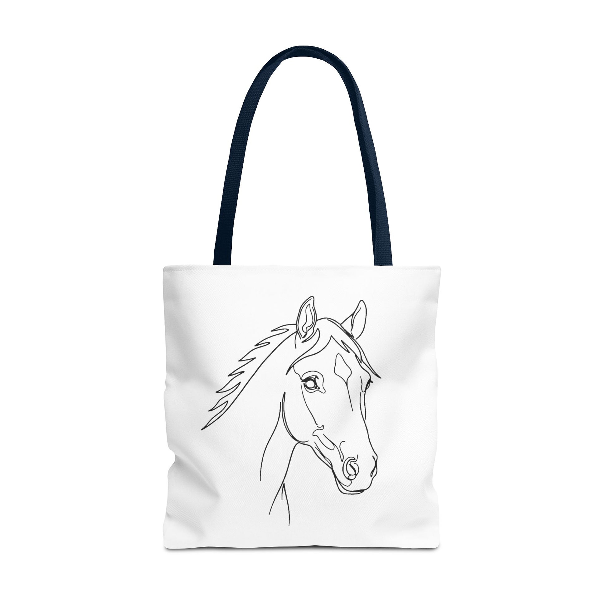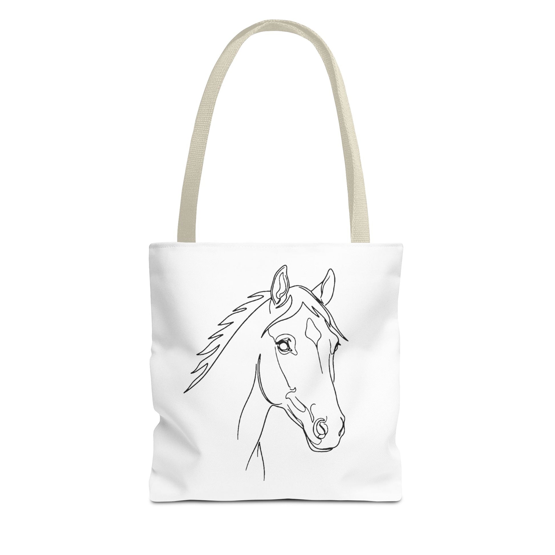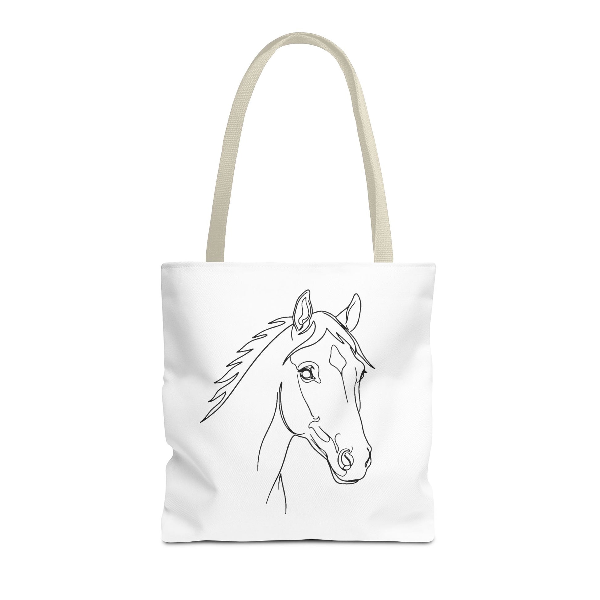 Lightweight, durable, and quietly expressive—this polyester tote carries your day with effortless equestrian charm. A single-line horse portrait sketched in soft graphite tones rests on a clean white field, letting the animal’s calm gaze and flowing mane speak without fuss. The roomy boxed corners give real carrying space for groceries, notebooks, or saddle pads, while reinforced handle stitching and a laminated interior stand up to daily use. Choose a handle color to match your style and pick the size that suits your routine. This tote is for riders, barn visitors, and anyone who loves horses and simple, minimalist art that travels well.