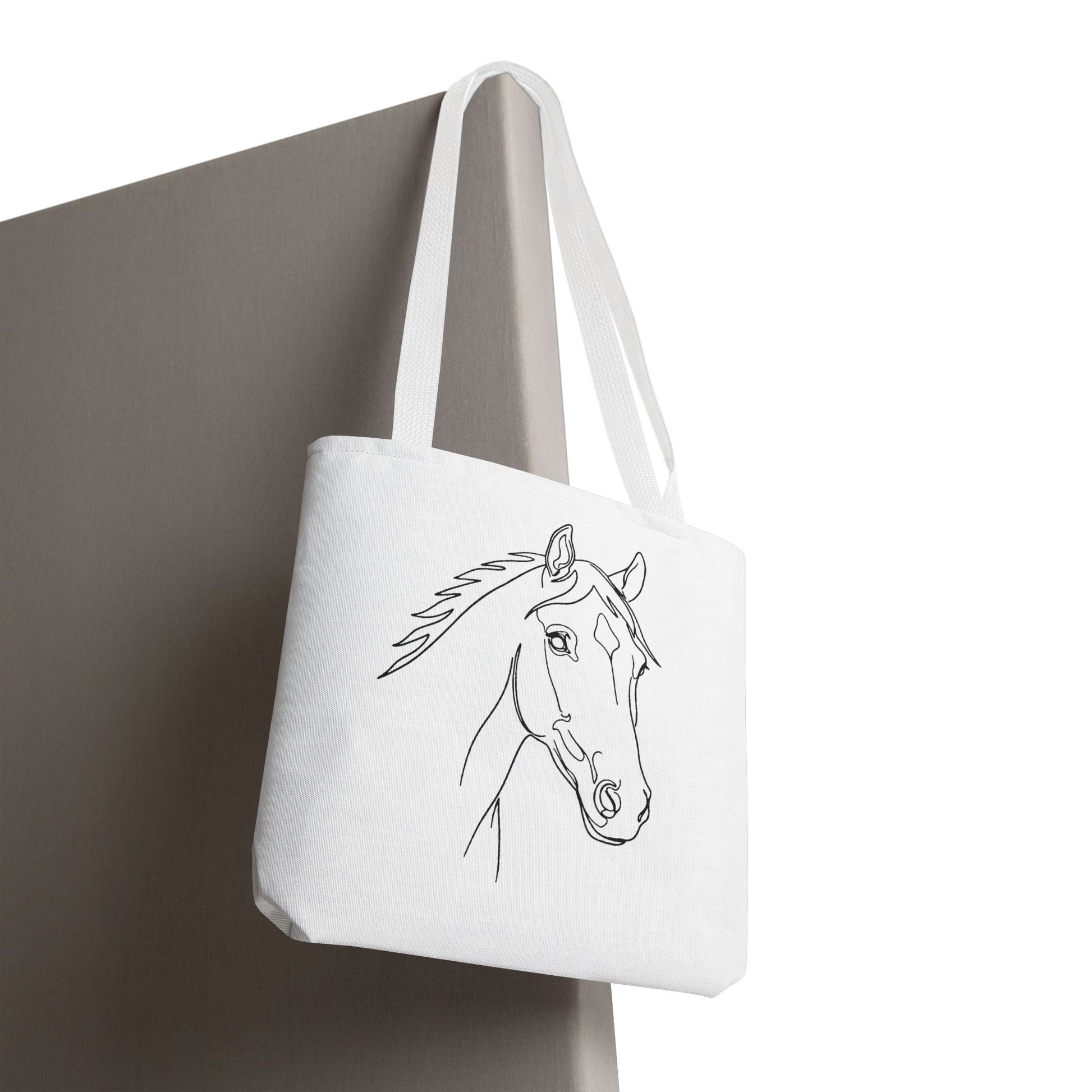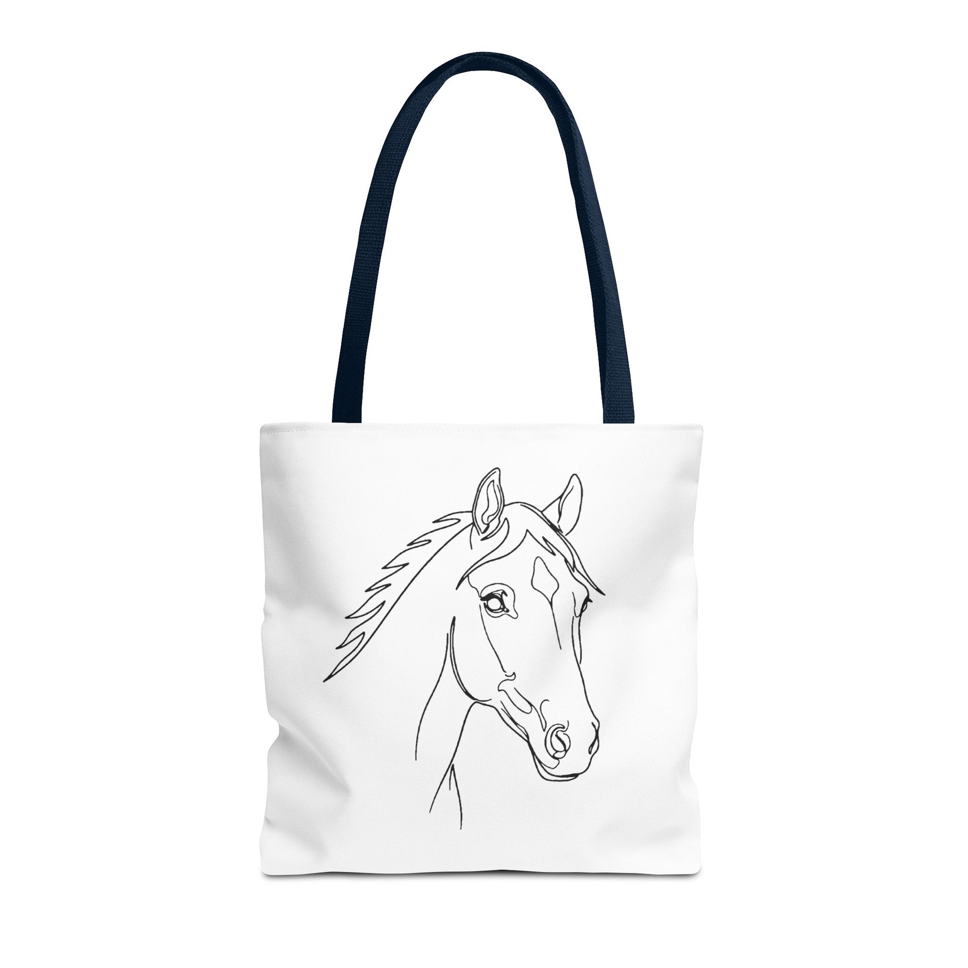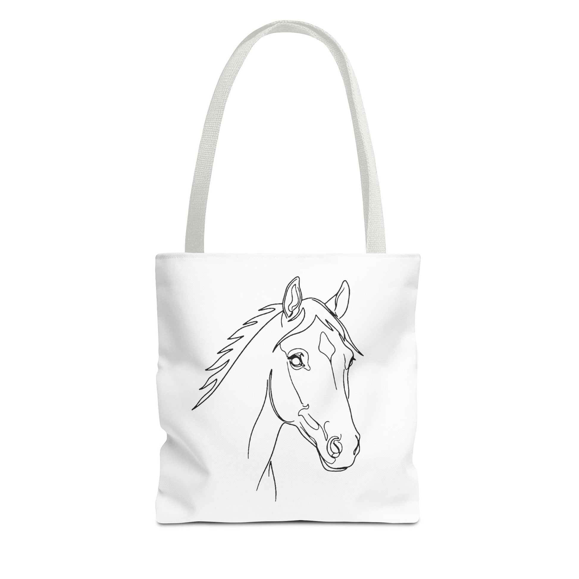 Lightweight, durable, and quietly expressive—this polyester tote carries your day with effortless equestrian charm. A single-line horse portrait sketched in soft graphite tones rests on a clean white field, letting the animal’s calm gaze and flowing mane speak without fuss. The roomy boxed corners give real carrying space for groceries, notebooks, or saddle pads, while reinforced handle stitching and a laminated interior stand up to daily use. Choose a handle color to match your style and pick the size that suits your routine. This tote is for riders, barn visitors, and anyone who loves horses and simple, minimalist art that travels well.