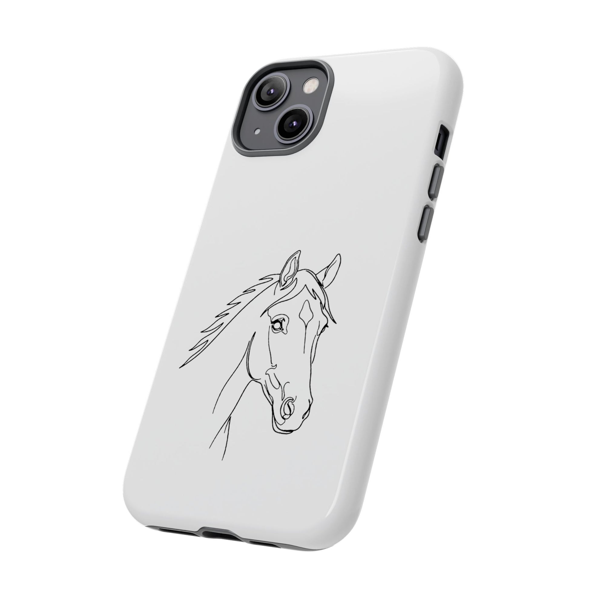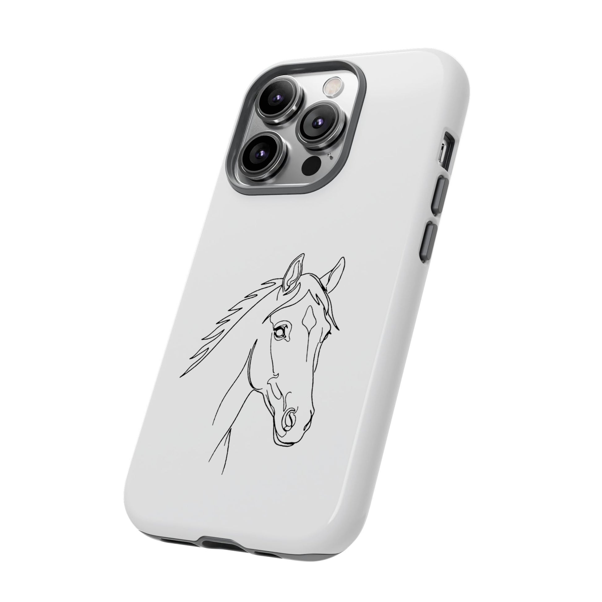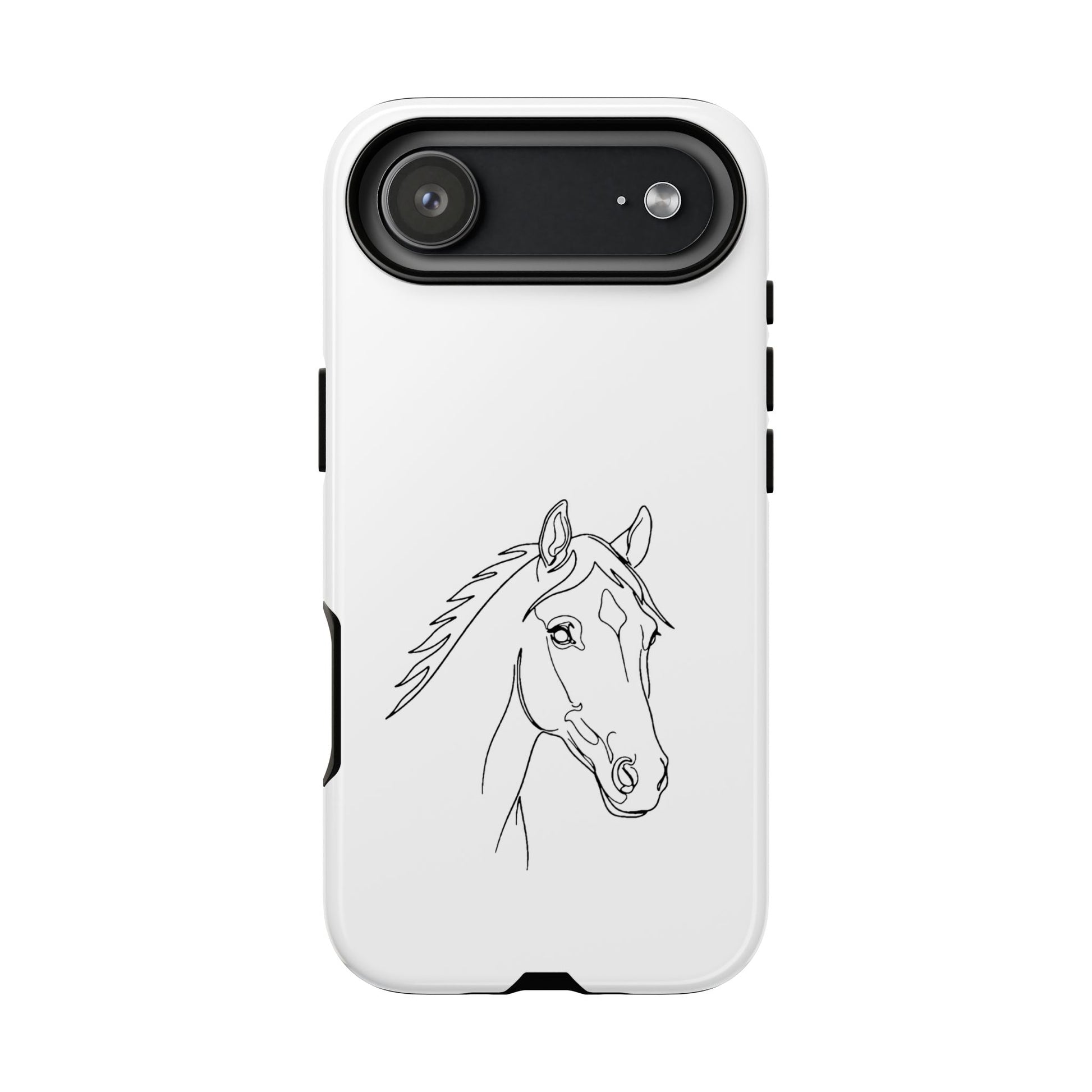 Lightweight, protective, and quietly elegant—this tough phone case carries a simple pencil-style horse portrait that feels like a private nod to anyone who loves horses. The slim dual-layer shell snaps on easily; a soft TPU liner cushions against shocks, while a hard polycarbonate exterior takes the brunt of bumps and drops. The sketch sits centered on a clean white field, letting the linework breathe and keeping the overall look refined and low-key. It resists outdoor fading and supports wireless charging, so your phone stays both safe and usable during rides, barn days, or everyday errands. Care notes are included to keep the artwork crisp: avoid prolonged sun exposure, high-alcohol liquids, and heavy creams on the case surface.