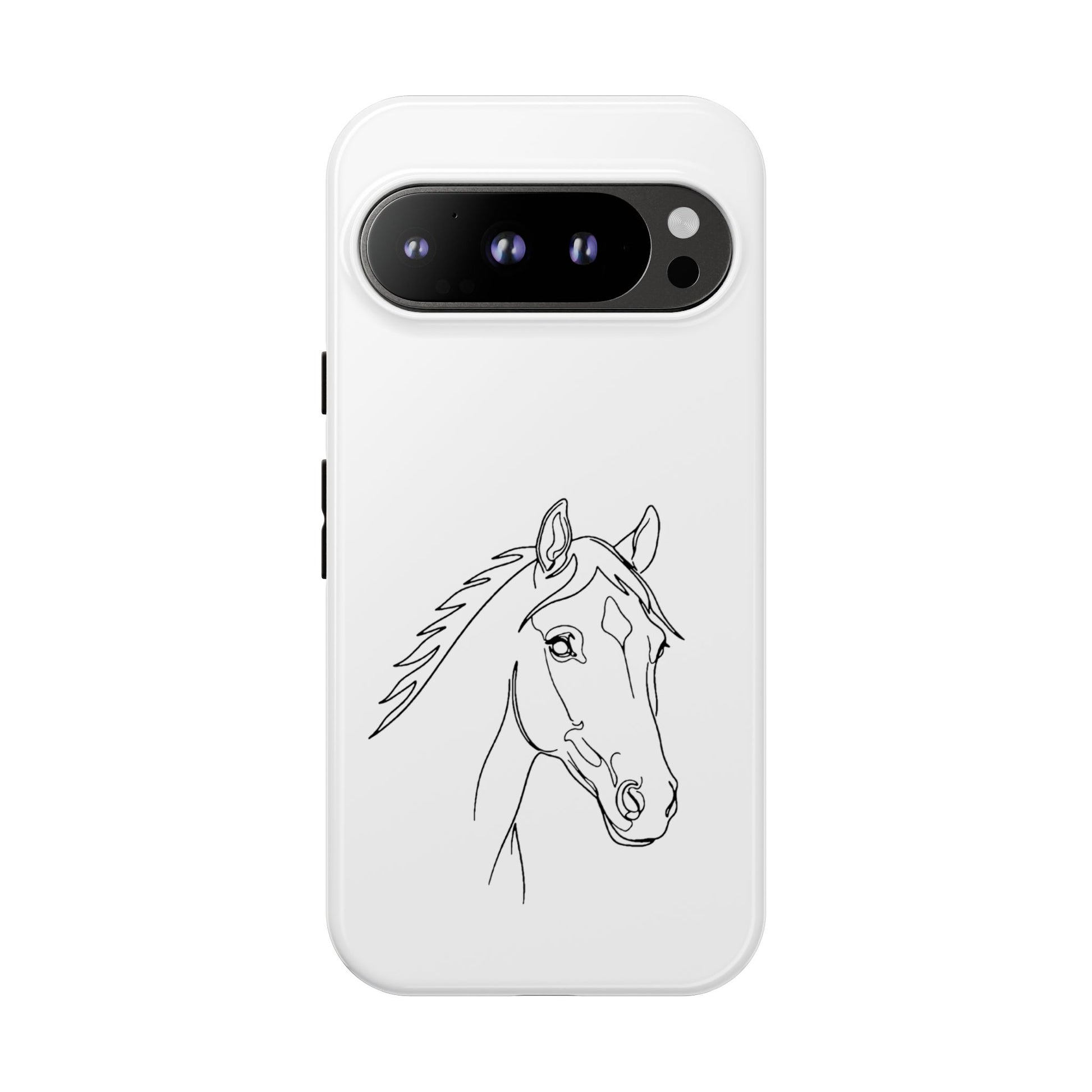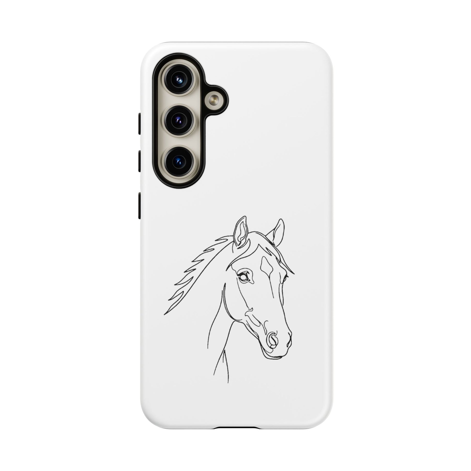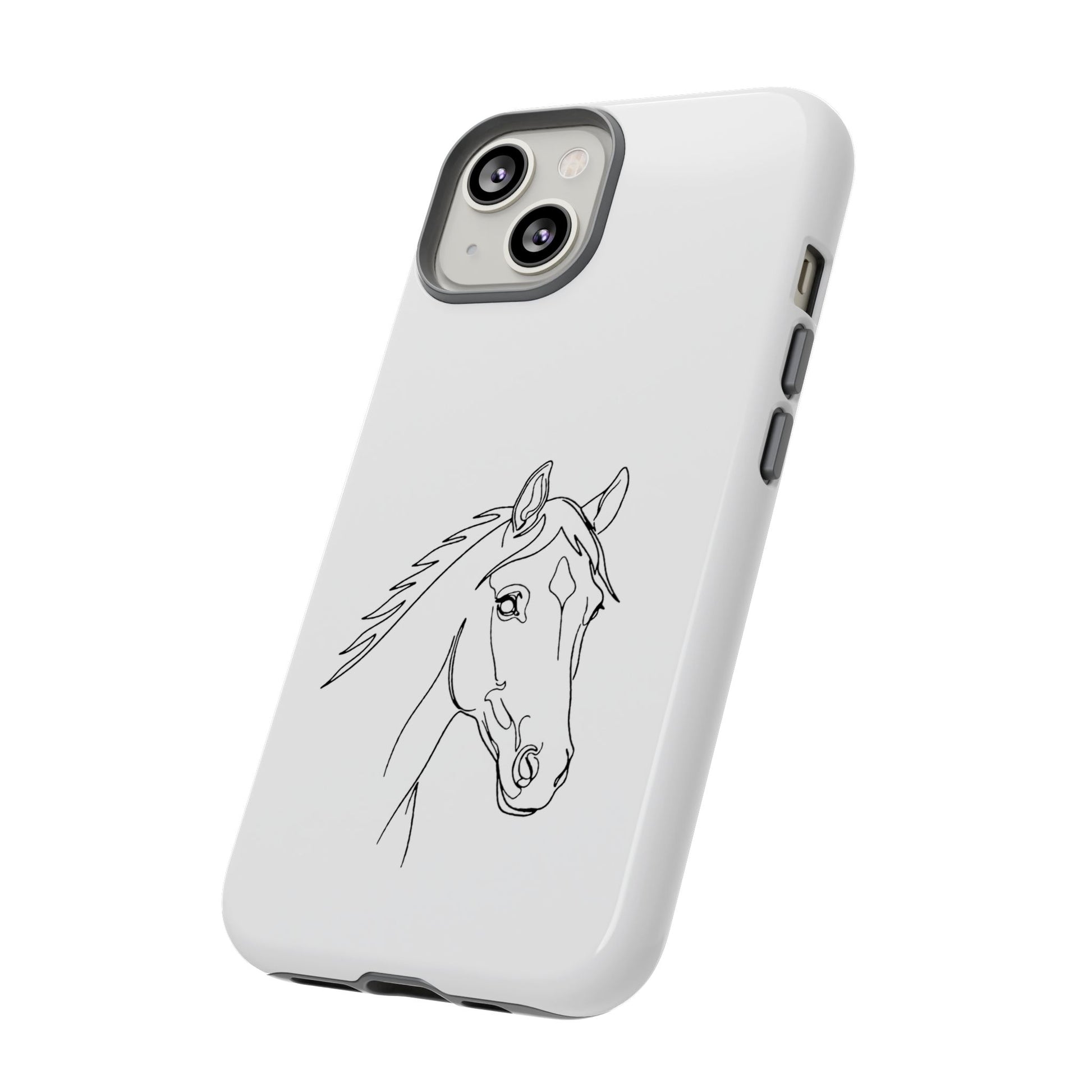 Lightweight, protective, and quietly elegant—this tough phone case carries a simple pencil-style horse portrait that feels like a private nod to anyone who loves horses. The slim dual-layer shell snaps on easily; a soft TPU liner cushions against shocks, while a hard polycarbonate exterior takes the brunt of bumps and drops. The sketch sits centered on a clean white field, letting the linework breathe and keeping the overall look refined and low-key. It resists outdoor fading and supports wireless charging, so your phone stays both safe and usable during rides, barn days, or everyday errands. Care notes are included to keep the artwork crisp: avoid prolonged sun exposure, high-alcohol liquids, and heavy creams on the case surface.