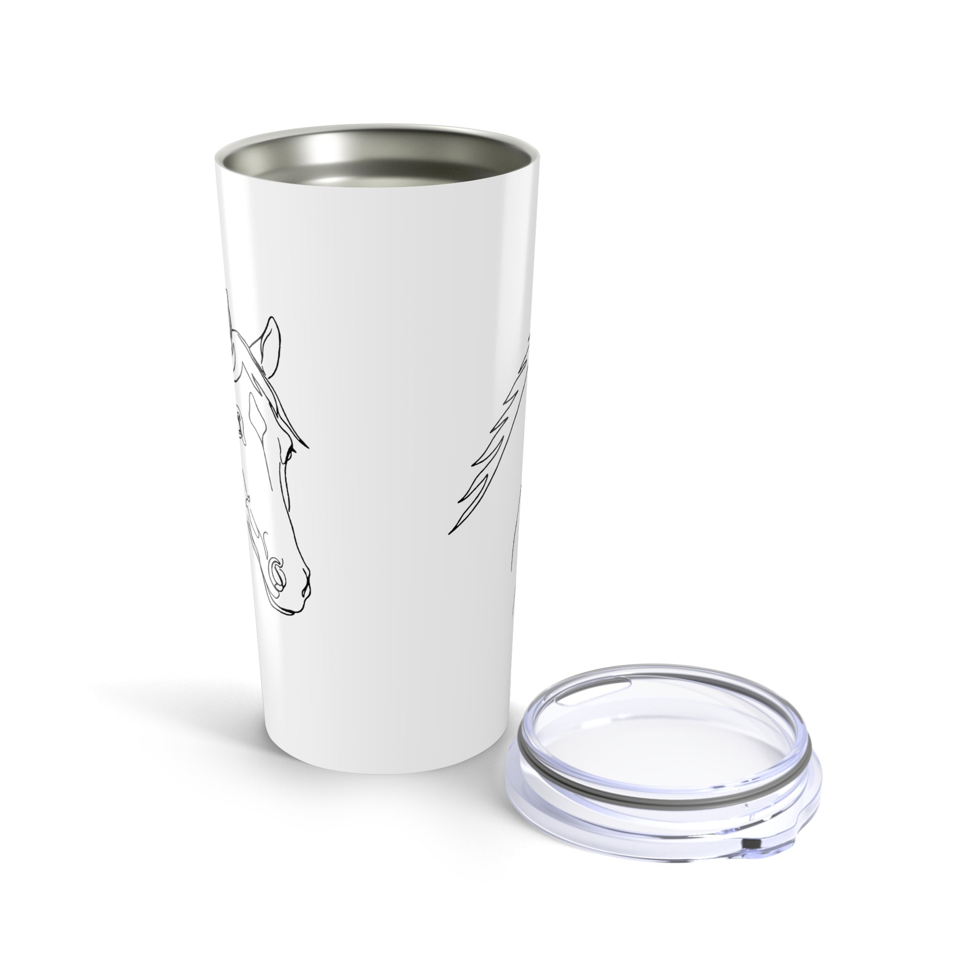 Beneath a hand-sketched horse head, this 20 oz stainless steel tumbler carries a quiet, equestrian grace into your everyday routine. The slim silhouette slips into cup holders and riding tack bags alike, keeping coffee steaming before dawn lessons and iced water cold between arena rounds. The glossy wraparound print highlights delicate pencil lines that feel like a quick sketch from the barn, while the clear push-on lid and vacuum-insulated double-wall steel preserve temperature through long drives, chilly mornings, and warm afternoons. It’s the kind of tumbler that sits by the grooming box, on the trailer dash, or beside your desk—familiar, sturdy, and made to travel with you.