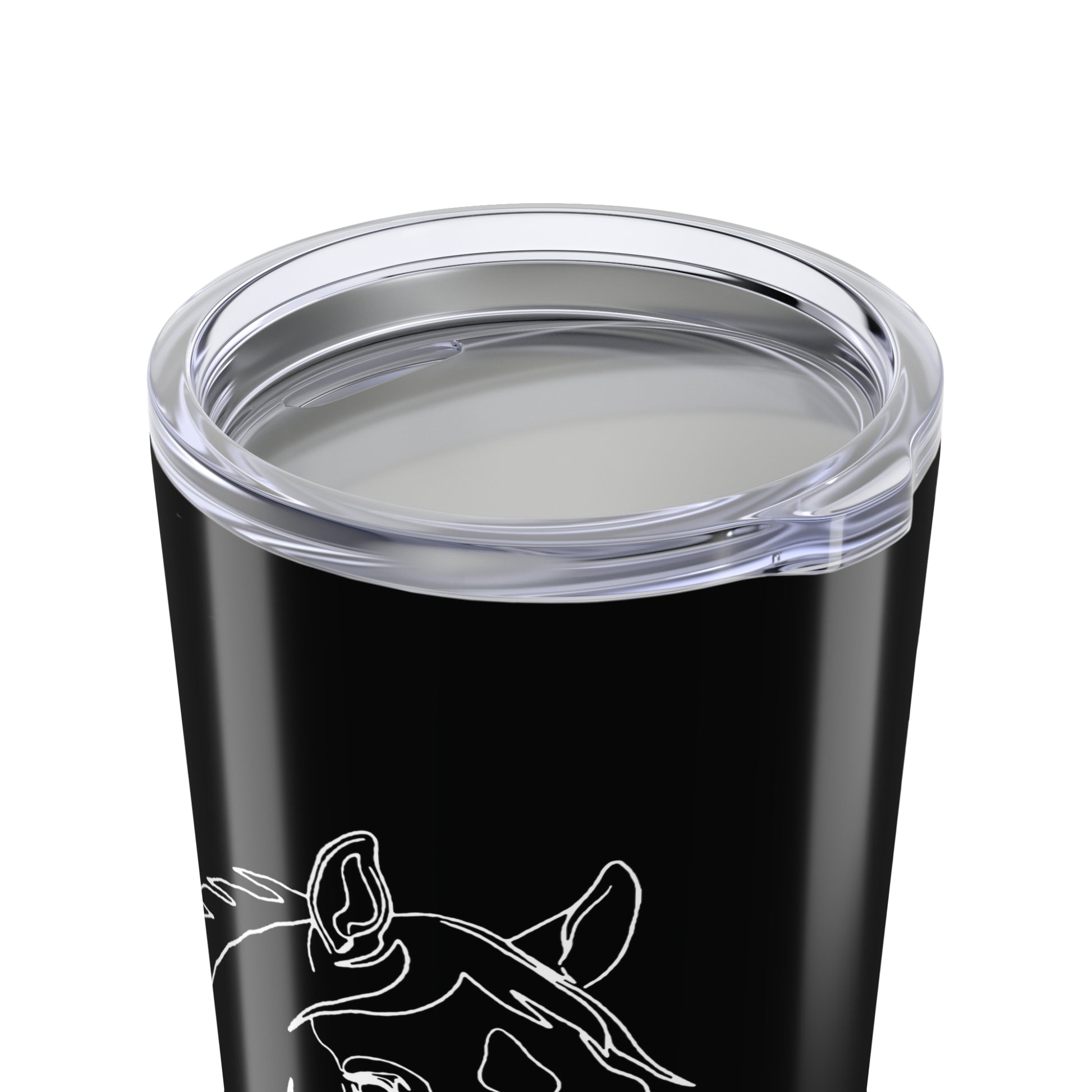 This 20 oz stainless steel tumbler brings quiet confidence to every sip. The sleek black glossy wrap highlights a subtle, monochrome wolf silhouette that appears like a whisper across the surface—restrained, bold, and a little wild. Vacuum insulation keeps coffee steaming during a long commute and preserves iced drinks on hot afternoons. The clear push-on lid with rubber gasket seals tightly, so it rides with you on hikes, behind the wheel, or at your desk without fuss. Easy to clean and dishwasher-safe, it’s built to be used every day and to age with character rather than show wear.