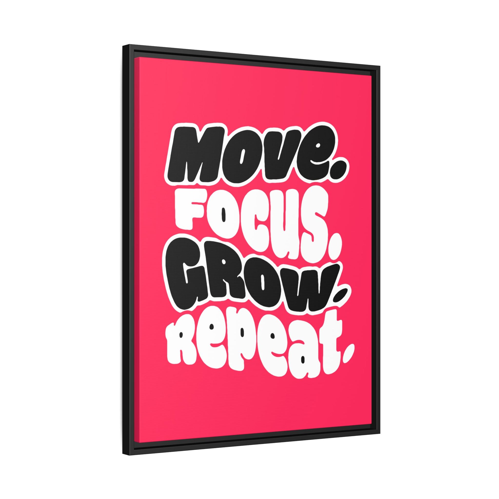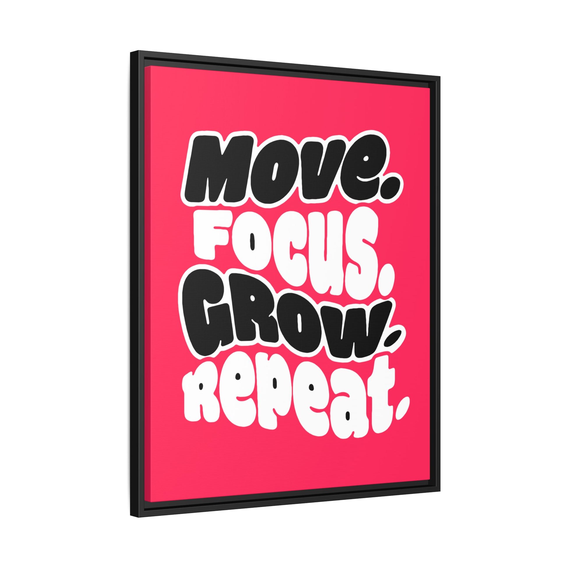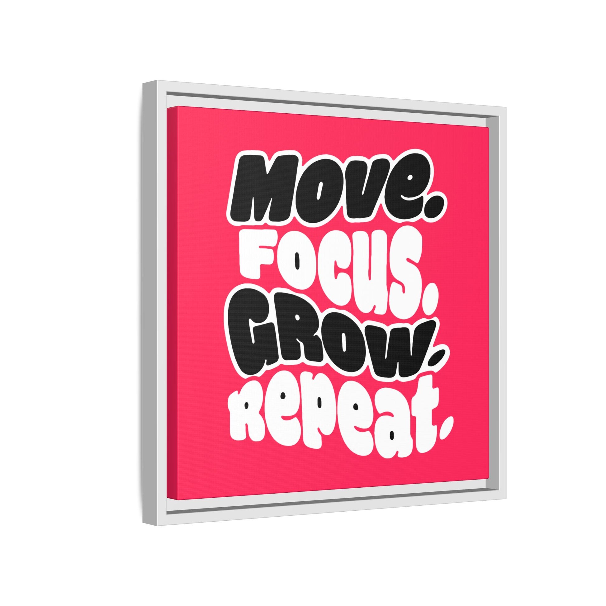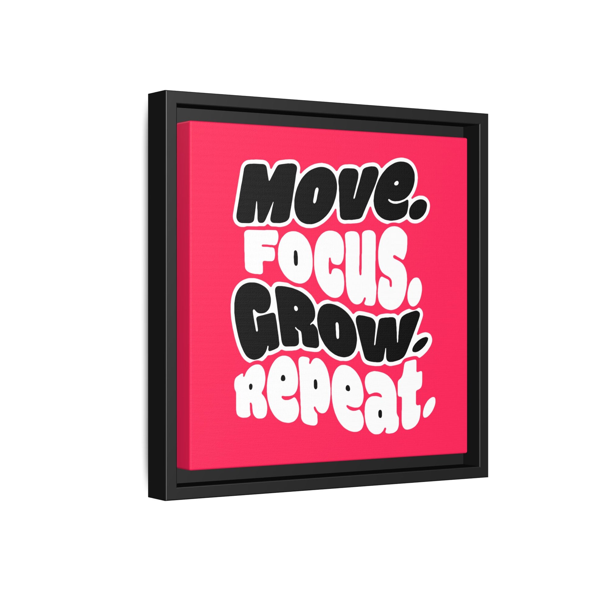 Bold, energetic wall art that brings motivational rhythm to a workspace, studio, or living room. This matte canvas print features chunky, retro-inspired lettering in high-contrast black and white against a vivid coral-pink background. Framed in a slim pine frame with a crisp black finish, the piece reads like a daily mantra—short, punchy, and impossible to ignore. It feels like the upbeat nudge you need before a workout, a morning planning session, or a creative sprint. Hang it where momentum matters: above a desk, near a home gym, or in a cozy reading nook. The textured matte surface keeps glare low while the vivid inks preserve the lively palette, so the message stays bright and clear day after day.