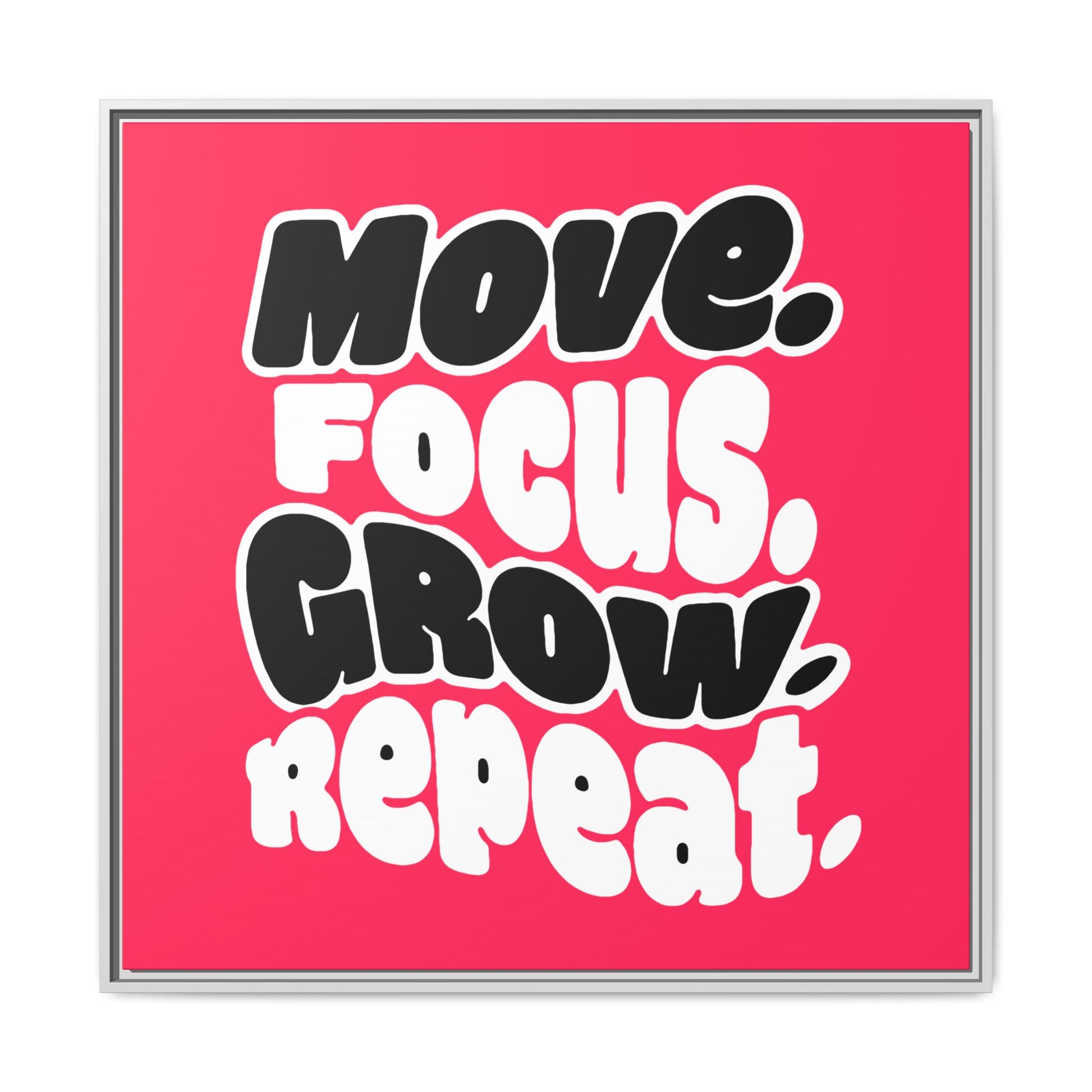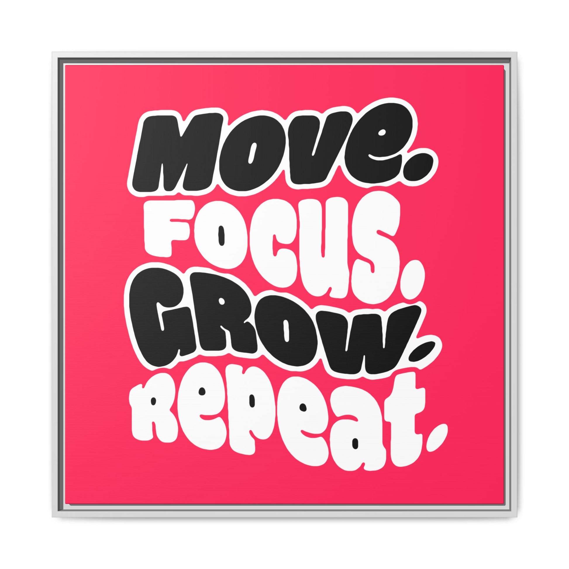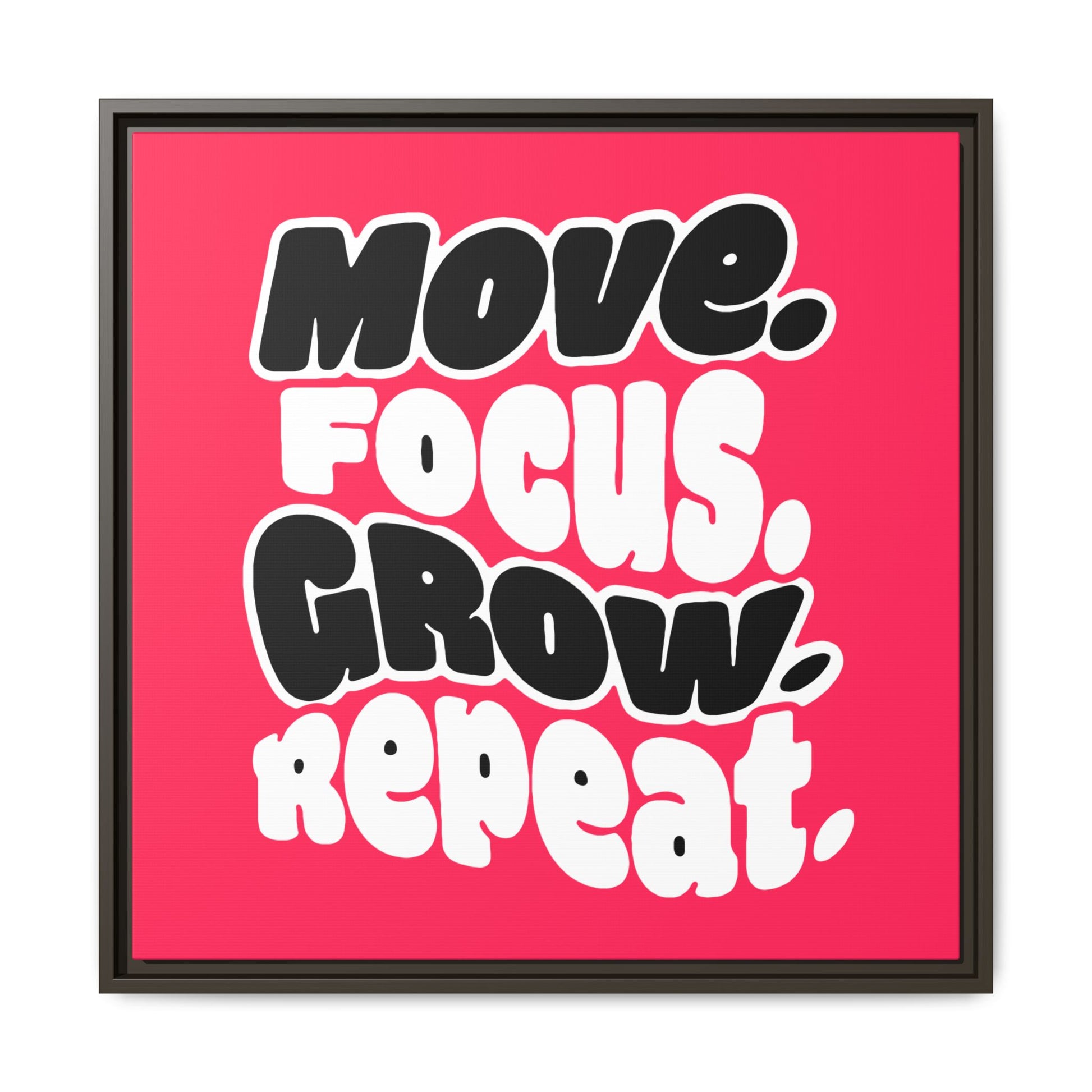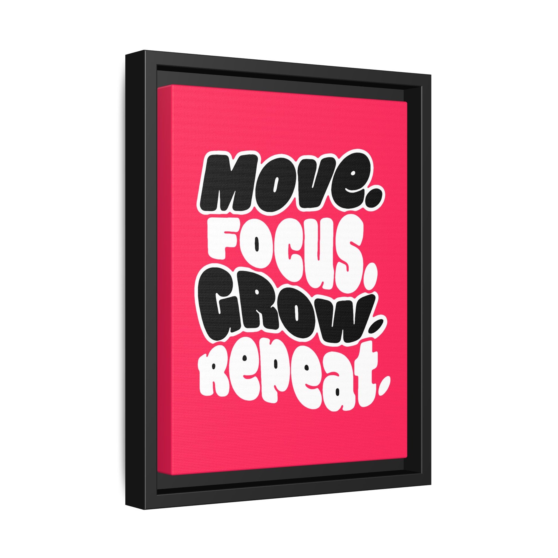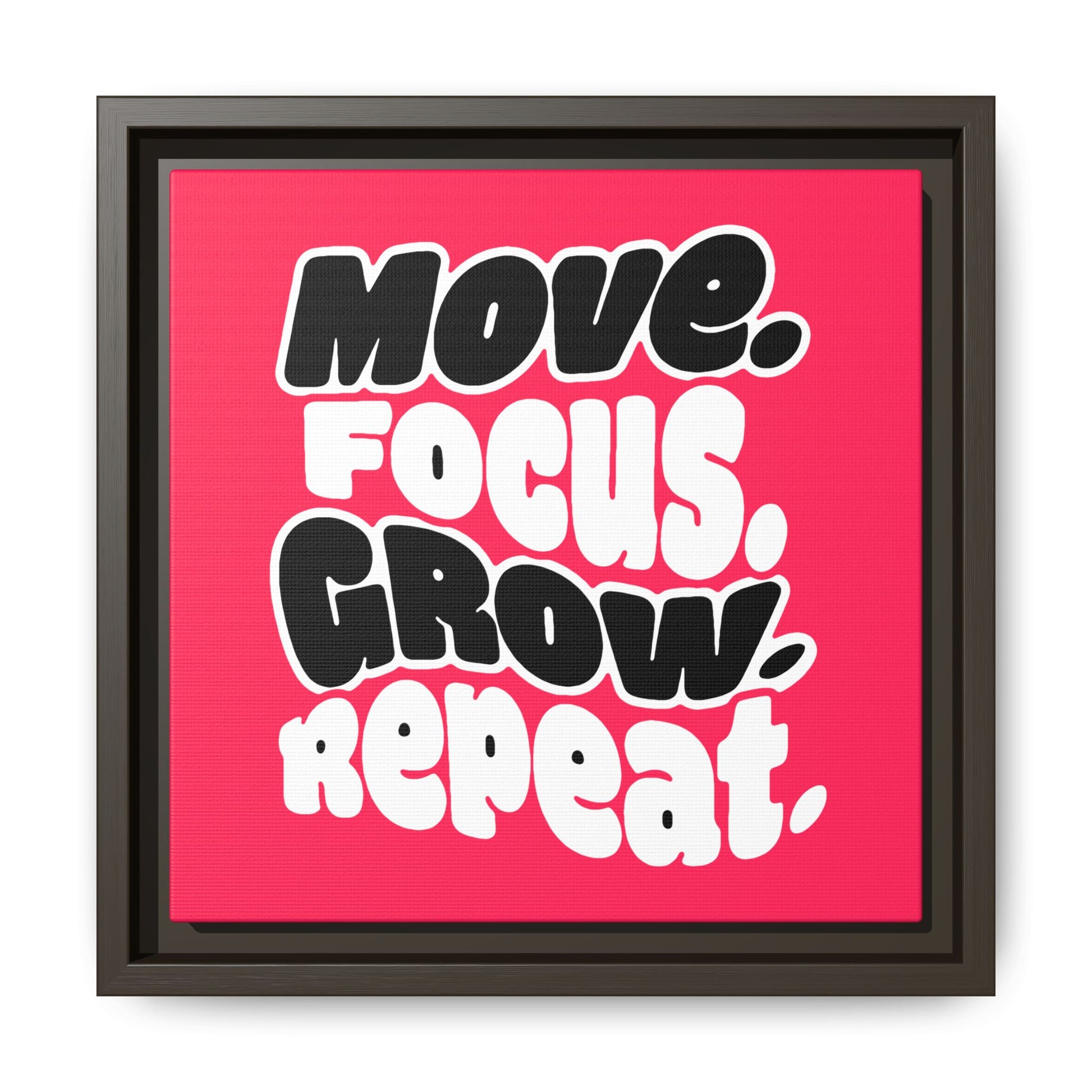 Bold, energetic wall art that brings motivational rhythm to a workspace, studio, or living room. This matte canvas print features chunky, retro-inspired lettering in high-contrast black and white against a vivid coral-pink background. Framed in a slim pine frame with a crisp black finish, the piece reads like a daily mantra—short, punchy, and impossible to ignore. It feels like the upbeat nudge you need before a workout, a morning planning session, or a creative sprint. Hang it where momentum matters: above a desk, near a home gym, or in a cozy reading nook. The textured matte surface keeps glare low while the vivid inks preserve the lively palette, so the message stays bright and clear day after day.